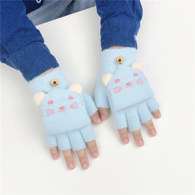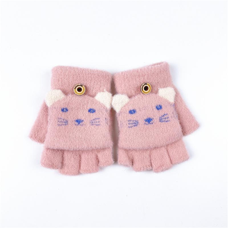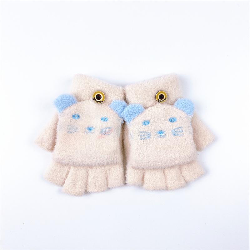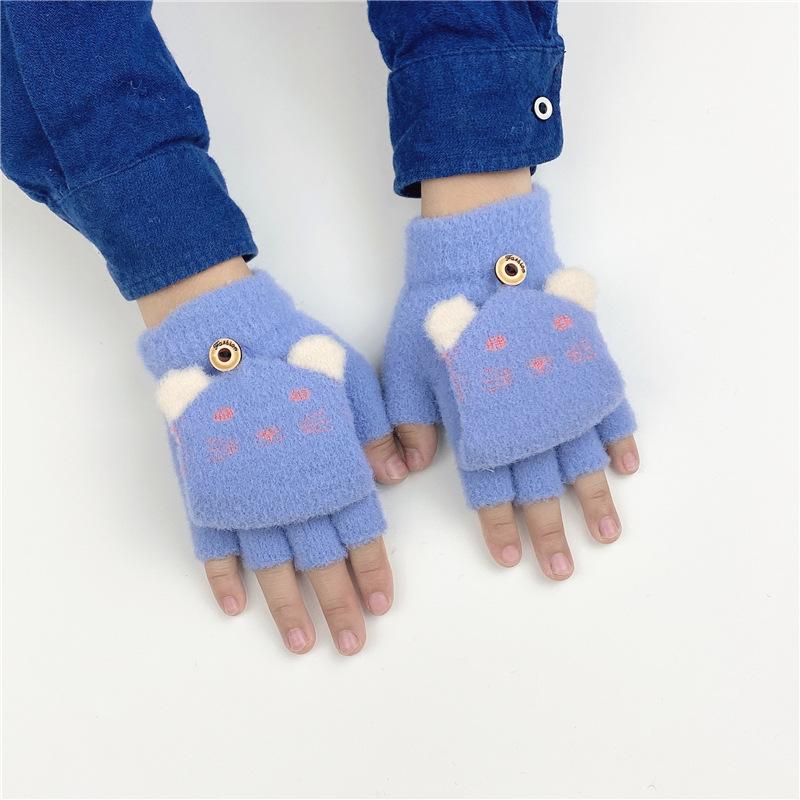 Guantes para niños de 2 a 8 años, para niños y niñas, con dibujos de osos, con tapa abatible, para bebés, cinco dedos, bonitos y cálidos para invierno.
