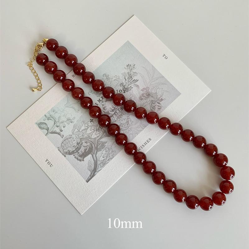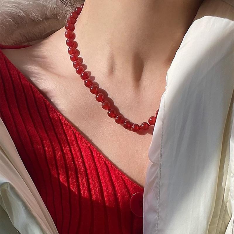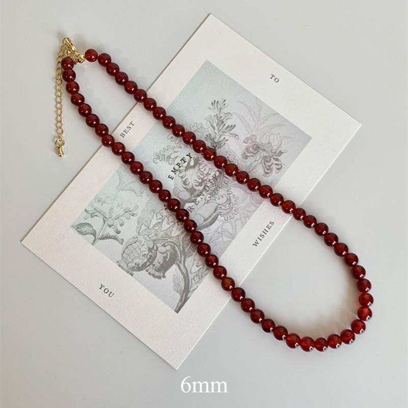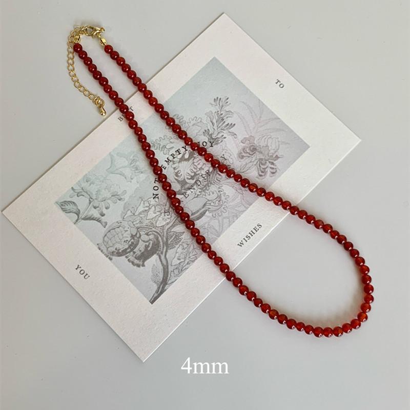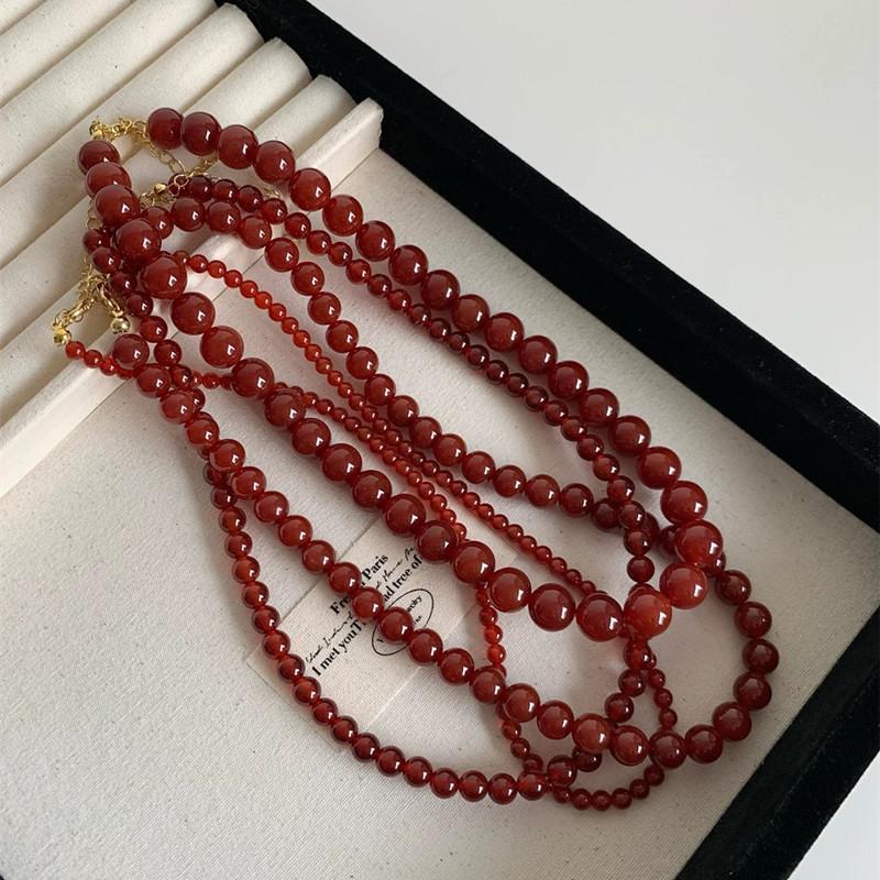Collar de cuentas de ágata roja elegante de alta calidad hecho a mano para mujer, estilo retro, ligero, de lujo, elegante, combinable con todo, cadena para clavícula.