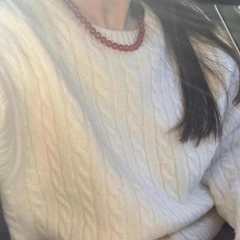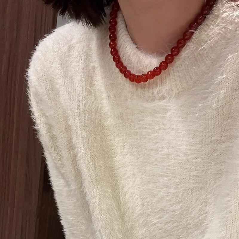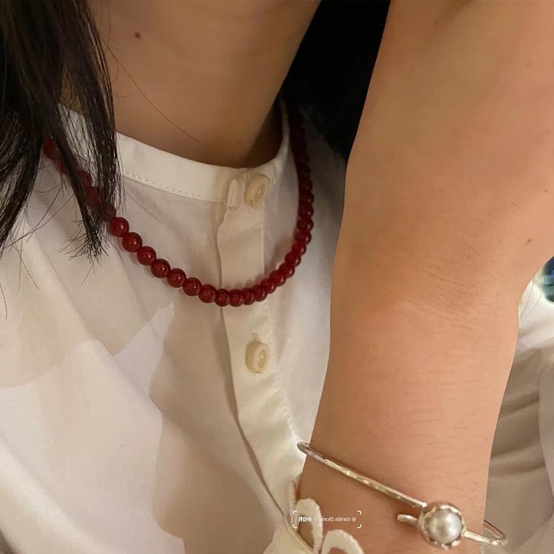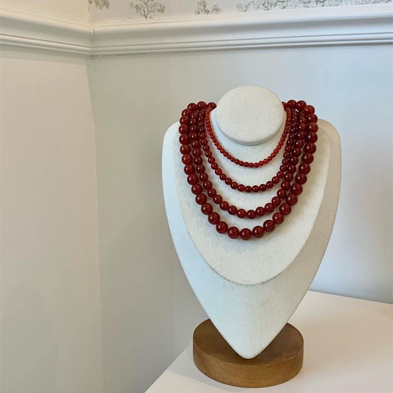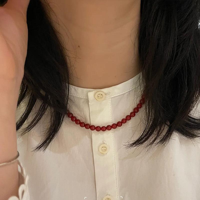 Collar de cuentas de ágata roja elegante de alta calidad hecho a mano para mujer, estilo retro, ligero, de lujo, elegante, combinable con todo, cadena para clavícula.