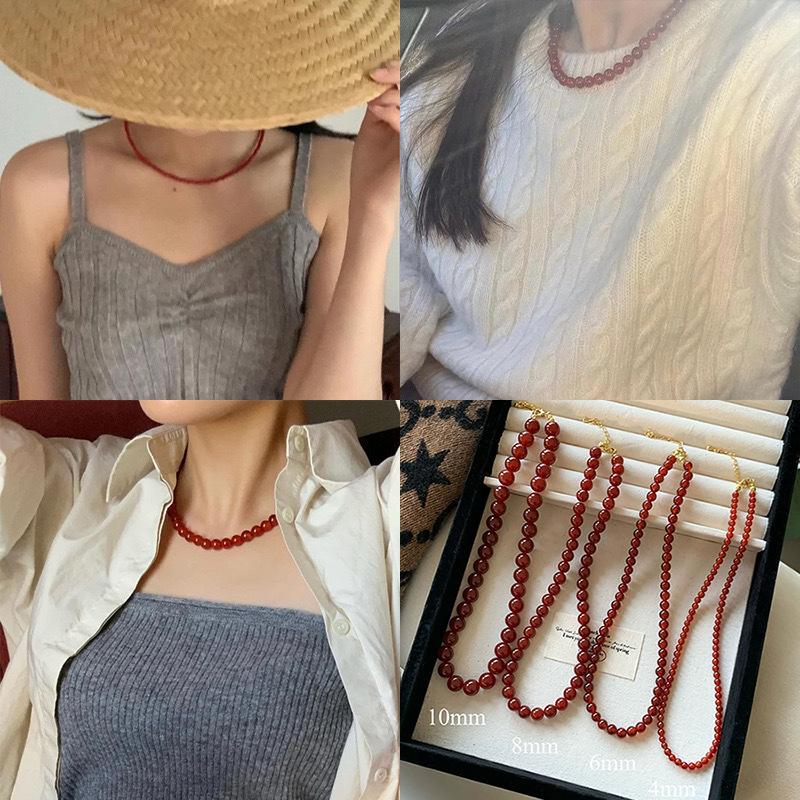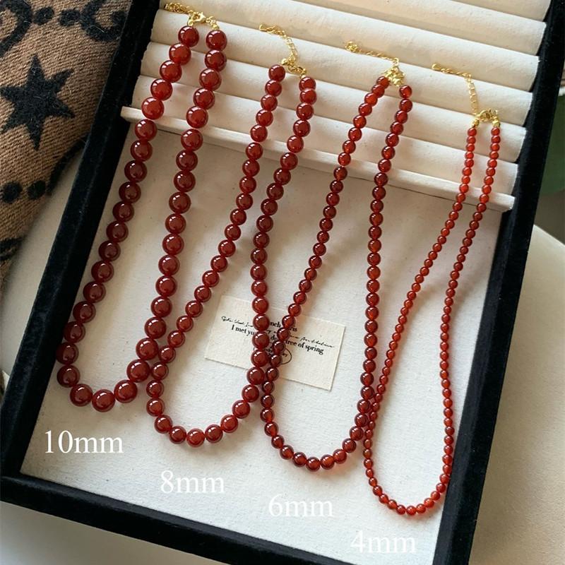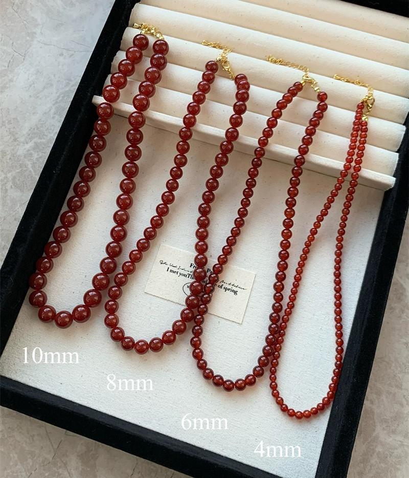 4mm red agate necklace, 6mm red agate necklace, 8mm red agate necklace, 10mm red agate necklace