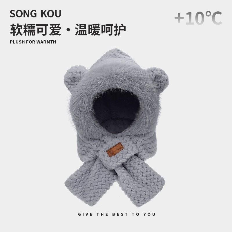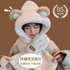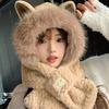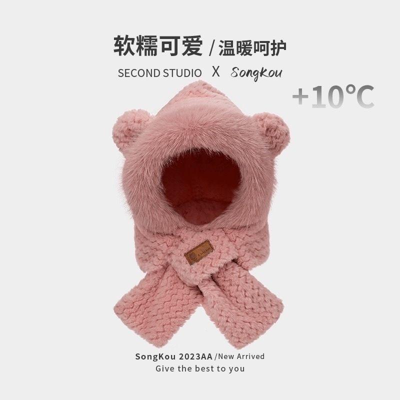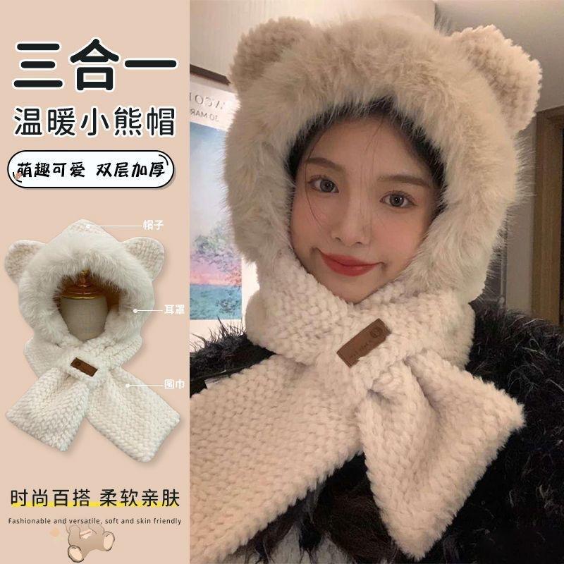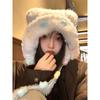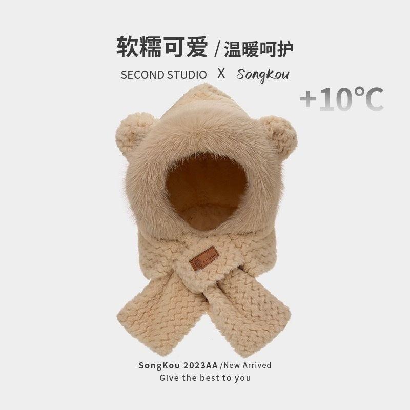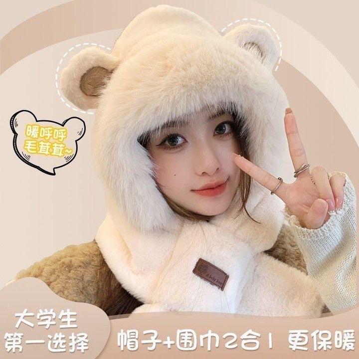 Gorro y bufanda de peluche con protección para las orejas de oso para mujer, cálido y resistente al frío para otoño e invierno.