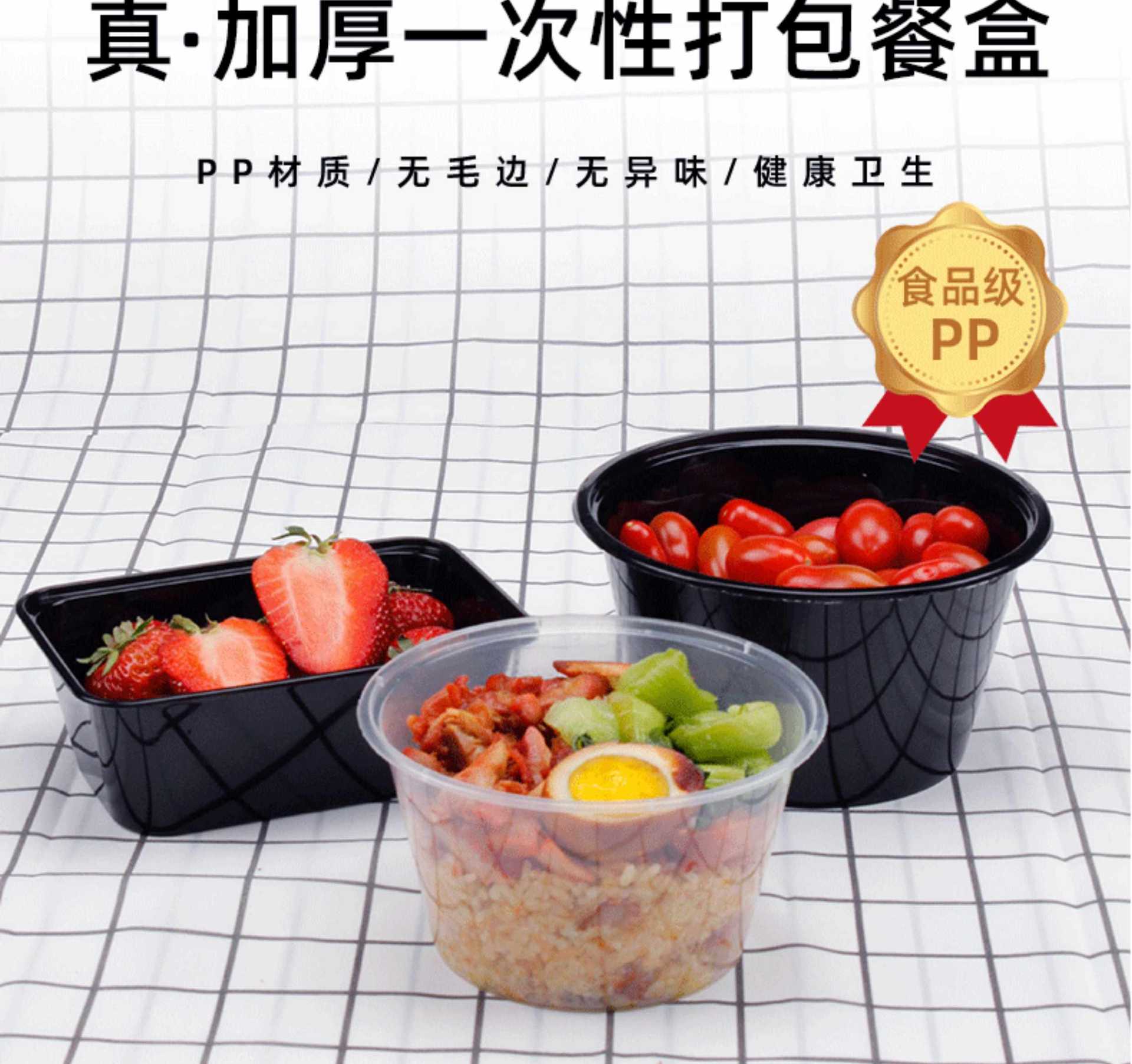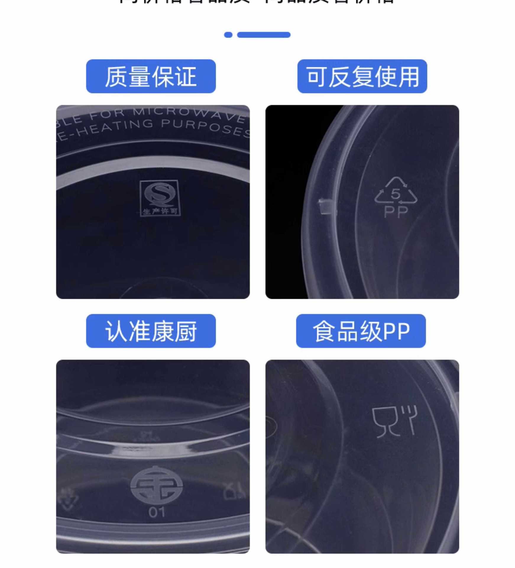 Lonchera desechable, caja de embalaje redonda, lonchera rectangular, tazón de plástico grueso de grado alimenticio, caja para llevar, tazón de sopa con tapa