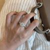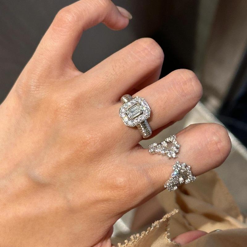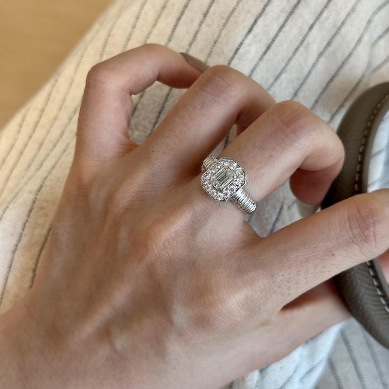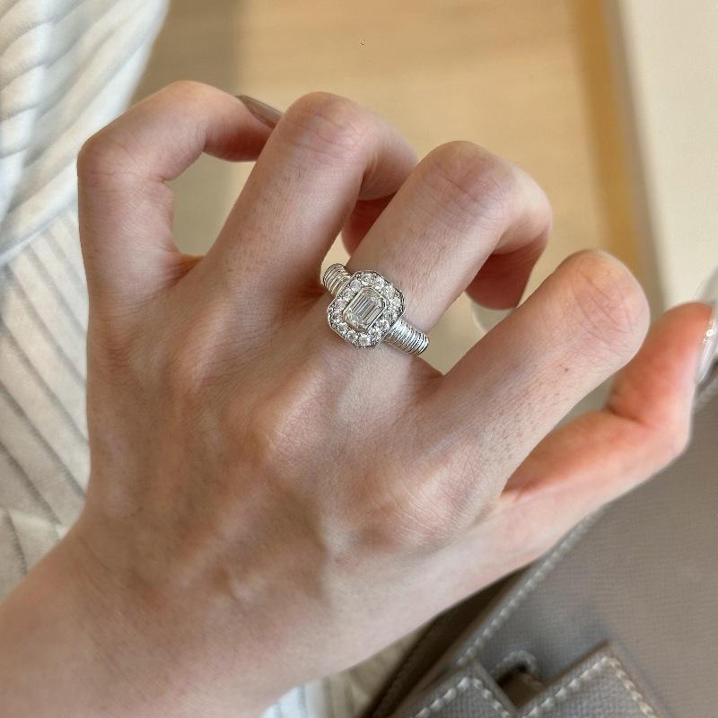 Anillo de Diamantes Cuadrado con Patrón de Cáñamo de Lujo Ligero de Alta Gama con Incrustaciones de Diamantes Completos Retro Sencillo Combinable Elegante Exquisito Anillo de Dedo para Mujer