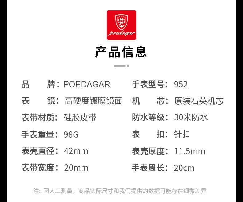 POEDAGAR Reloj Deportivo de Moda Reloj de Cuarzo Personalizado Luminoso Impermeable Comercio Exterior Ventas Calientes Reloj en Vivo 952
