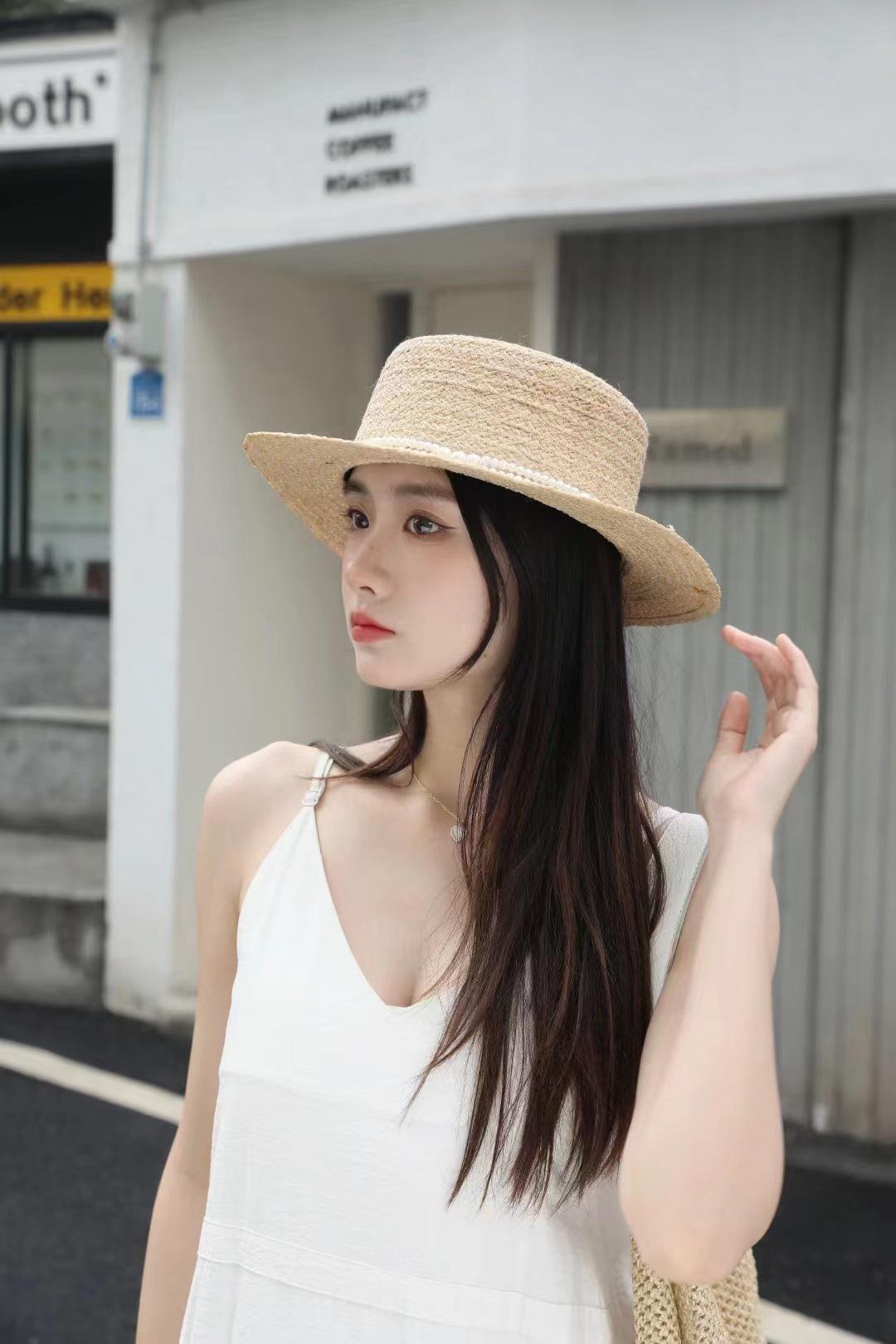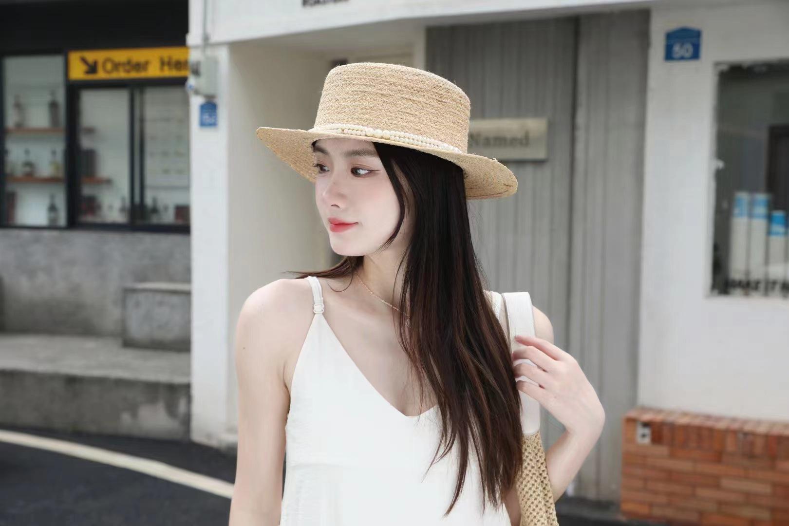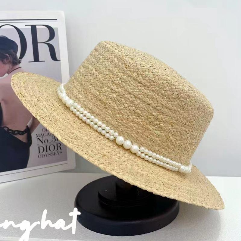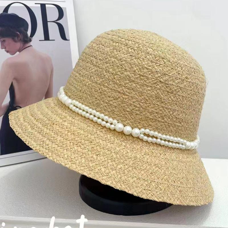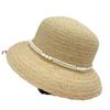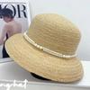 Sombrero de Paja Rafia Elegante Cadena de Perlas Estilo Coreano para Mujer Moda Verano Sombrero de Pescador Vacaciones Marítimas Sombrilla Sombrero de Playa