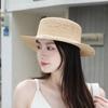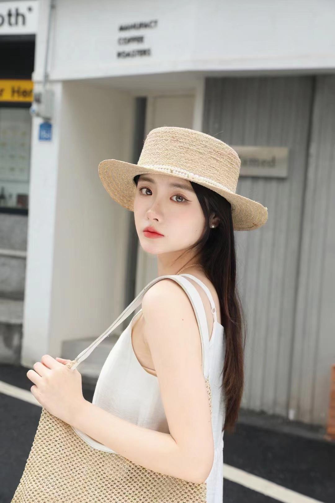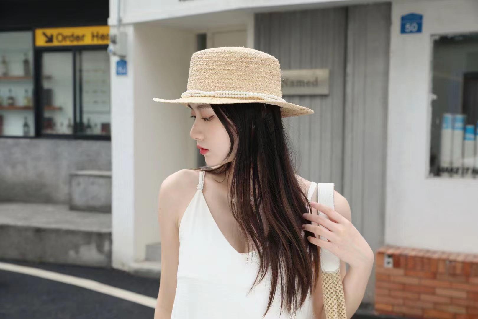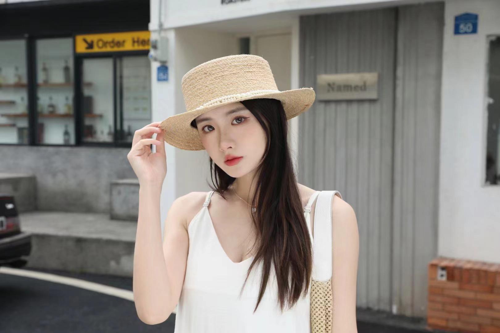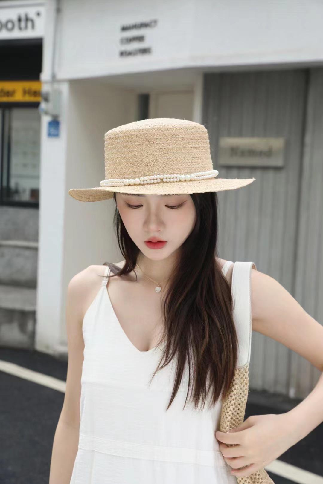 Sombrero de Paja Rafia Elegante Cadena de Perlas Estilo Coreano para Mujer Moda Verano Sombrero de Pescador Vacaciones Marítimas Sombrilla Sombrero de Playa
