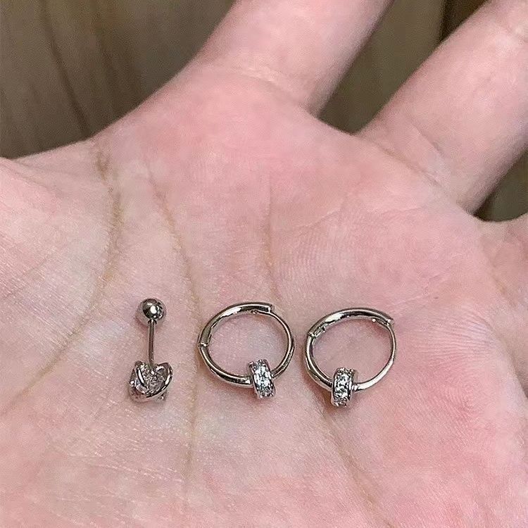 1 pair - ear buttons, 1 pair - silver cross planet, Silver universe [single] + earrings [pair]