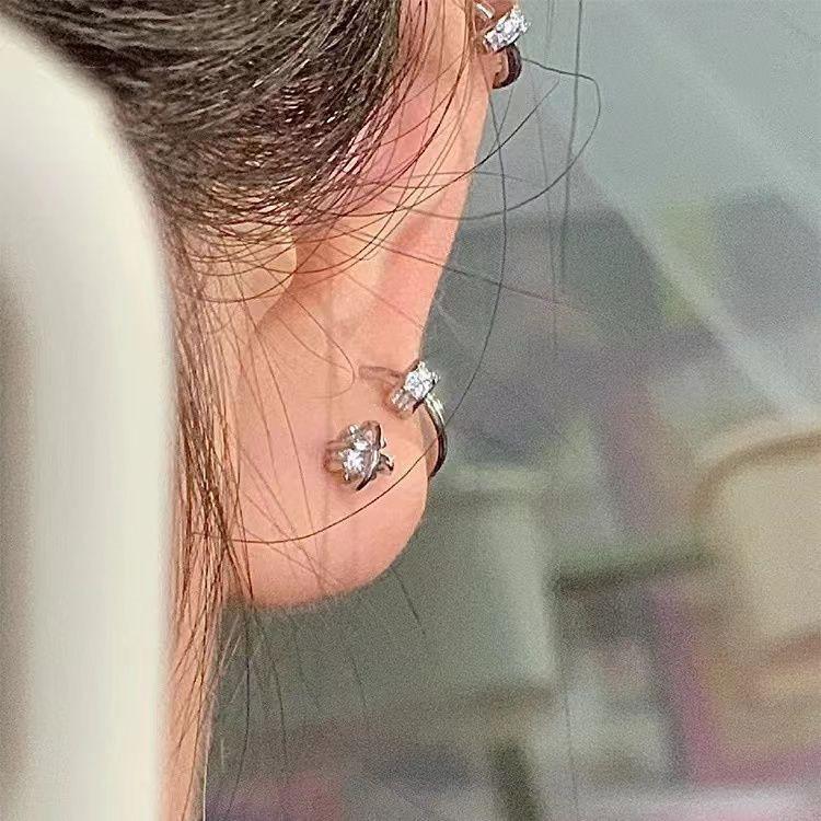 Pendientes de circonita con forma de cruz y diseño de hueso para la oreja, con diamantes, exquisitos, ligeros, de lujo, elegantes y con hebilla para la oreja, estilo frío y alto para mujer.