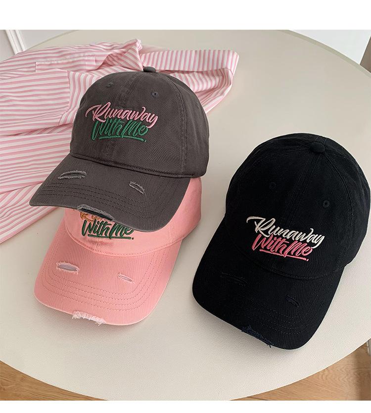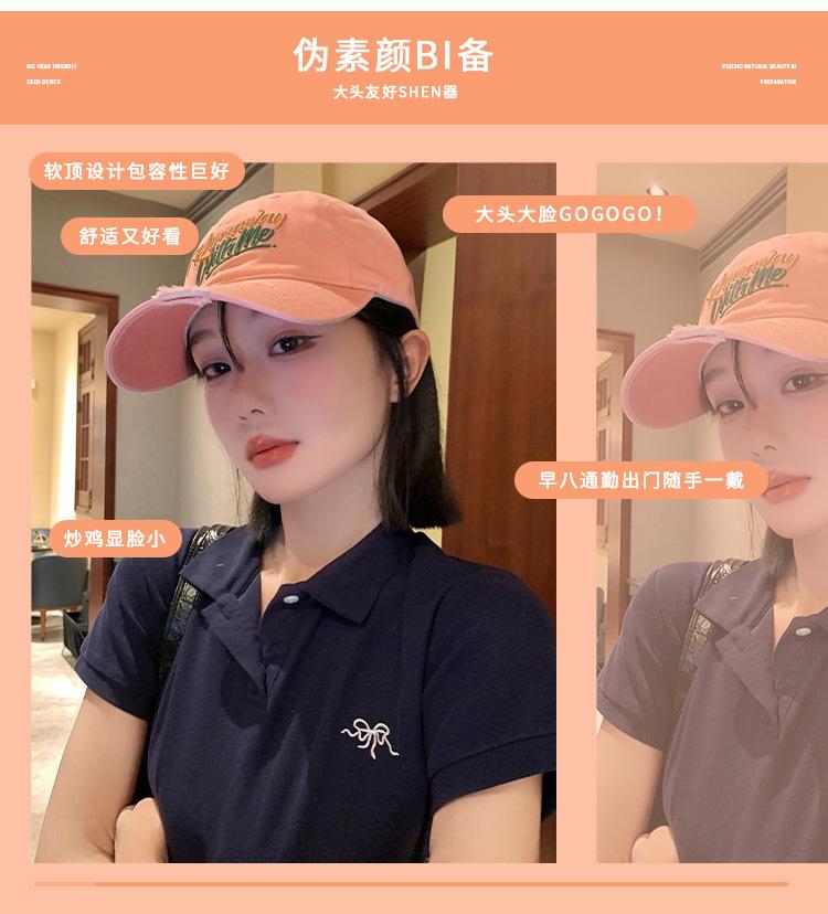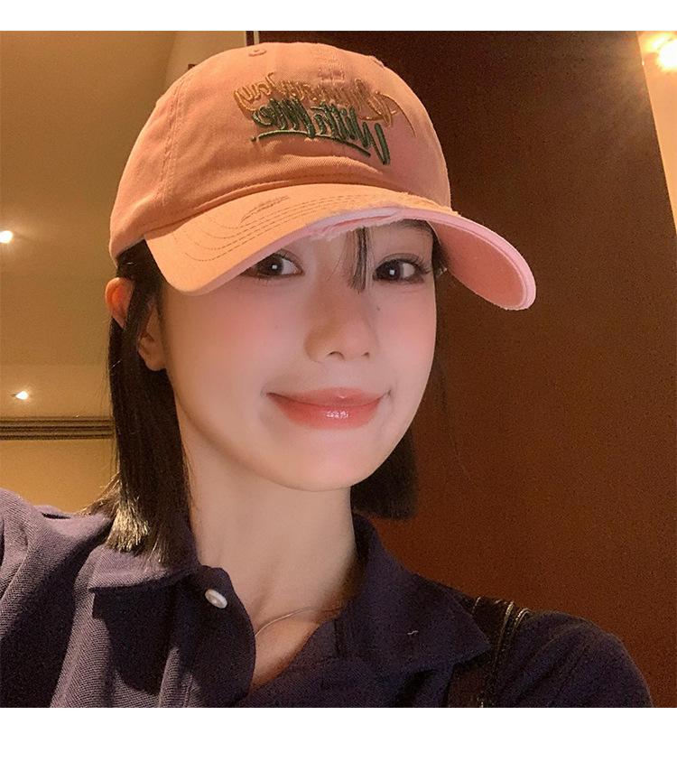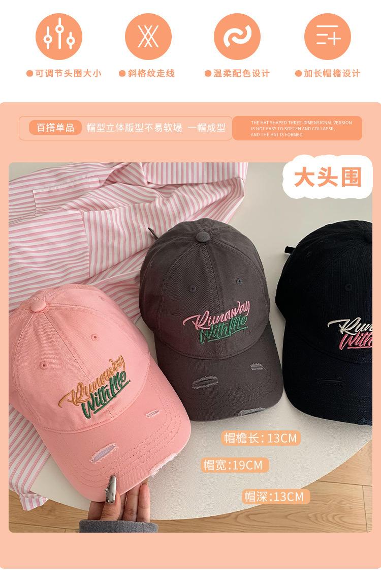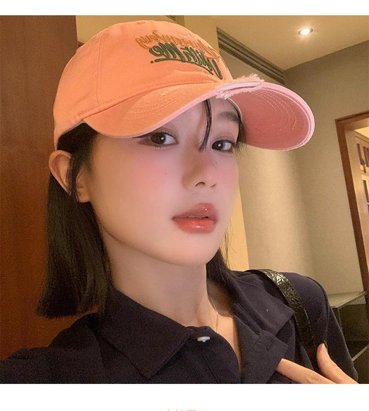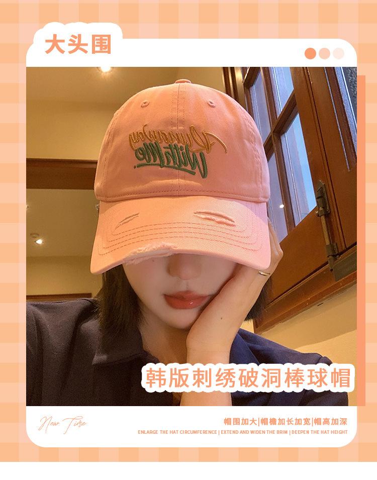 Gorra de béisbol bordada en rosa con letras de estilo coreano para mujer, informal, combinable, con cabeza grande, pequeña, a la moda, con lengüeta de pato