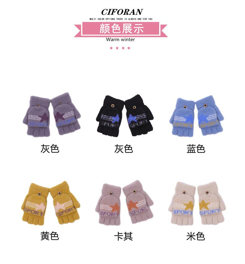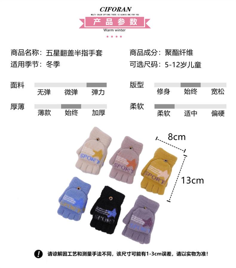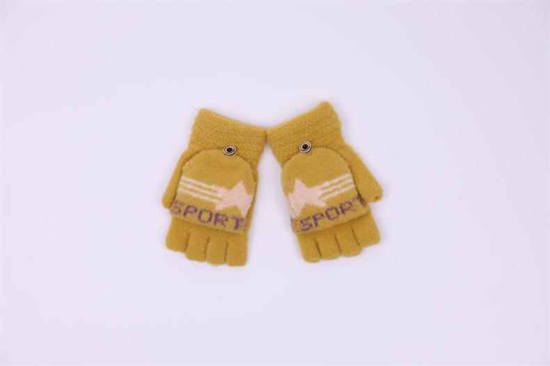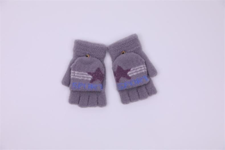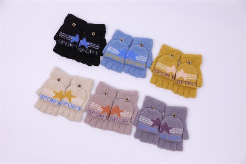 Guantes de invierno cálidos y gruesos para niños y niñas, de punto con dibujos animados, con tapa abatible, de doble uso, de medio dedo.