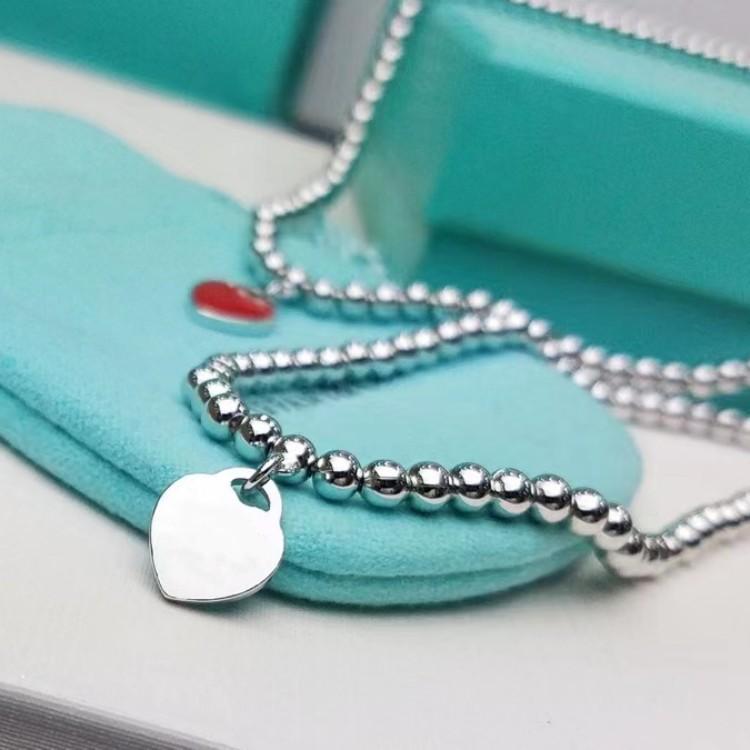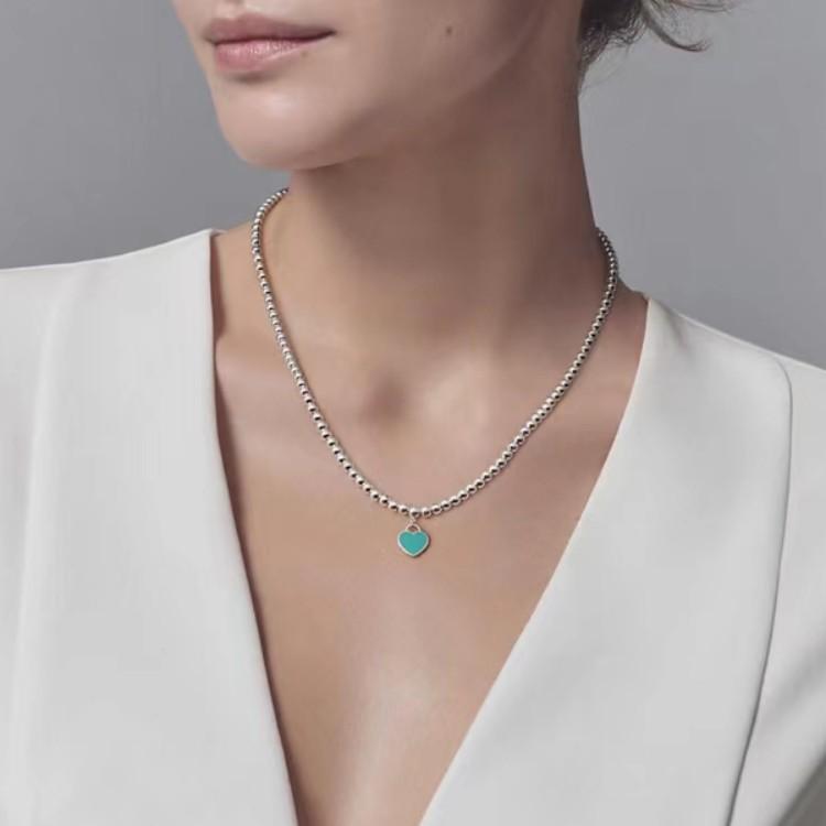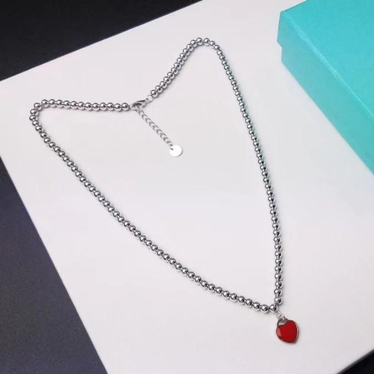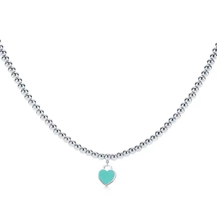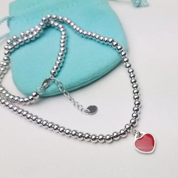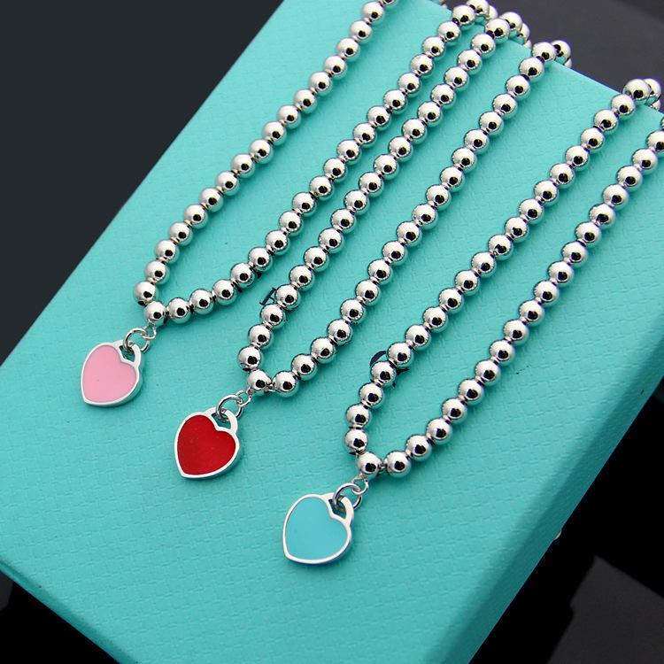 Collar de Cuentas de Amor de Esmalte Perla T Home Rojo y Azul Rosa Colgante de Corazón Regalo de Vacaciones para Mujer