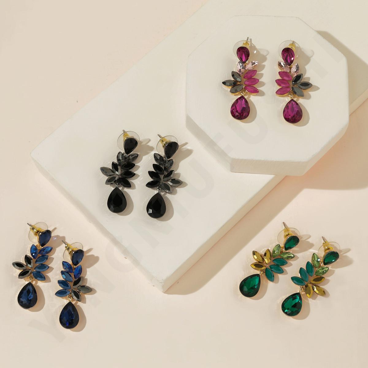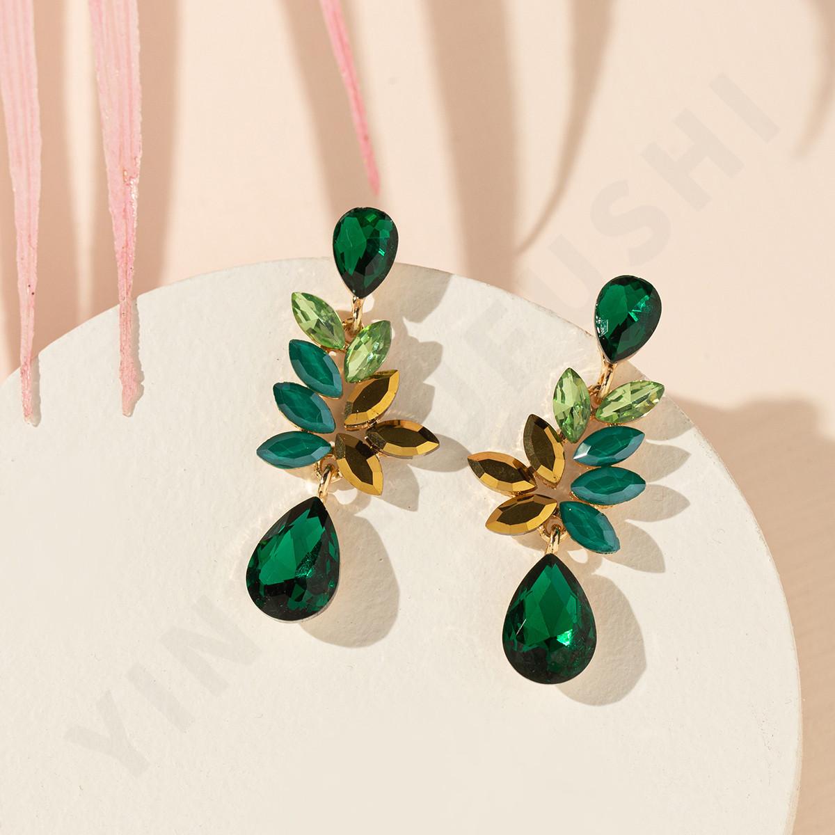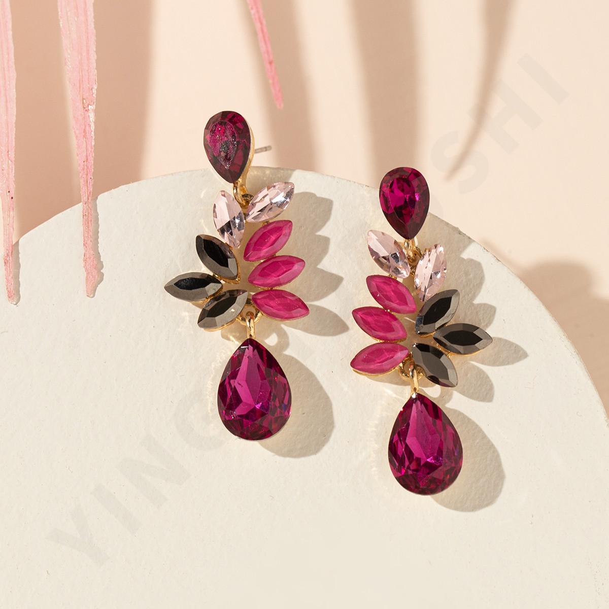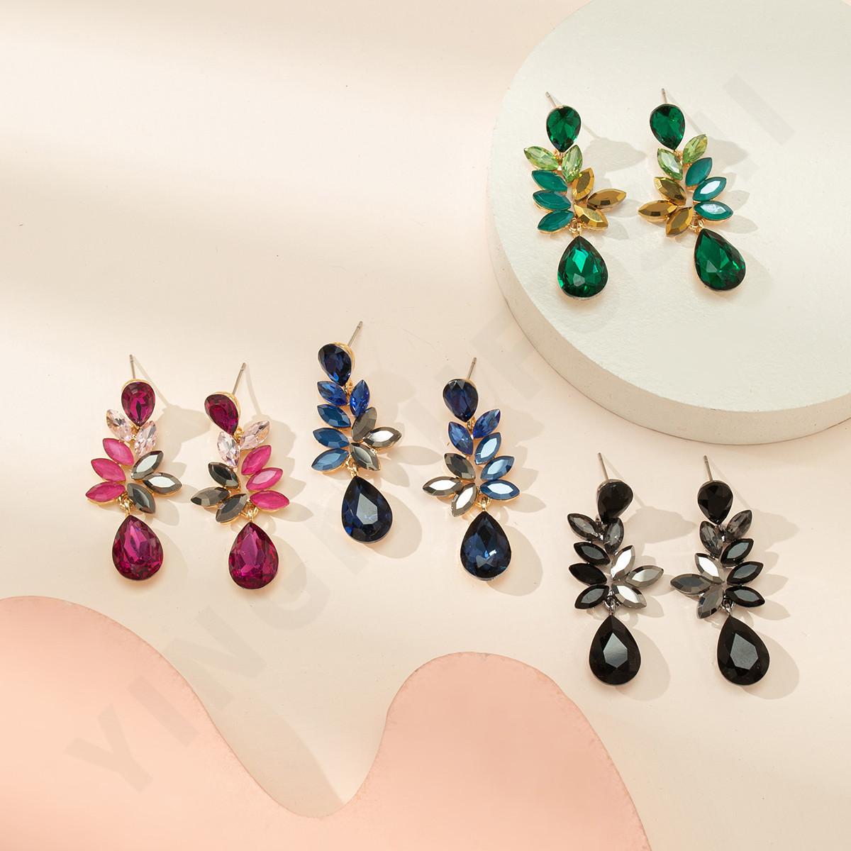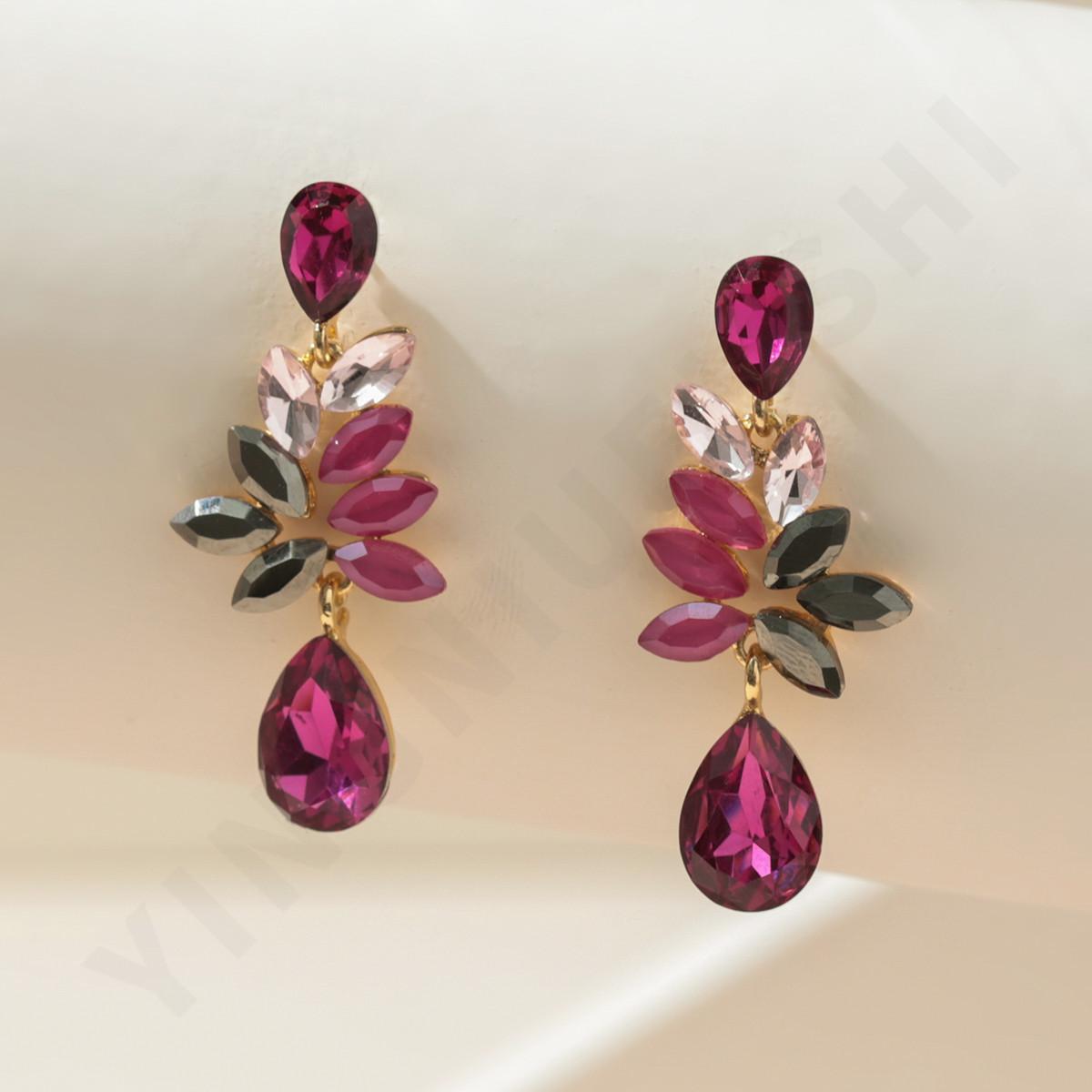 Pendientes de cristal hechos a mano de moda europea y americana, pendientes con hebilla retro francesa, pendientes elegantes de temperamento, venta al por mayor transfronteriza