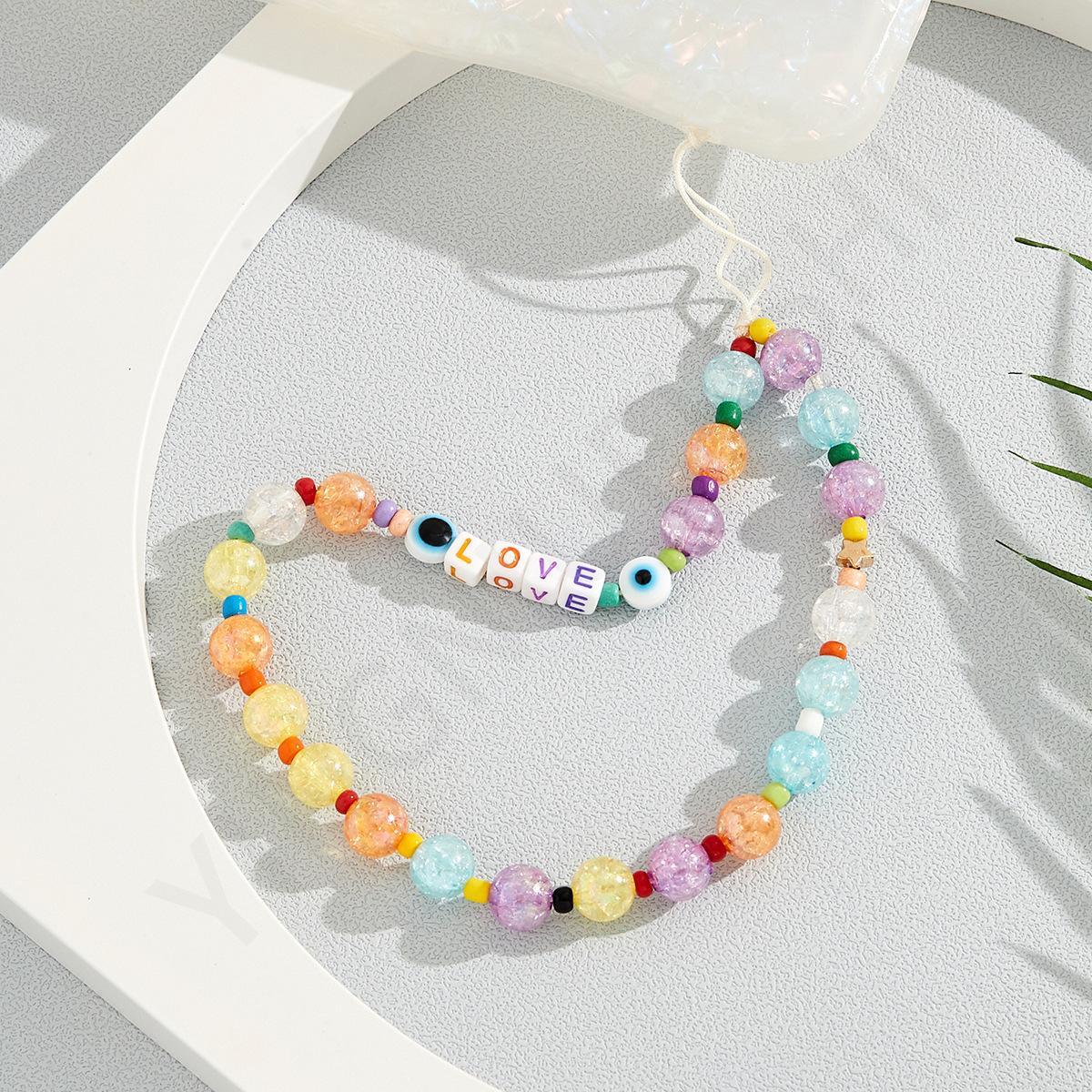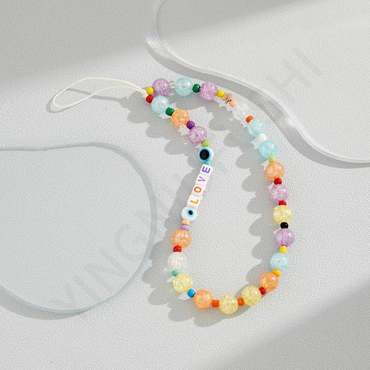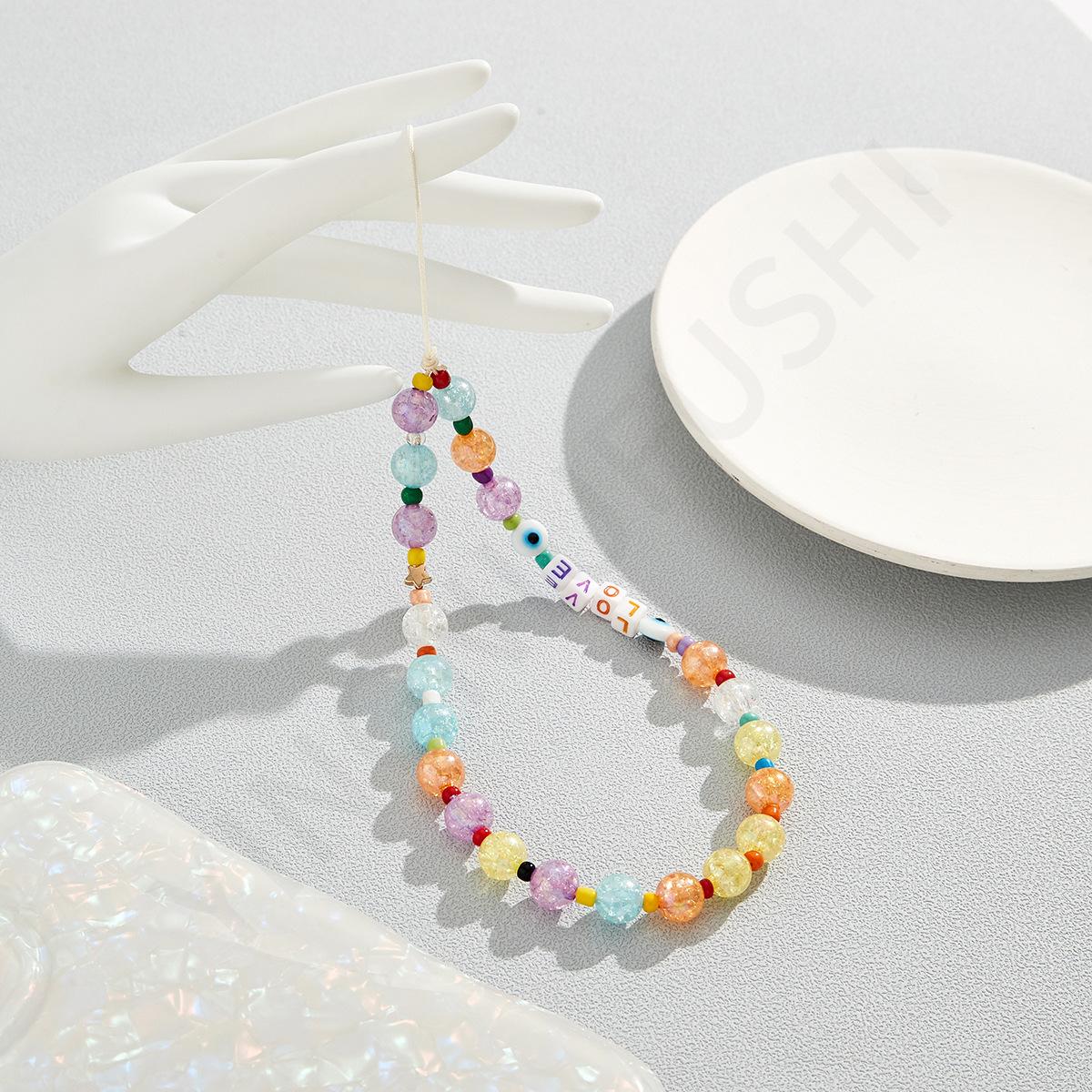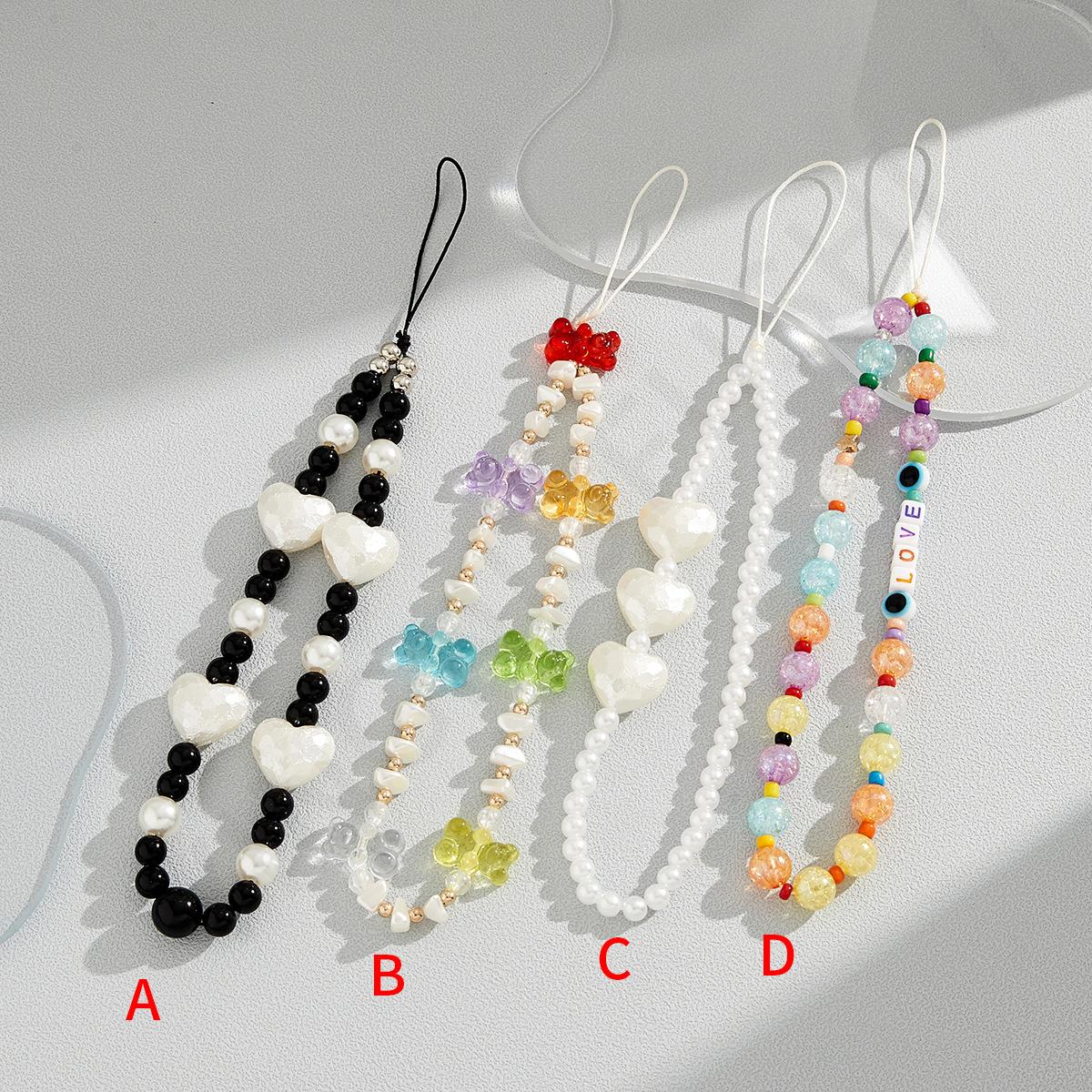 Nueva cadena para teléfono móvil con cuentas hecha a mano transfronteriza de Amazon, versión coreana con un diseño de colores dulces, cordón para teléfono móvil al por mayor