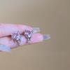 Pendientes de plata S925 con forma de aguja, con lazo de diamantes rosas, diseño simple, súper llamativos, con forma de oreja y hueso para mujer.