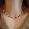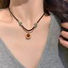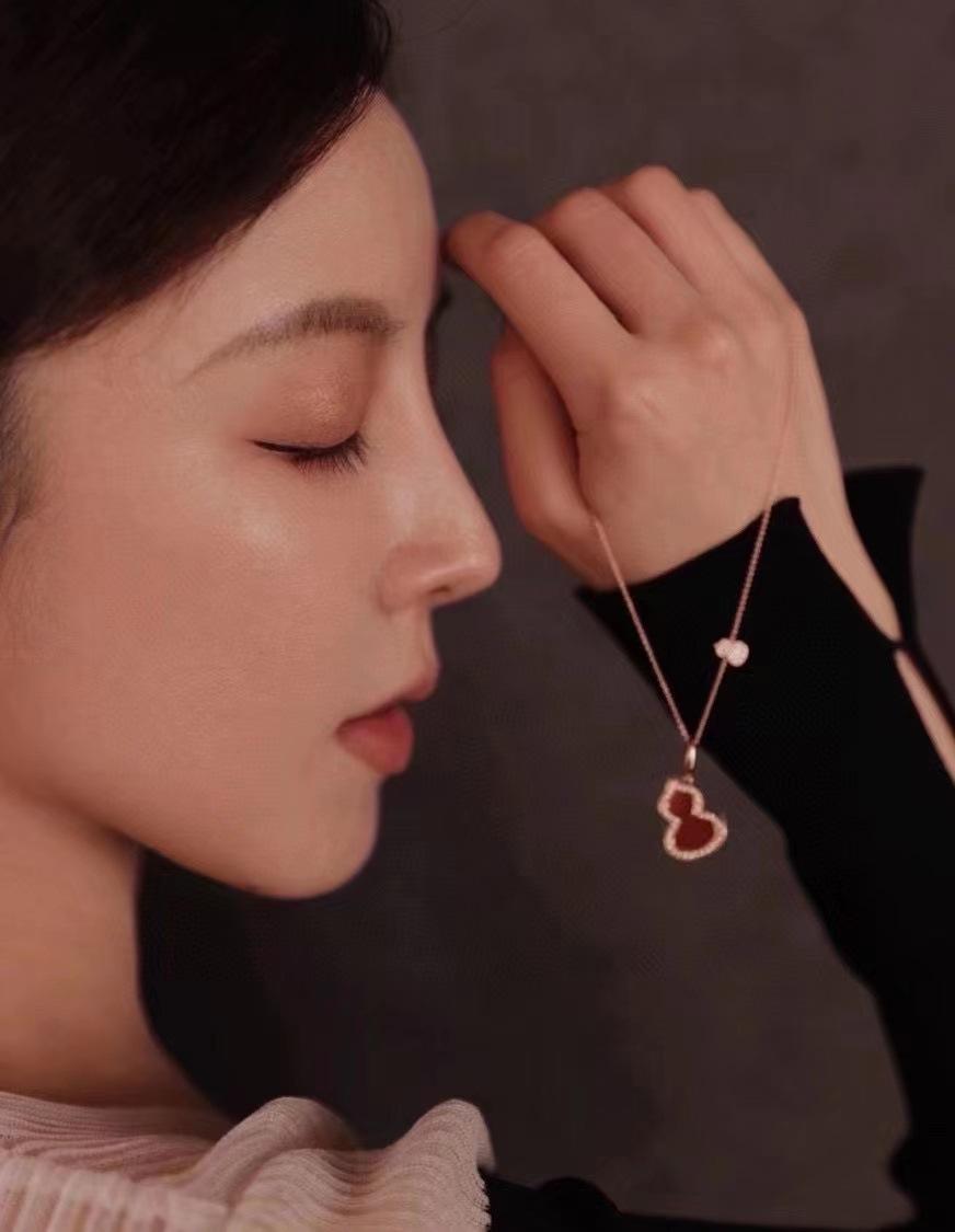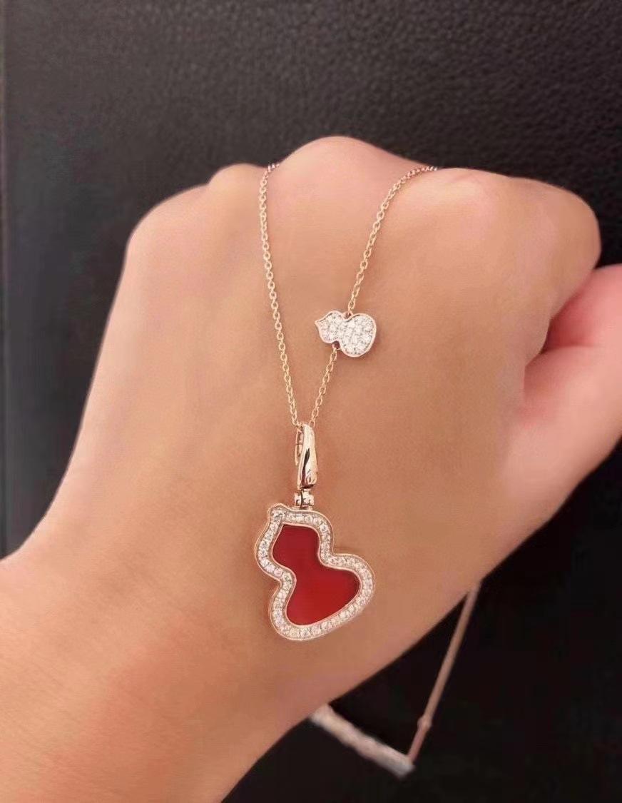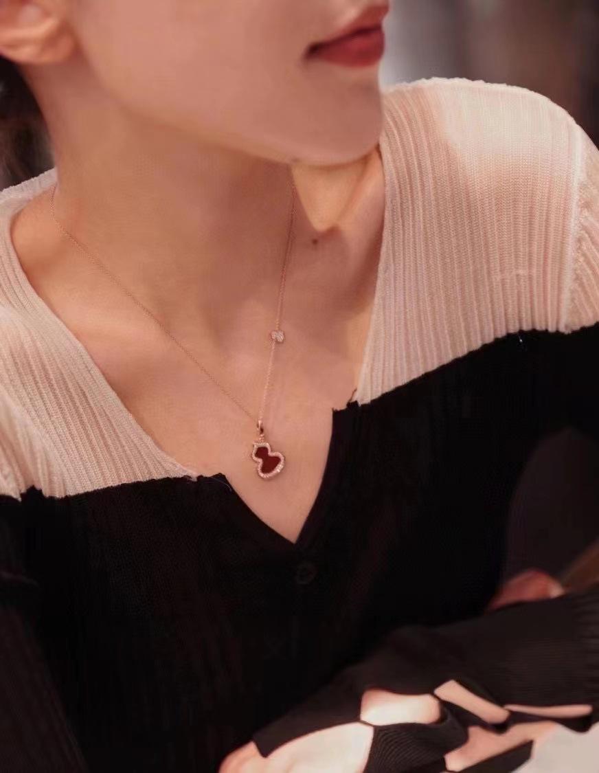 Collar de Calabaza para Mujer Ágata Roja Incrustada con Diamantes Completos Año de Nacimientos Transferencia Moda Combinable Oro Rosa Cadena Clavicular de Alta Gama