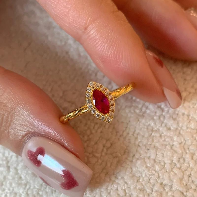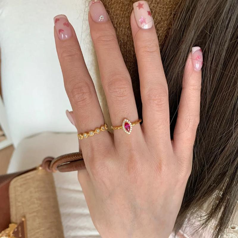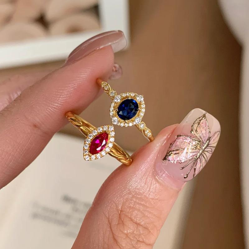 Anillo vintage francés con zafiro rojo incrustado para mujer, anillo de dedo de alta gama con nicho de apertura, joyería de moda recién llegada.