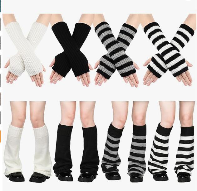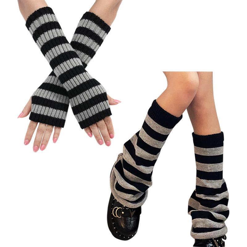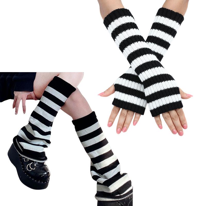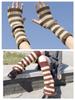 Guantes Largos a Rayas Nuevos Transfronterizos Otoño e Invierno Mangas de Lana para Hombre y Mujer Largo Medio Tejidos Cálidos Dedos Mangas Falsas
