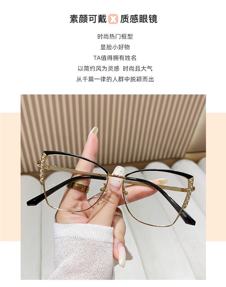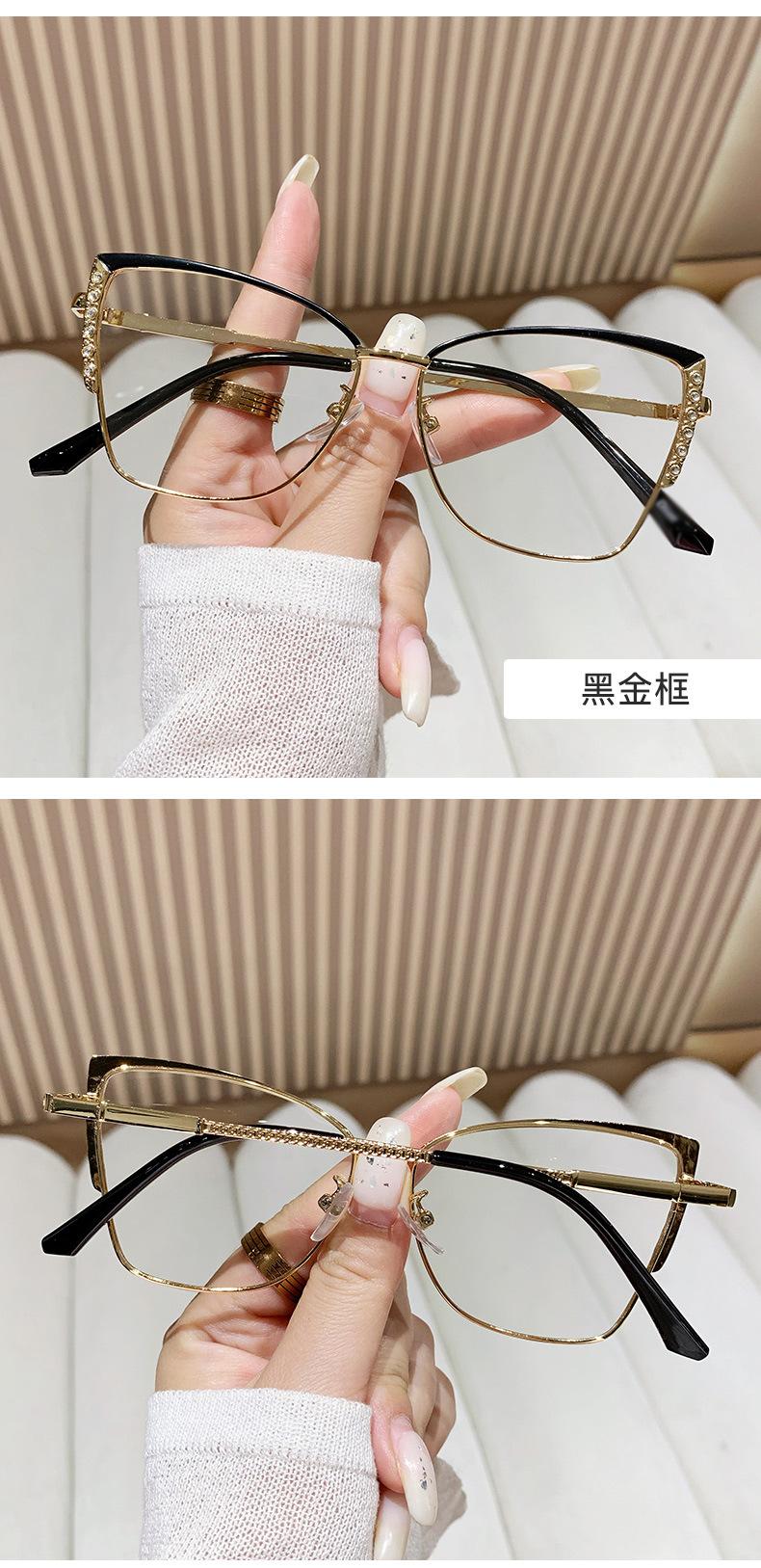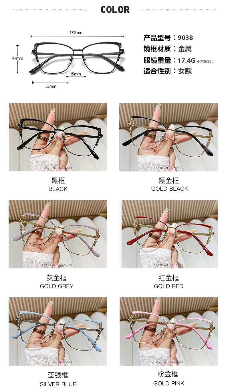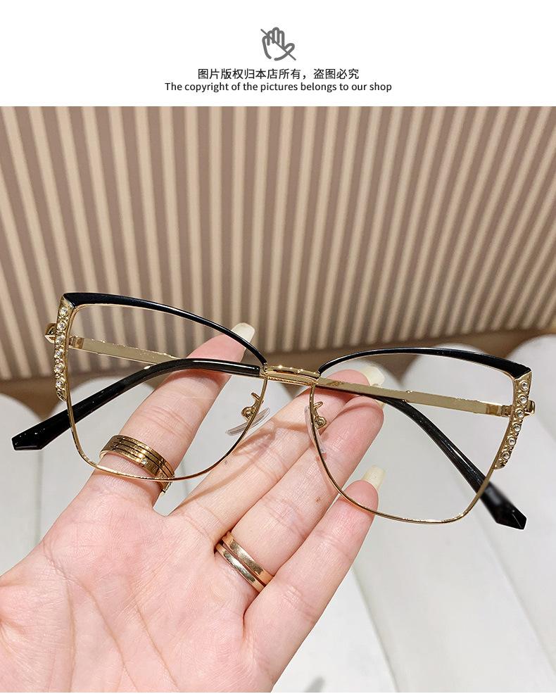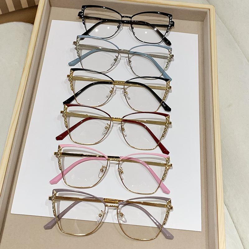 Armação de óculos olho de gato europeu e americano, armação de óculos de diamante de metal feminino, armação de óculos de comércio exterior, ins de fronteira, mudança de cor, óculos anti-luz azul