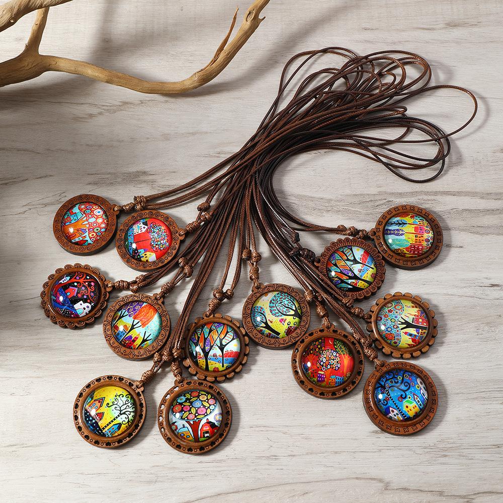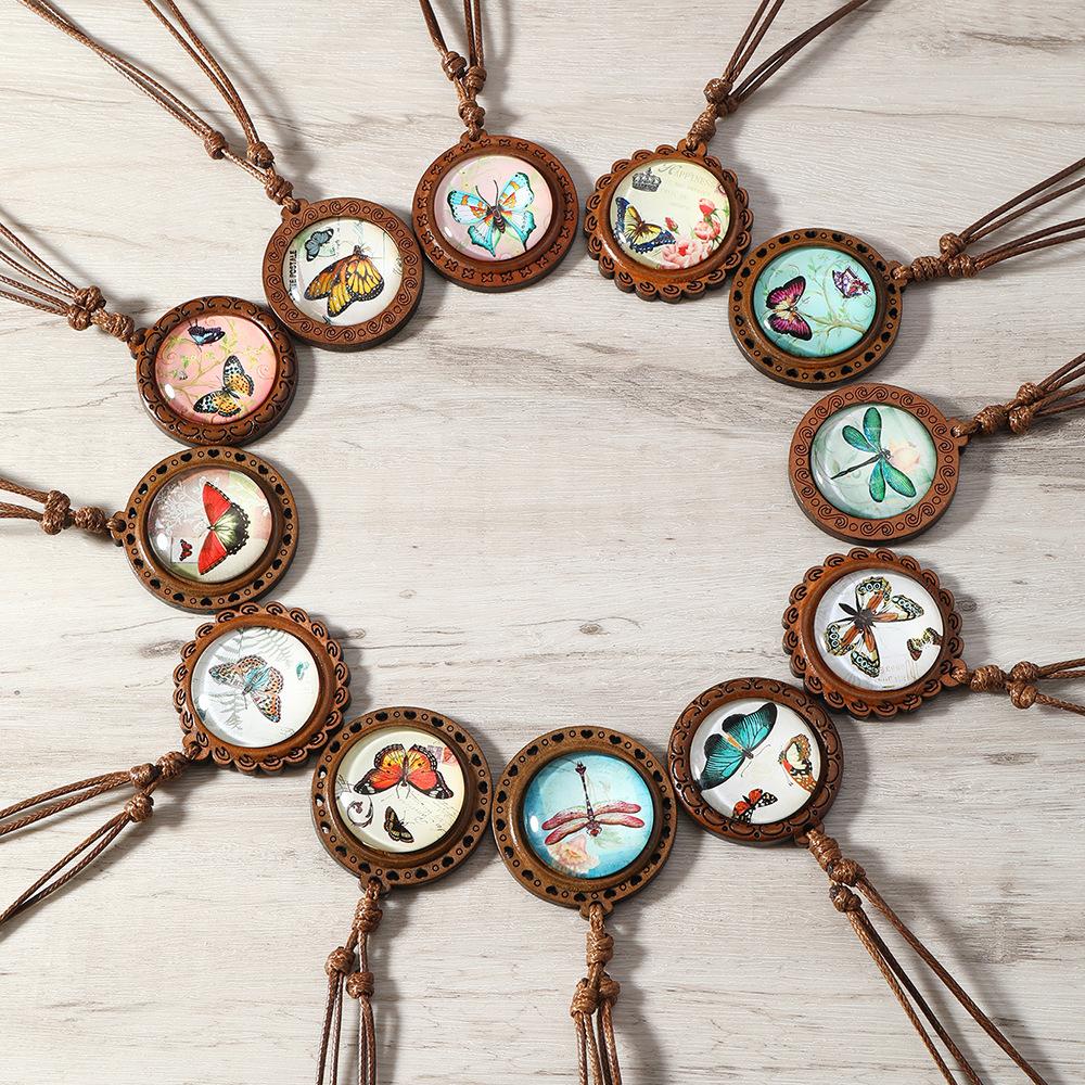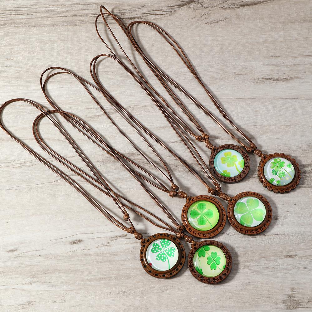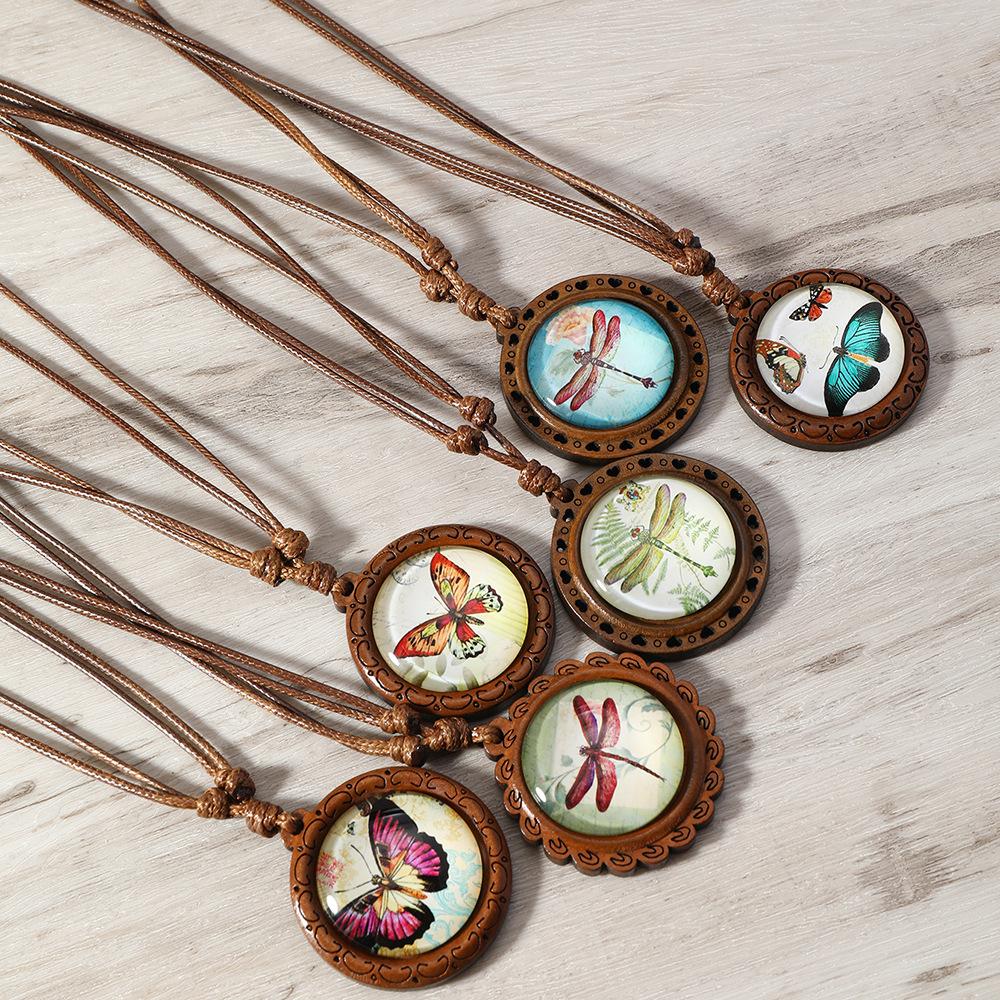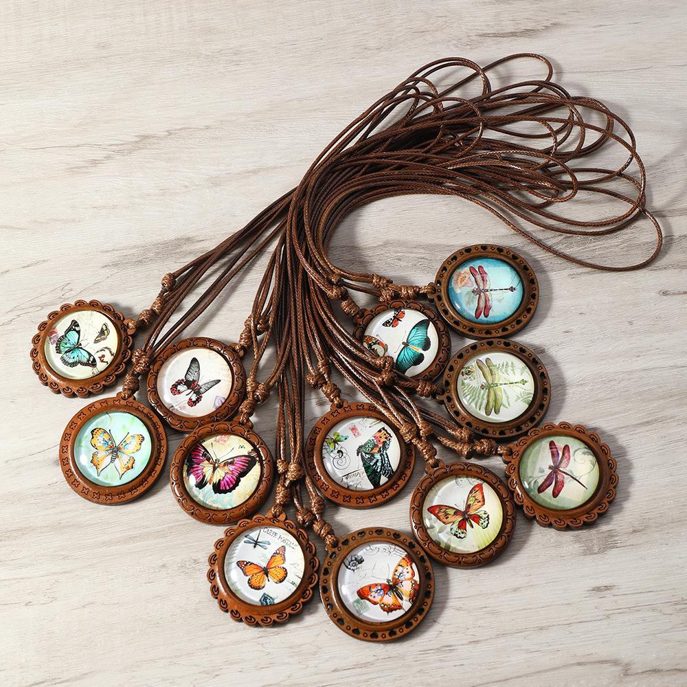 Colgante de mariposa de trébol de la suerte, estilo retro, fresco, dulce, sencillo, marrón, de cuerda, collar DIY, joyería de moda para hombres y mujeres