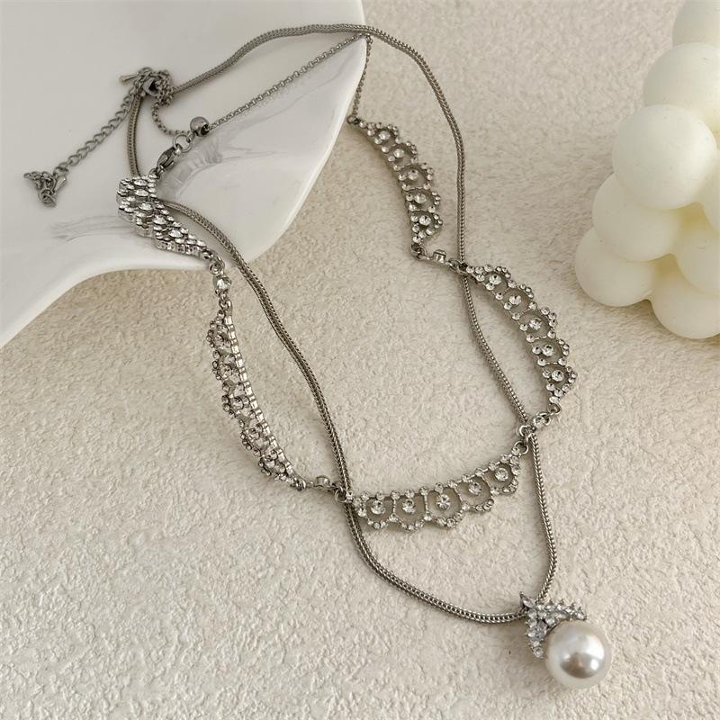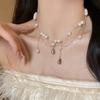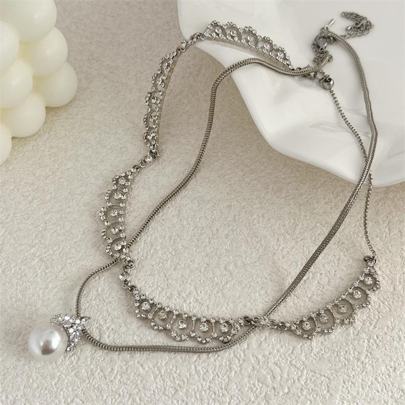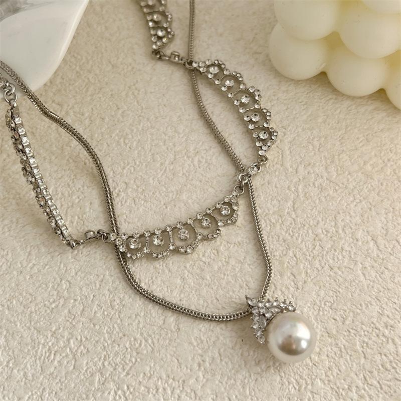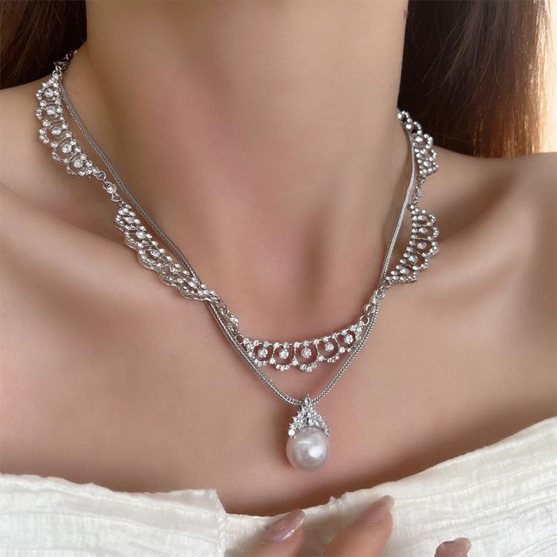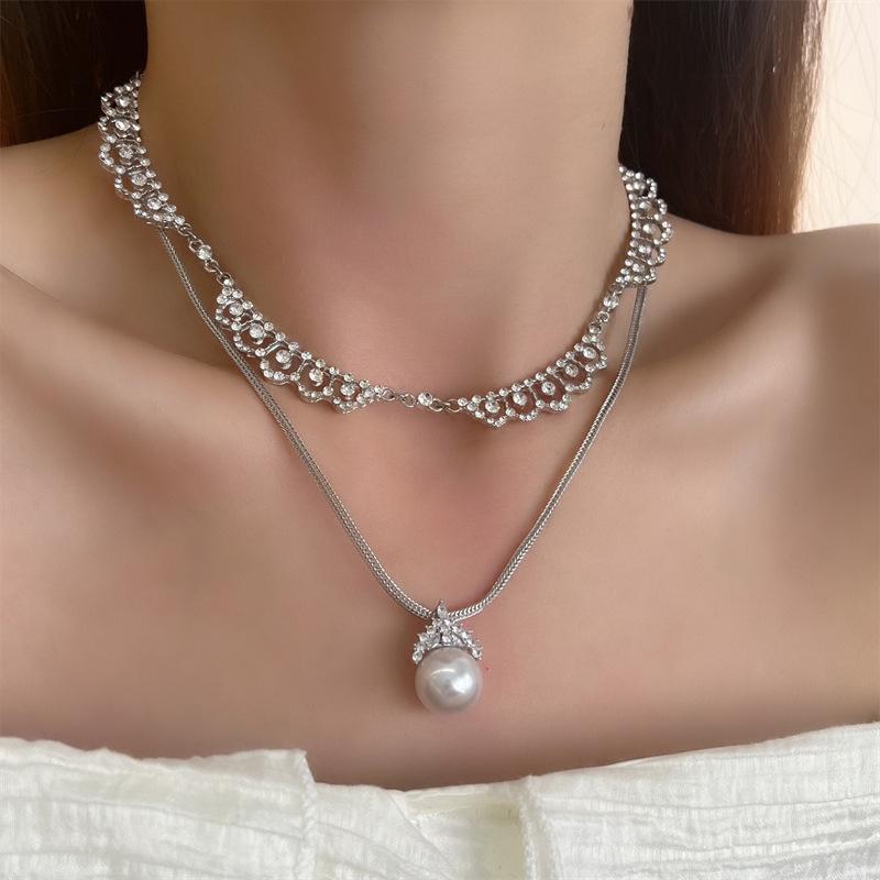 Collar de encaje de perlas, nuevo estilo, ligero, de lujo, de alta calidad, con cadena de clavícula, collar de perlas con corona, accesorios de nicho con temperamento femenino