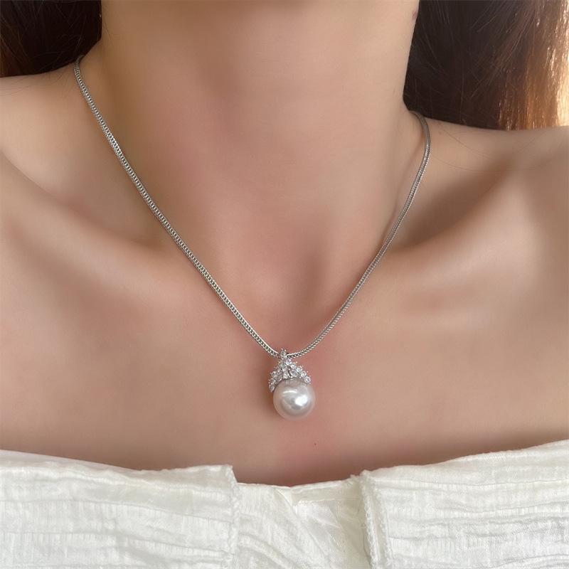 Lace Crown necklace, Pearl Pendant zircon necklace