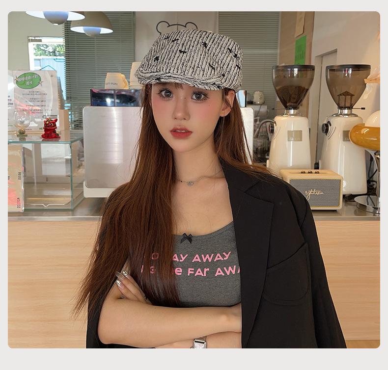 Gorra de mujer con lazo bordado con fragancia, estilo británico, vintage, estilo japonés, para repartidor de periódicos.