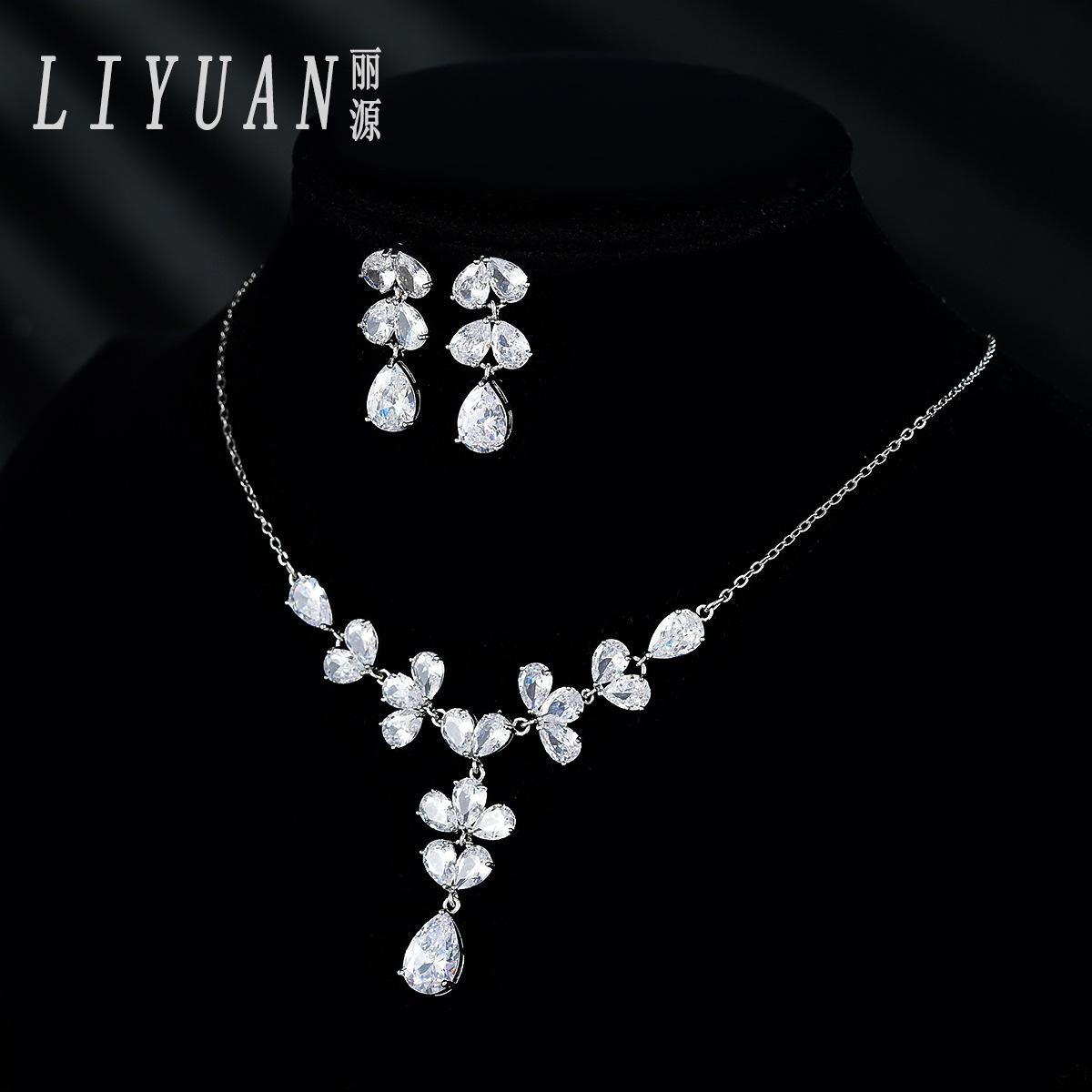 Nuevo Collar con Colgante Elegante y Lujoso Estilo Coreano Aretes de Circonia 3A Joyería Nupcial Boda Set Combinado Accesorios