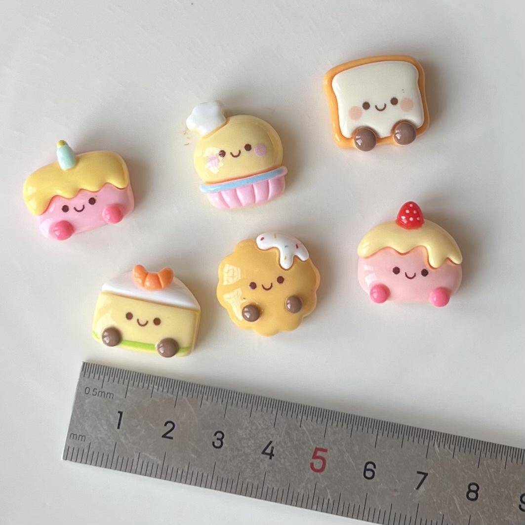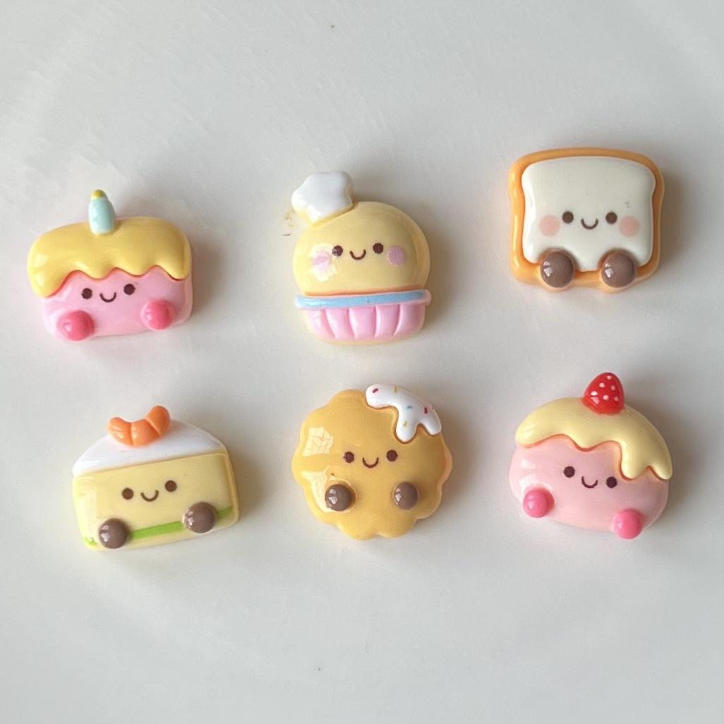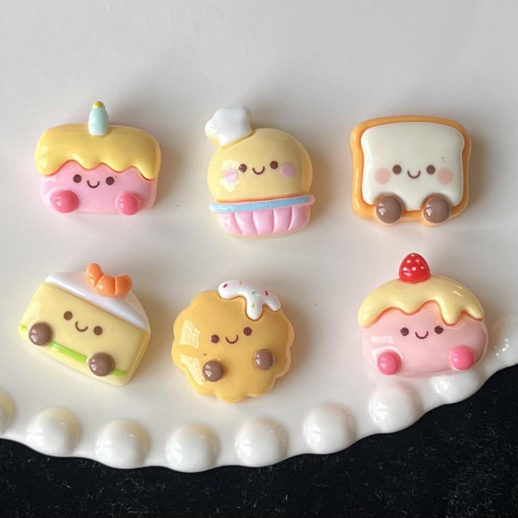 Lindo Dibujo Animado Expresión Pastel Comida Juego Resina Accesorios DIY Material Hecho a Mano Accesorios Carcasa Teléfono Móvil Adorno Flor Zapato a Juego