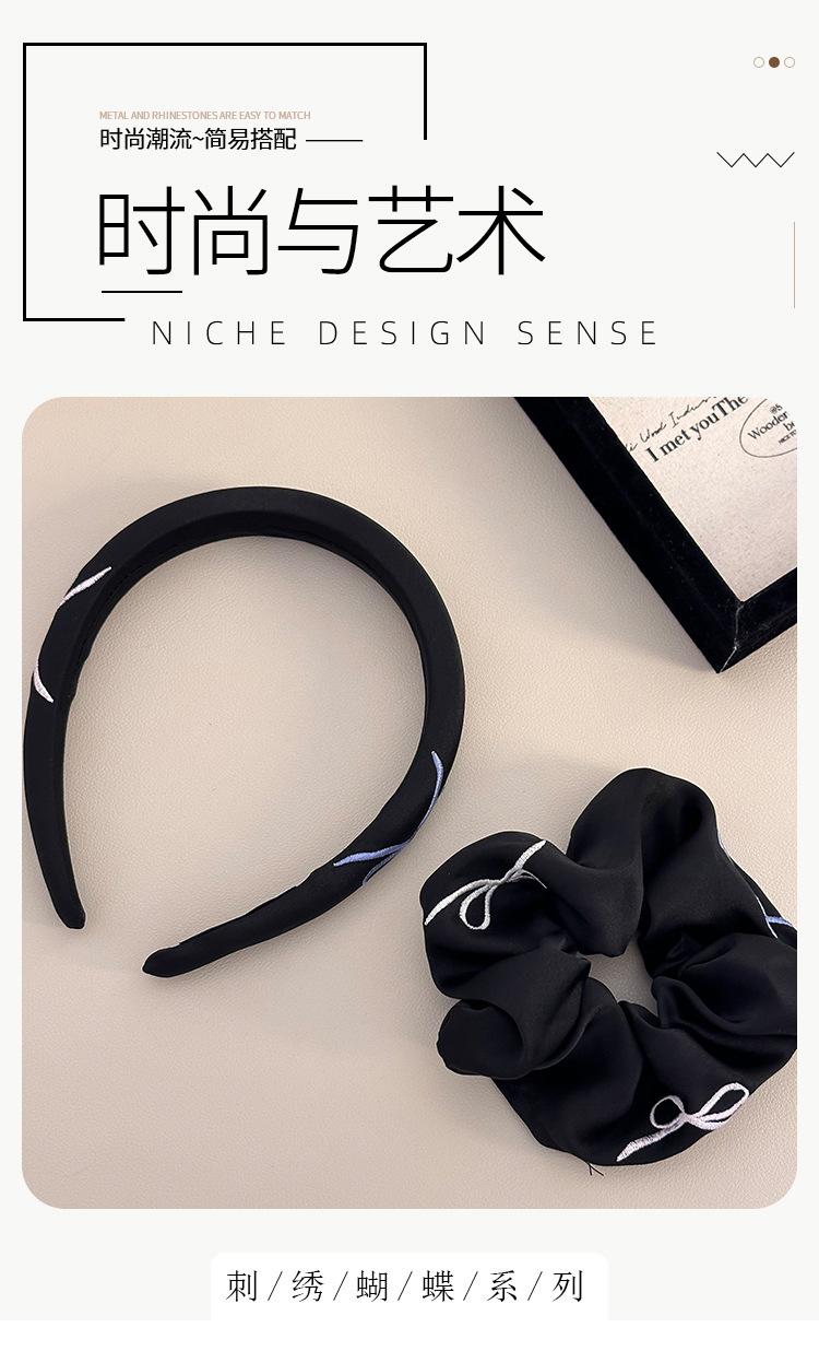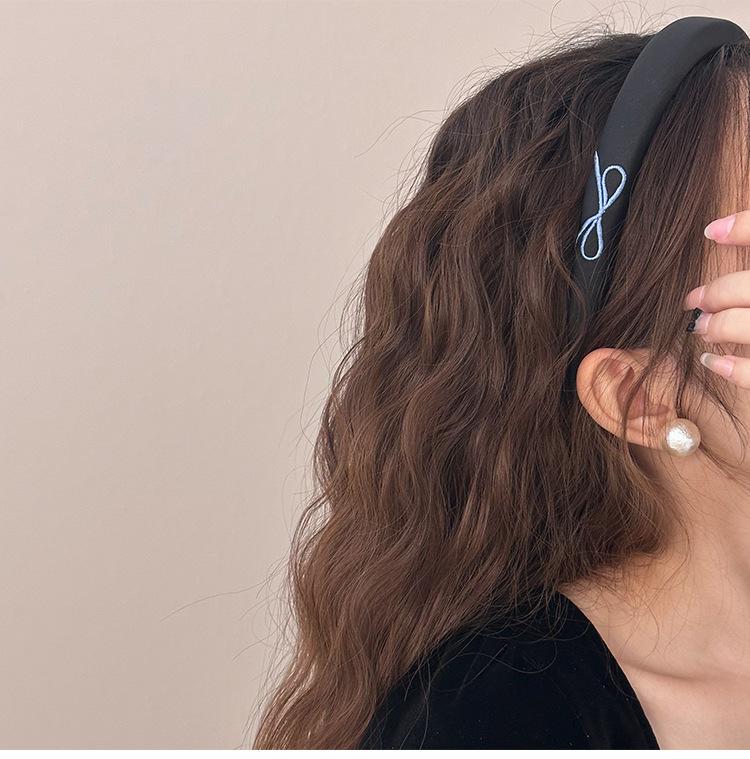 Diadema con lazo bordado estilo francés Hepburn, sencilla diadema con bola de satén, accesorio para el cabello de alta gama.
