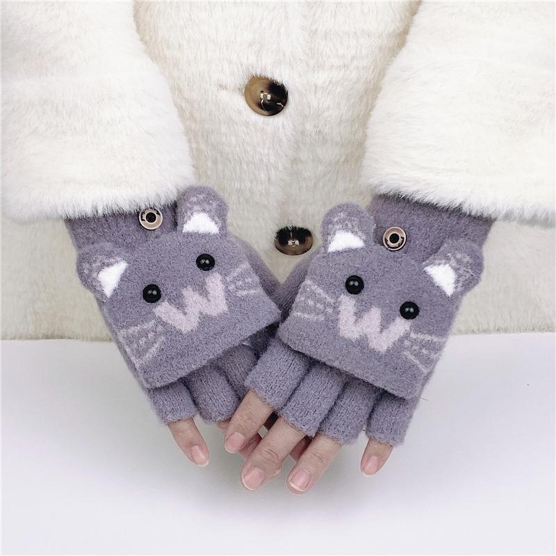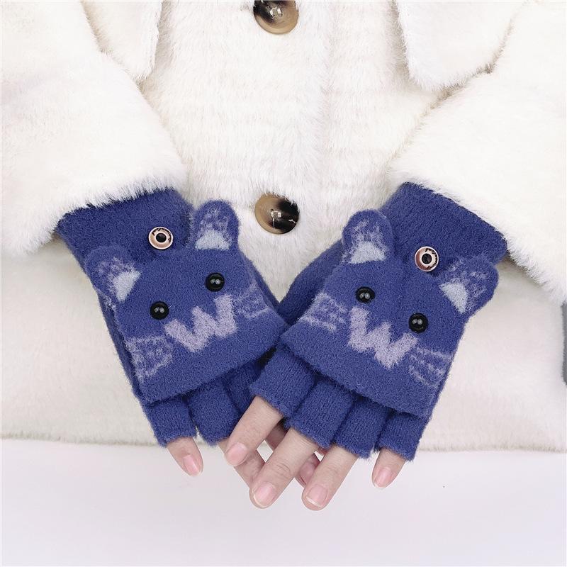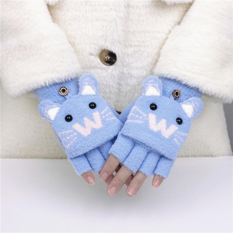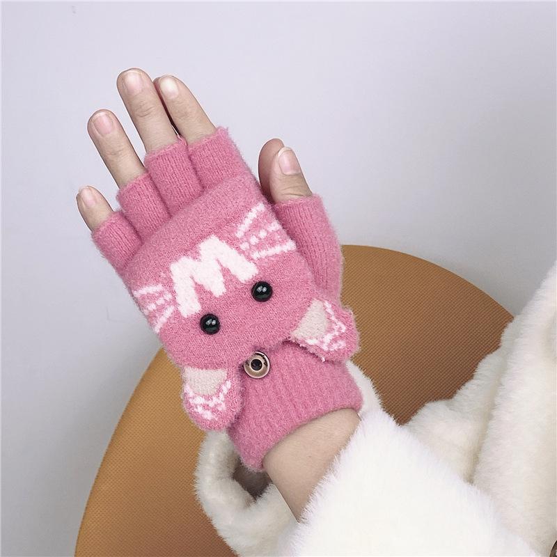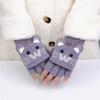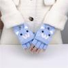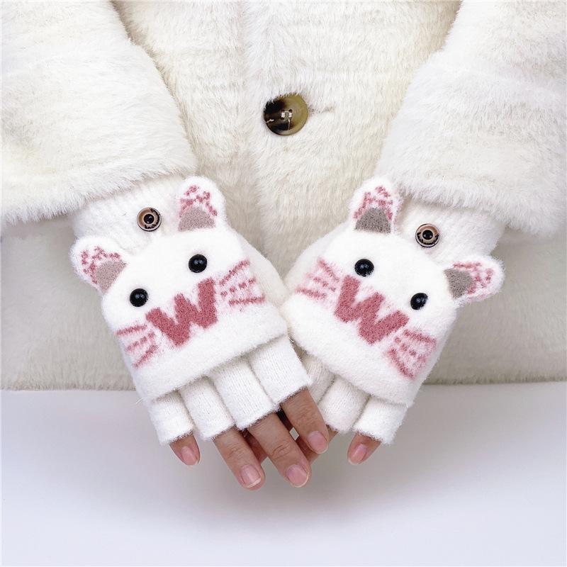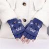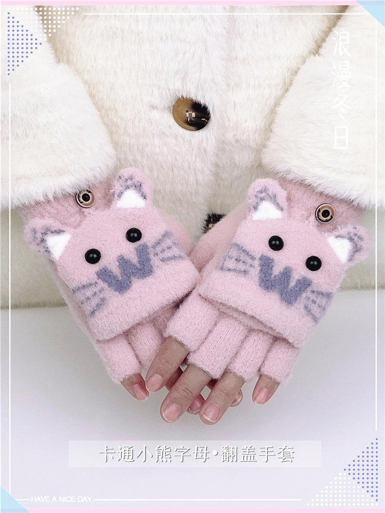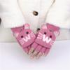 Guantes de Lana Tejida con Solapa de Medio Dedo con Letra W y Oso para Mujer Invierno Lindo Estilo Coreano Estudiantes Forro Polar Cálido Dedo Descubierto