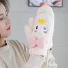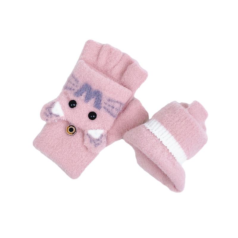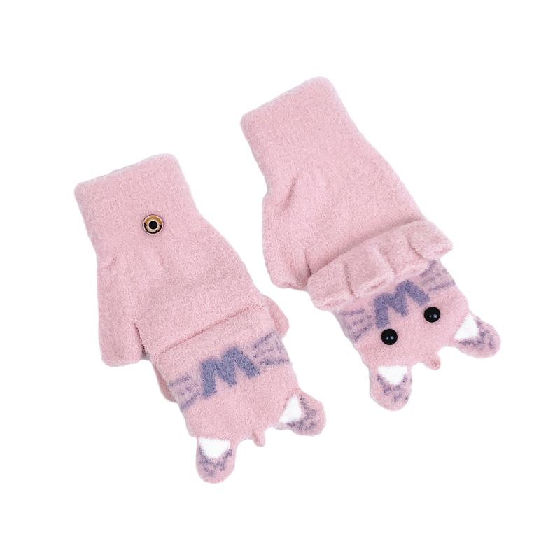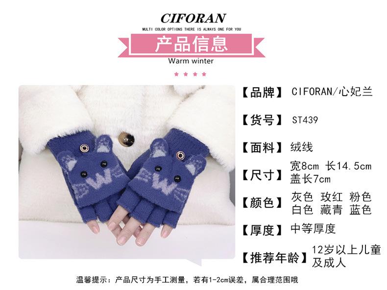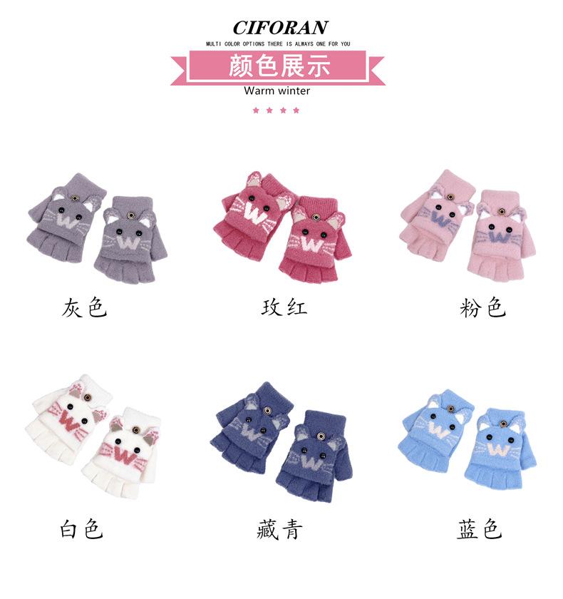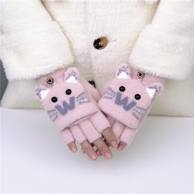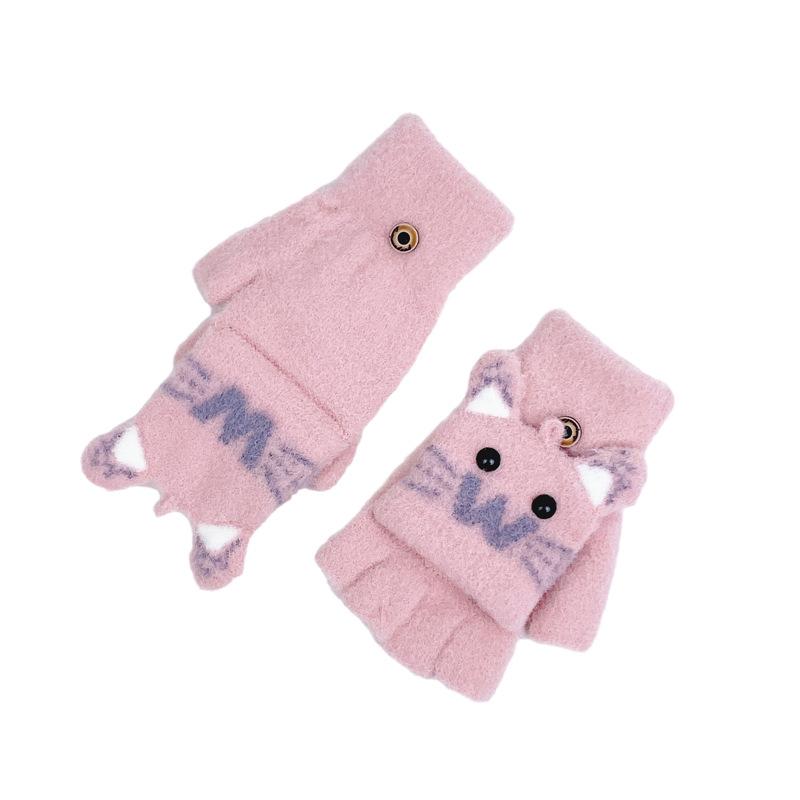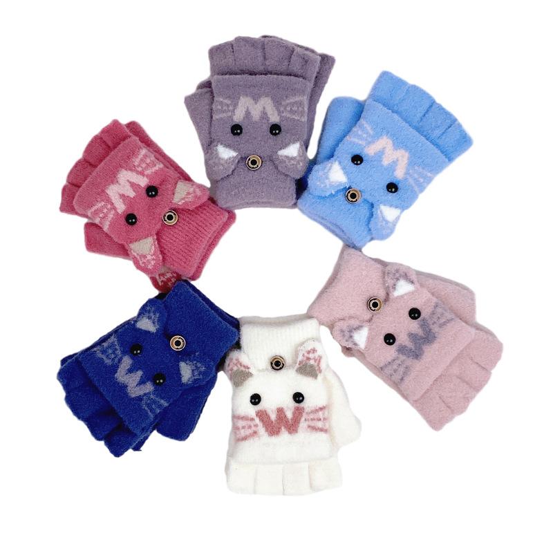 Guantes de Lana Tejida con Solapa de Medio Dedo con Letra W y Oso para Mujer Invierno Lindo Estilo Coreano Estudiantes Forro Polar Cálido Dedo Descubierto