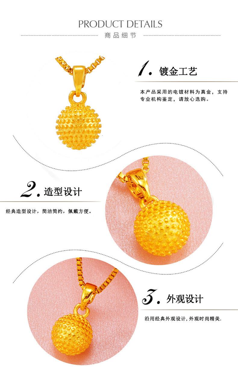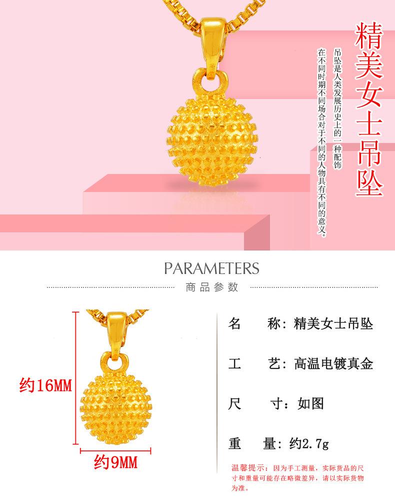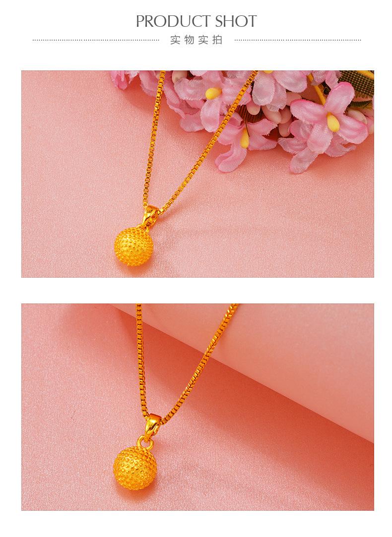 Colgante de oro y arena vietnamita con forma de bola de cáñamo redonda de moda para niñas, colgante de cuentas sólidas de oro de 24k chapado en cobre y oro duro 3D de imitación simple