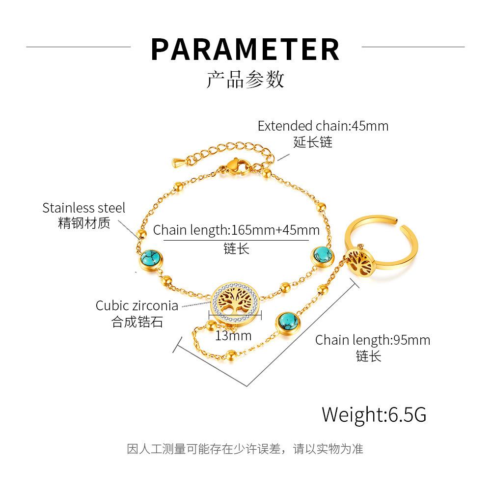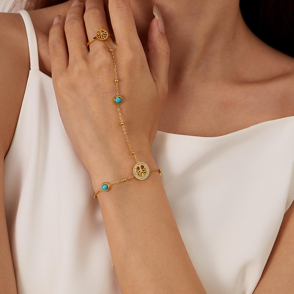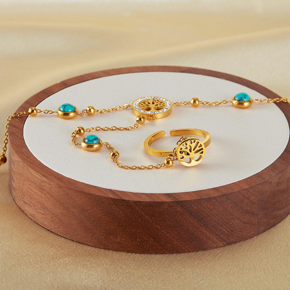 Joyería OPK personalidad moda temperamento anillo de acero inoxidable hueco árbol de la vida turquesa cadena de espalda de una pieza para mujer