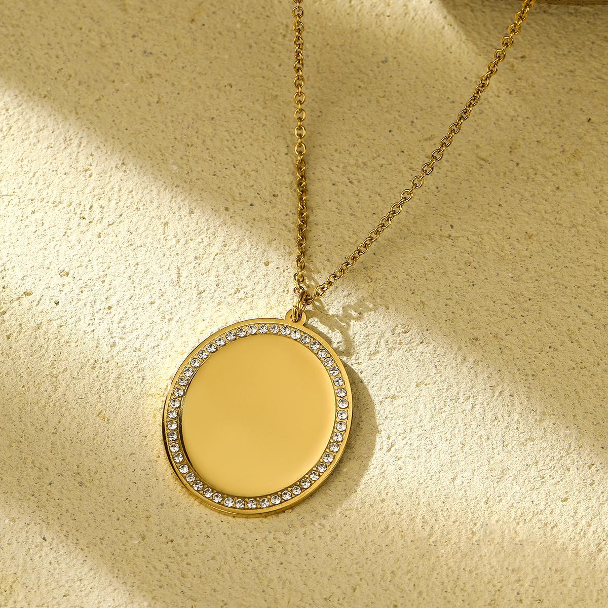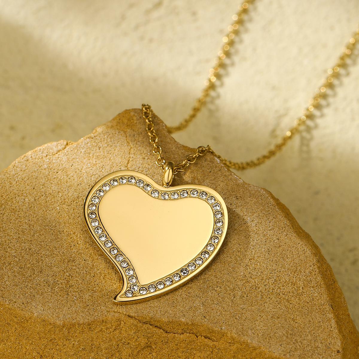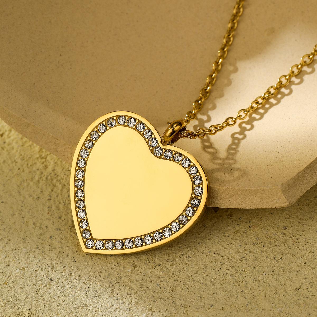 Collar de acero inoxidable de alta gama con diamantes de amor redondos geométricos de estilo europeo y americano, ligero y lujoso, para mujer.