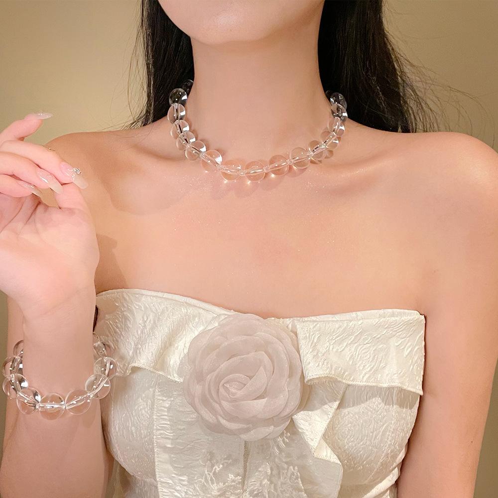 Pulsera de cuentas de metal y cristal transparente de verano para mujer, moderna, atmosférica, sencilla y elegante, con cadena de cuentas redondas.