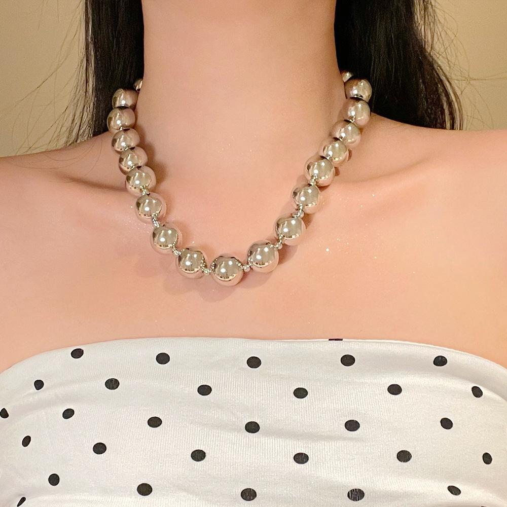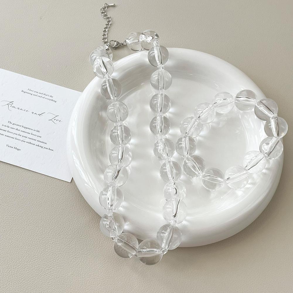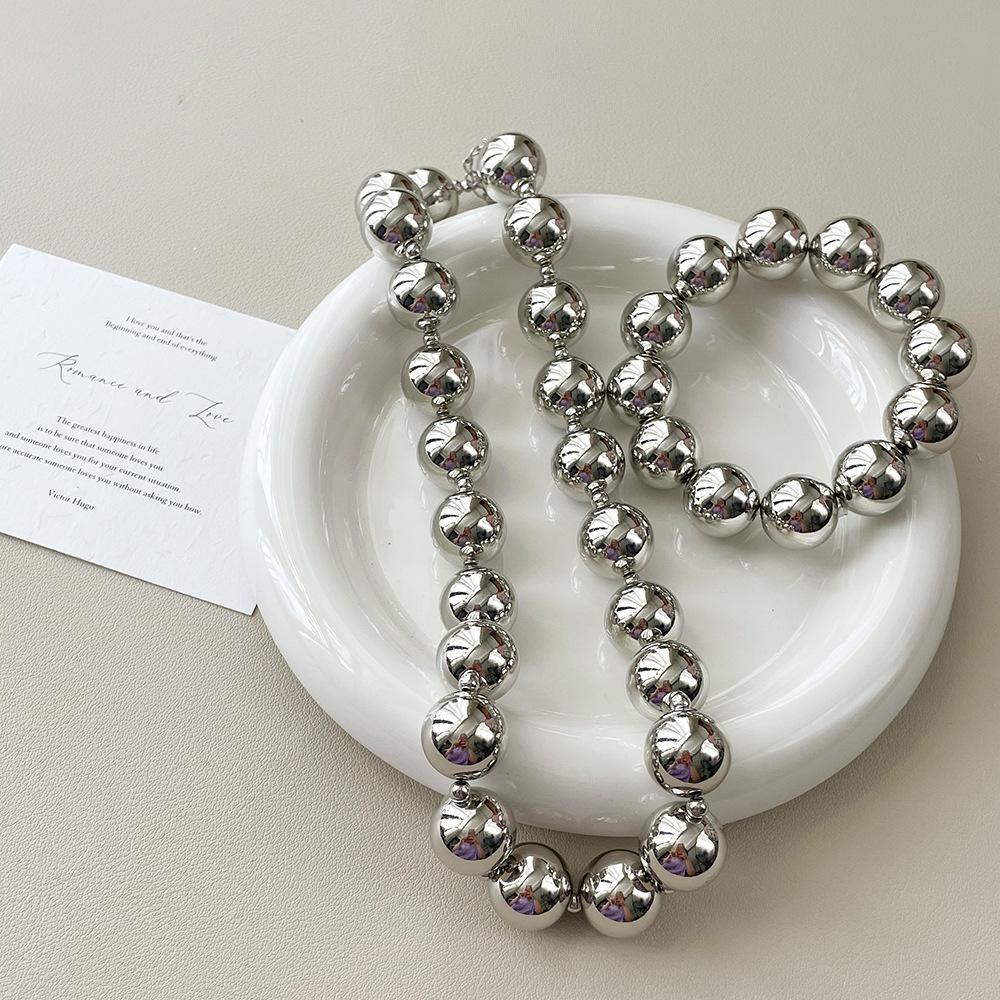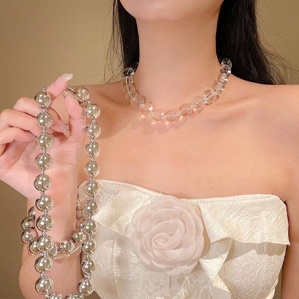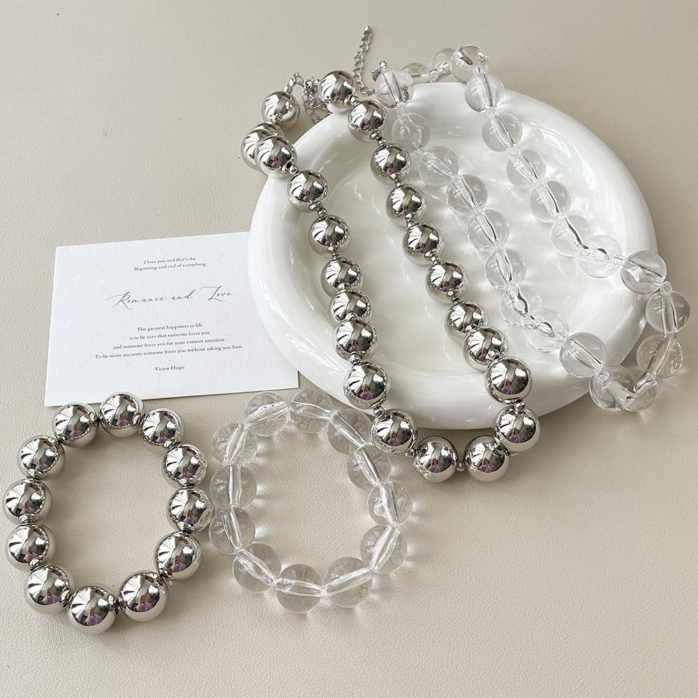 White transparent ball necklace Z-2185, White transparent ball bracelet Z-2187, Silver ball necklace Z-2186, S...