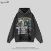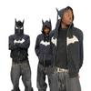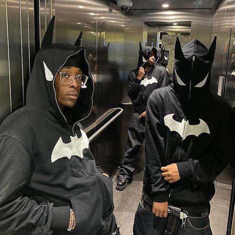 Chaqueta holgada con capucha y cremallera para hombre y mujer, estilo retro americano, con estampado de murciélago, informal, con personalidad, para otoño