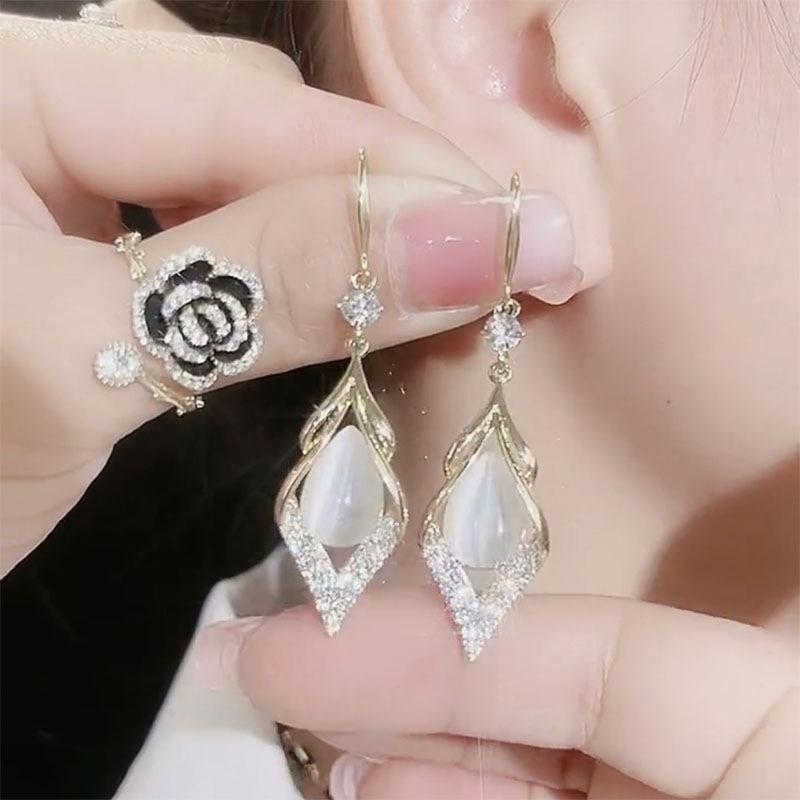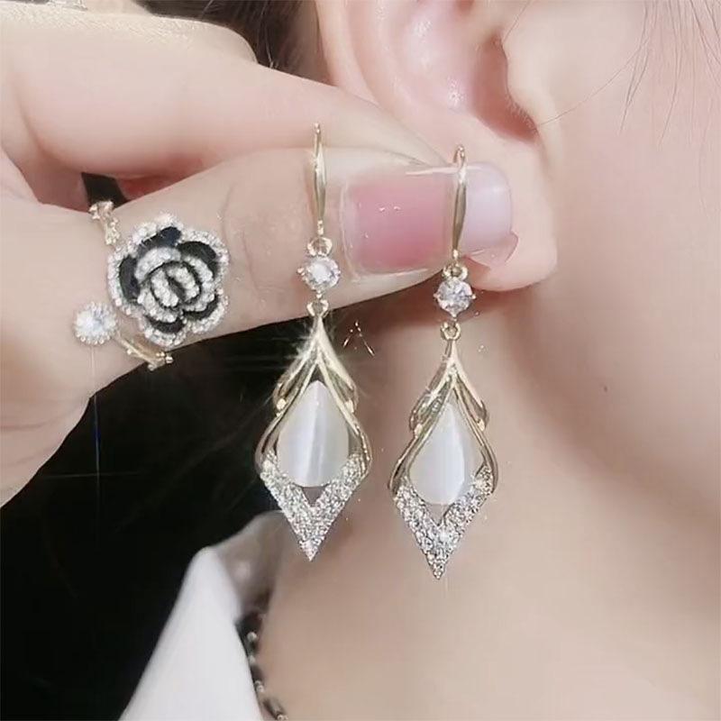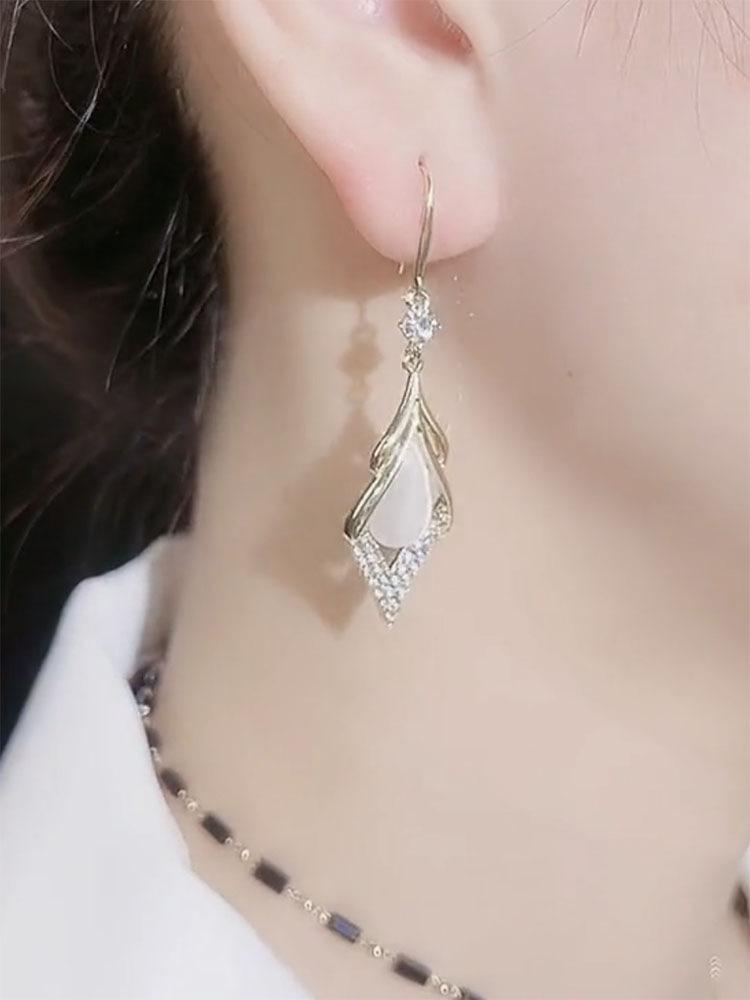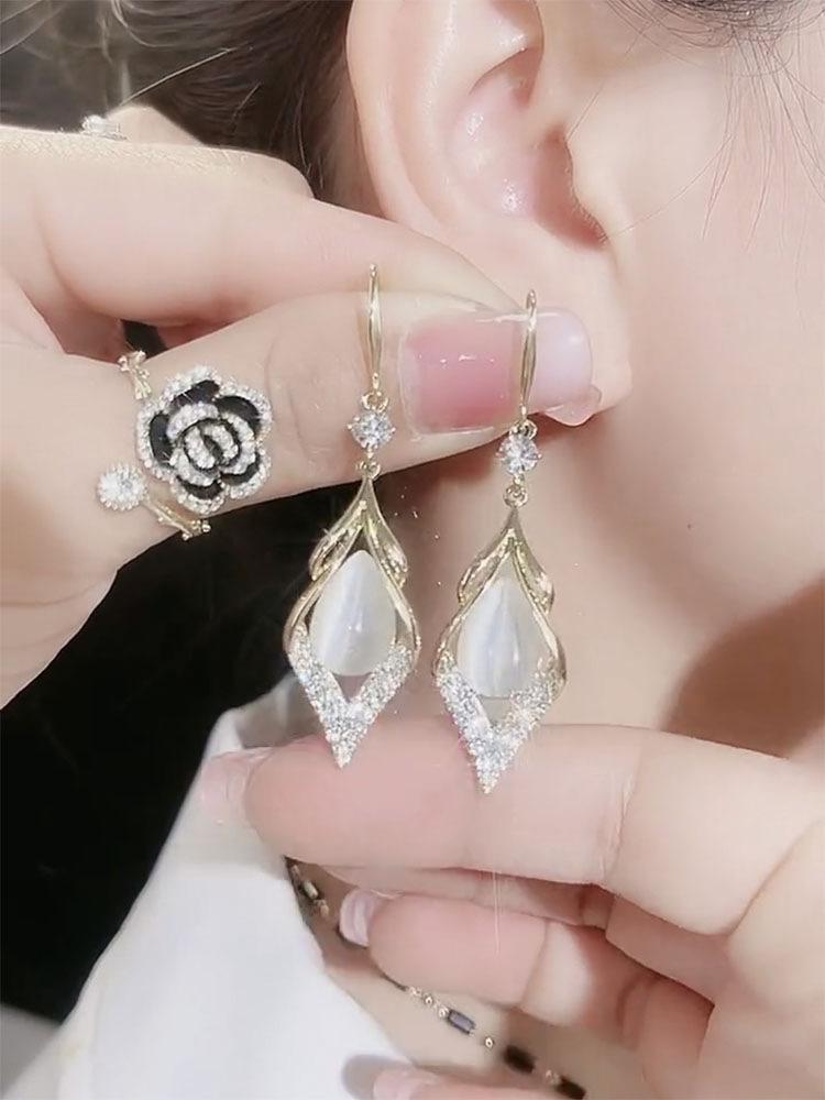 Pendientes geométricos de diamantes con aguja de plata s925, diseño de estilo avanzado, ligeros y lujosos, elegantes y atmosféricos.