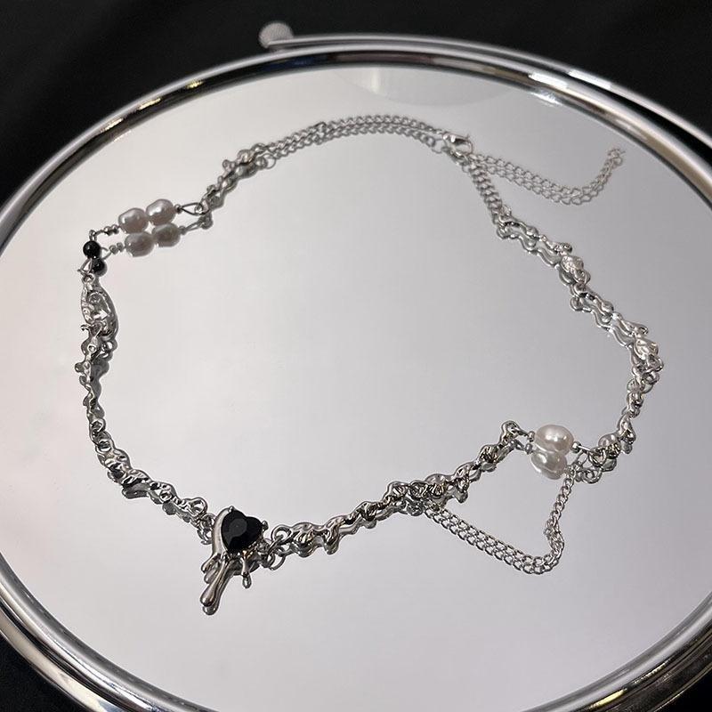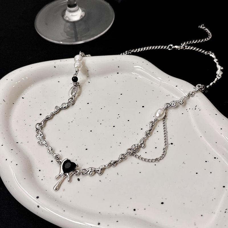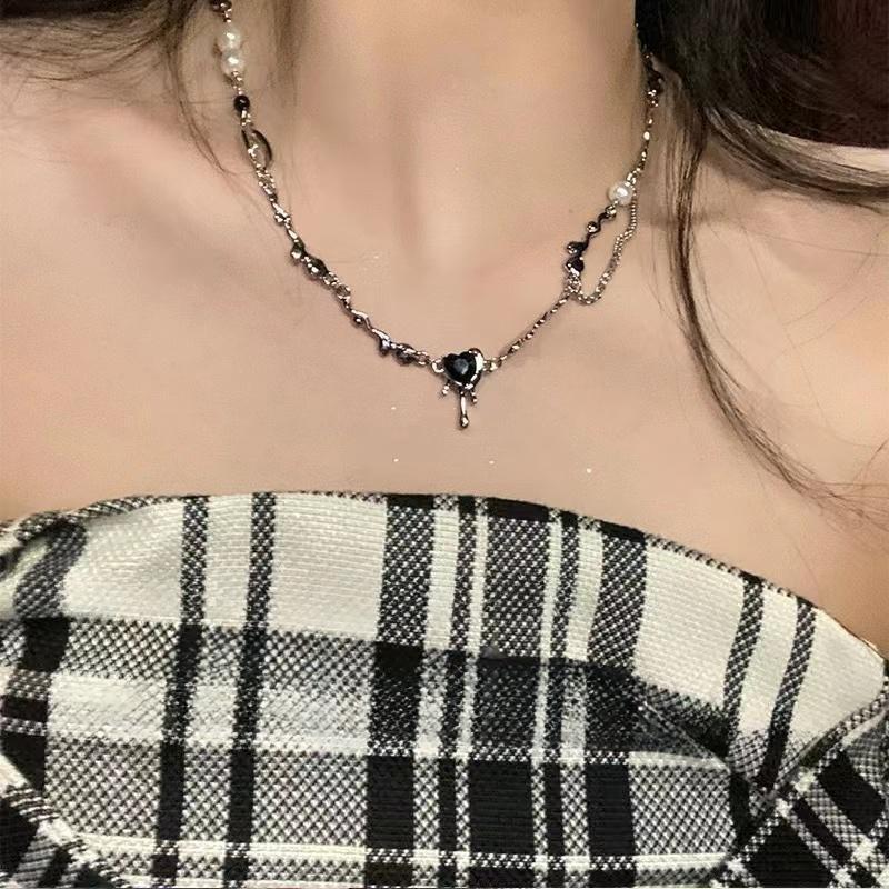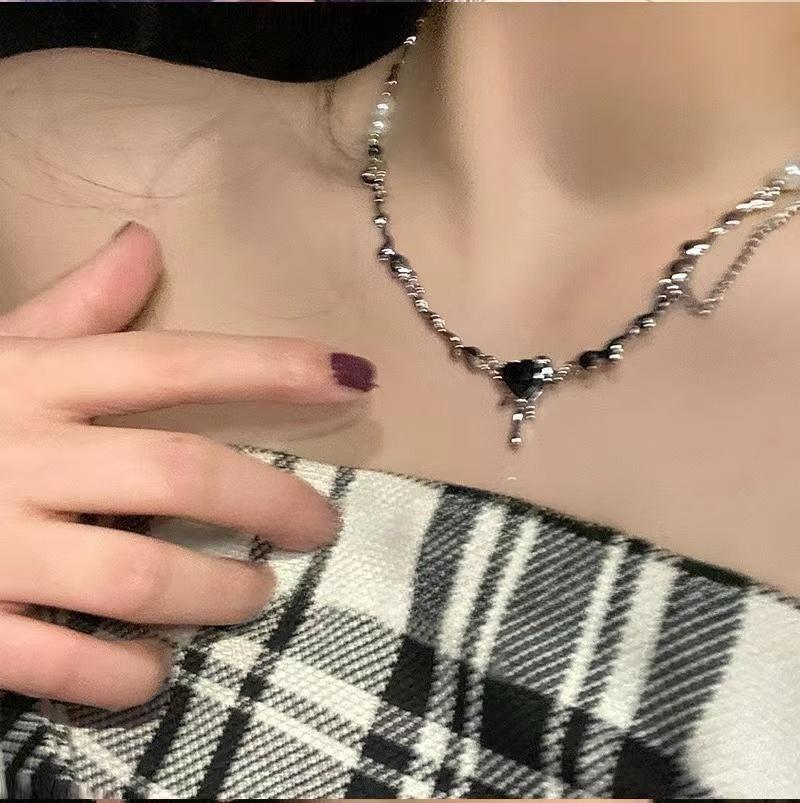 ¡Toma el viento dulce y fresco! Collar de amor negro de alta calidad para mujer, cadena de clavícula con diseño de nicho de lujo ligero, 2023, nuevo