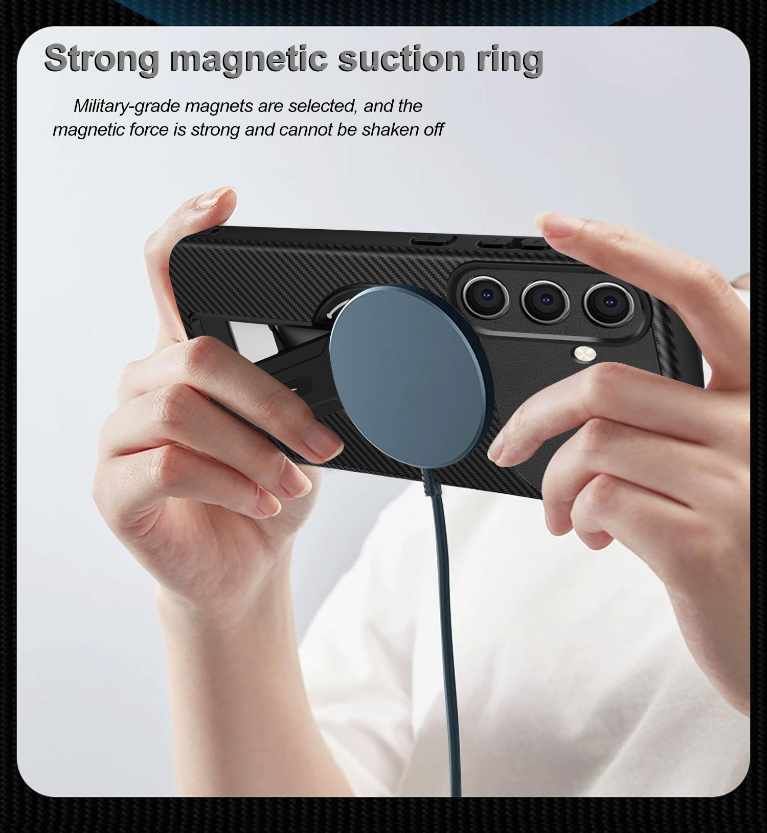 Adecuado para Samsung A17 Patrón de Fibra de Carbono Funda Magnética para Teléfono A56 Cobertura Total A36 Soporte A26 Funda Protectora Anticaídas
