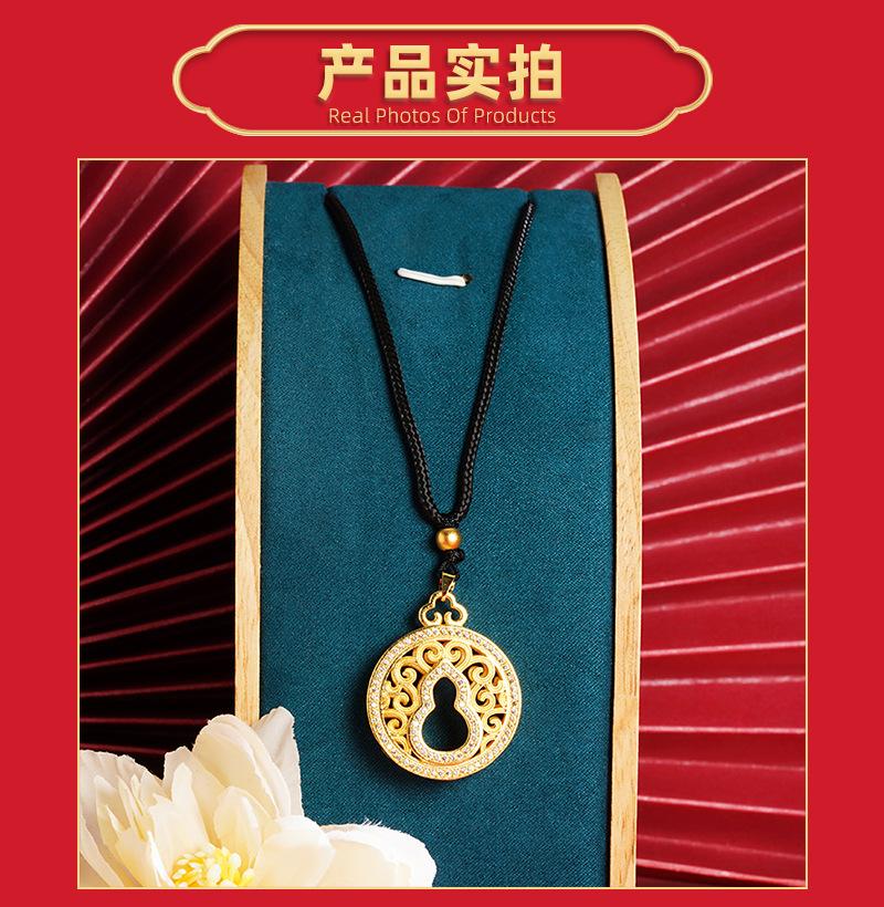 Collar de calabaza hueca dorada, elegante colgante vintage Xiangyun de doble capa, joyería chapada en cobre y oro, accesorios Yiwu al por mayor