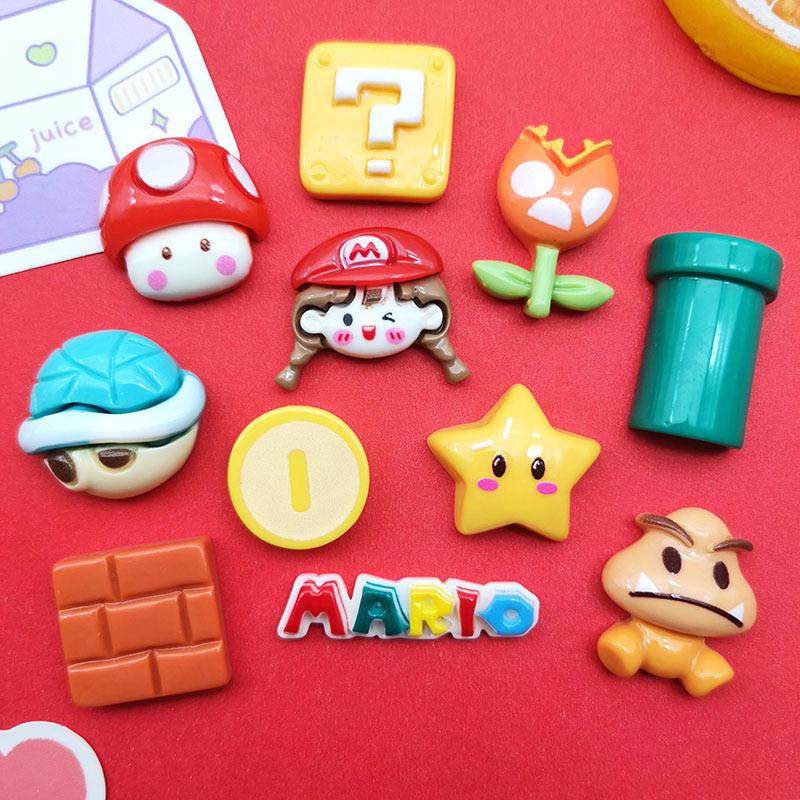 Juego Clásico de la Infancia Dibujos Animados Serie Mario DIY Accesorios de Resina Adornos para la Cabeza Horquilla para el Cabello Funda para Teléfono Parche de Joyería