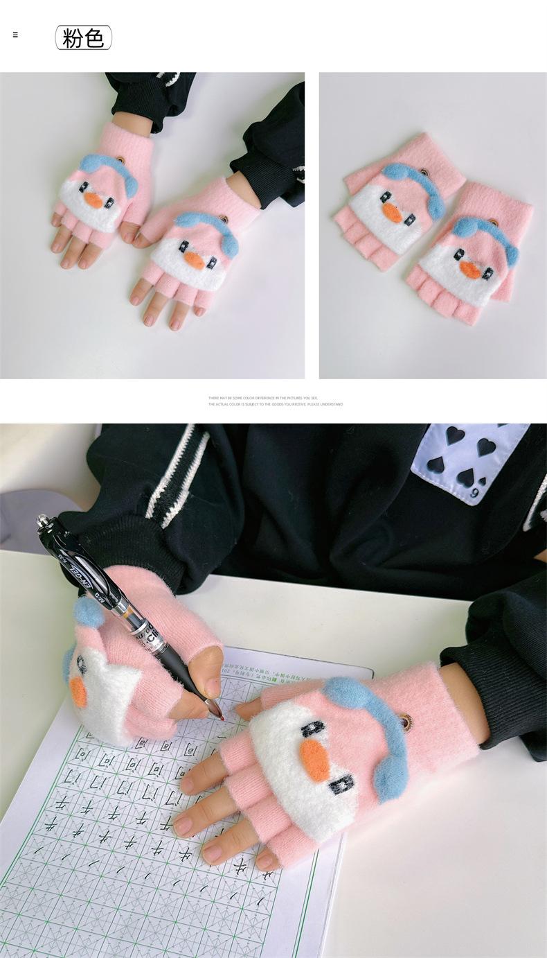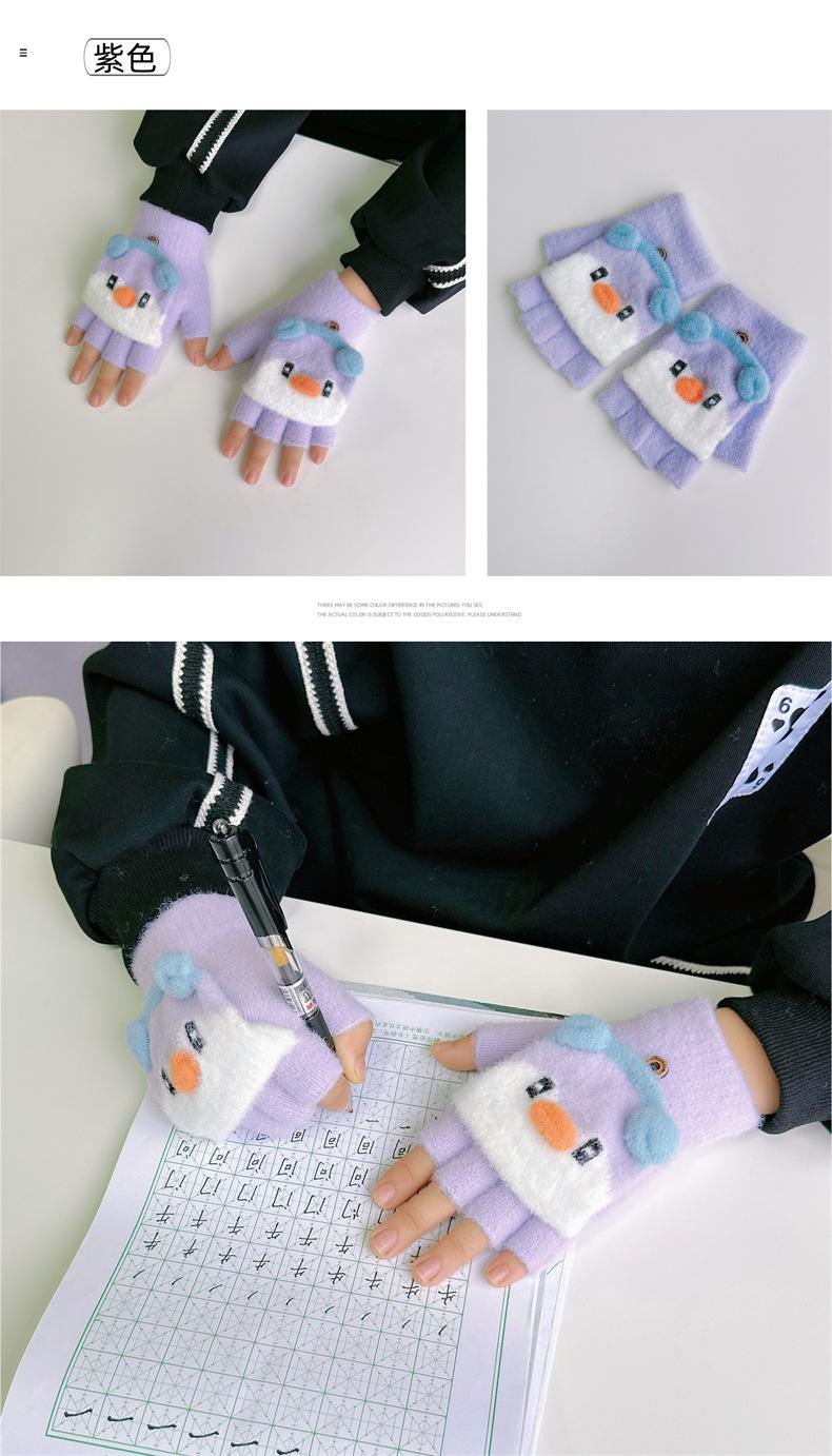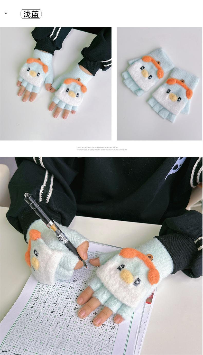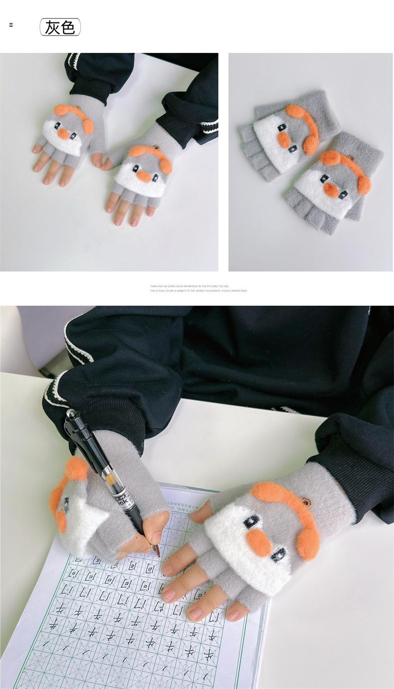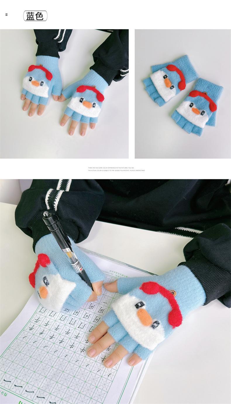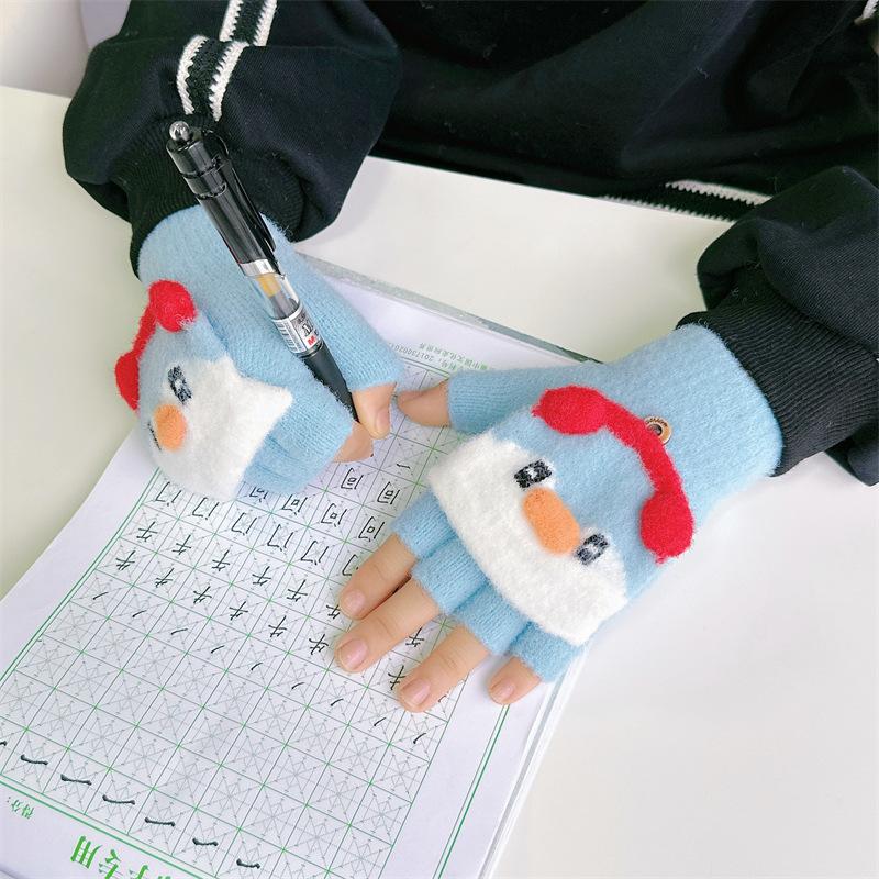 Guantes de invierno para niños y niñas, bonitos, cálidos, gruesos, de cinco dedos, con tapa abatible, para escribir, para niños y estudiantes de primaria, de medio dedo, para mujer