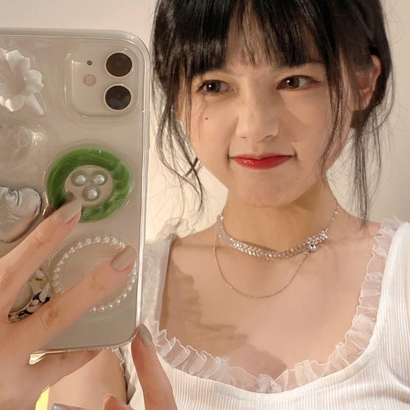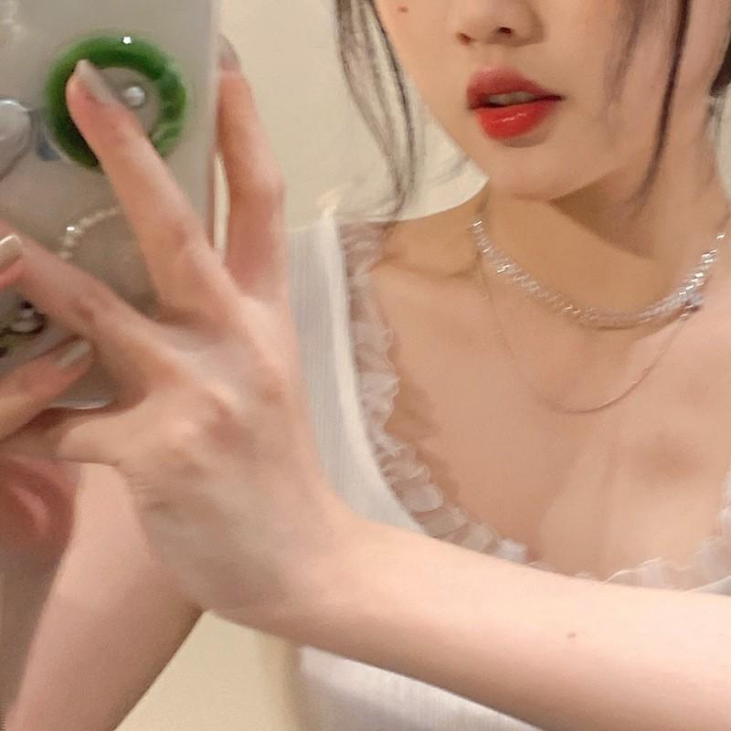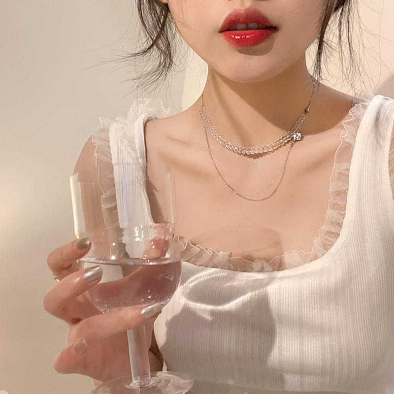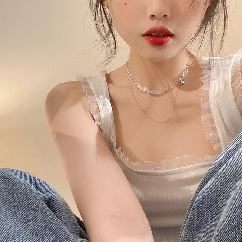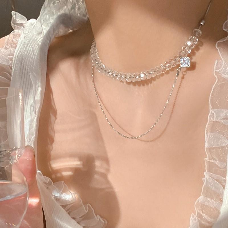 Collar de cristal de estilo dulce y fresco de verano para mujer, diseño de nicho, cadena de clavícula de diamante dulce, estilo lujoso y ligero, elegante cadena para el cuello.