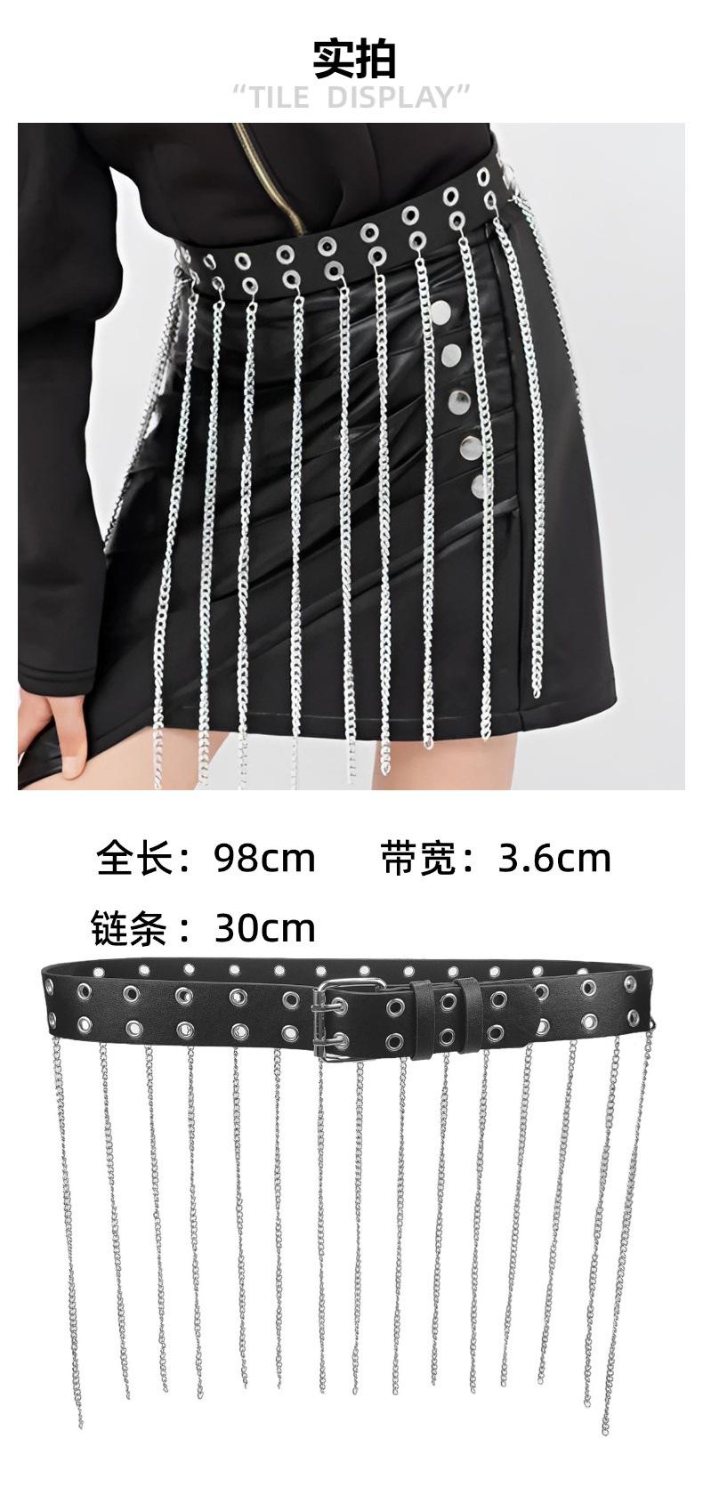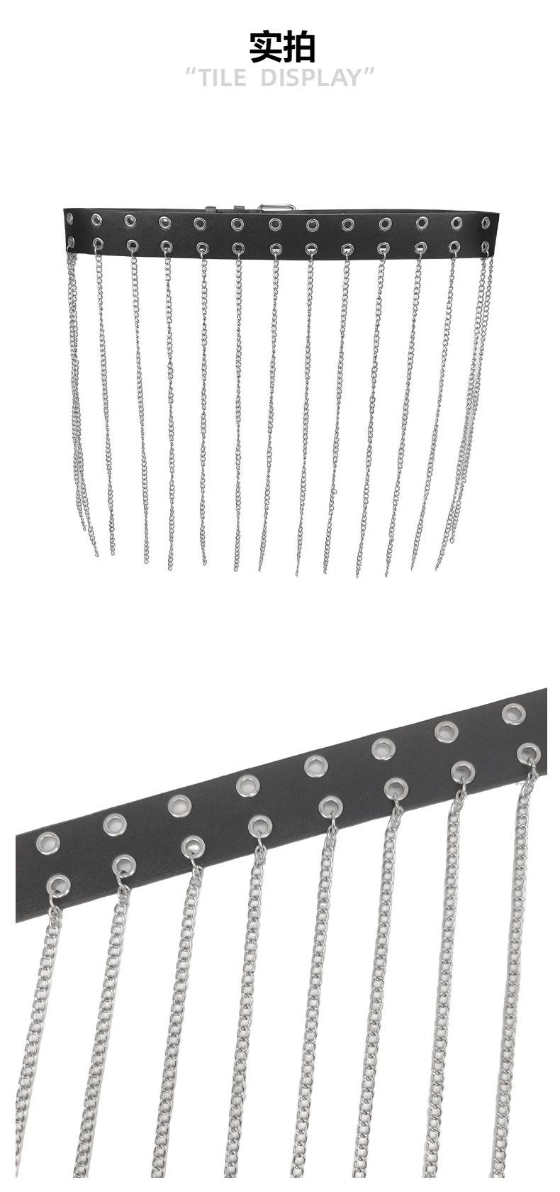 Cinturón de ojos estilo punk europeo y americano para mujer, combina con todo, con cadena de borlas de metal, ancho, personalizado y moderno.