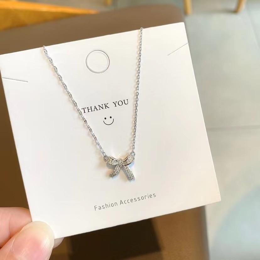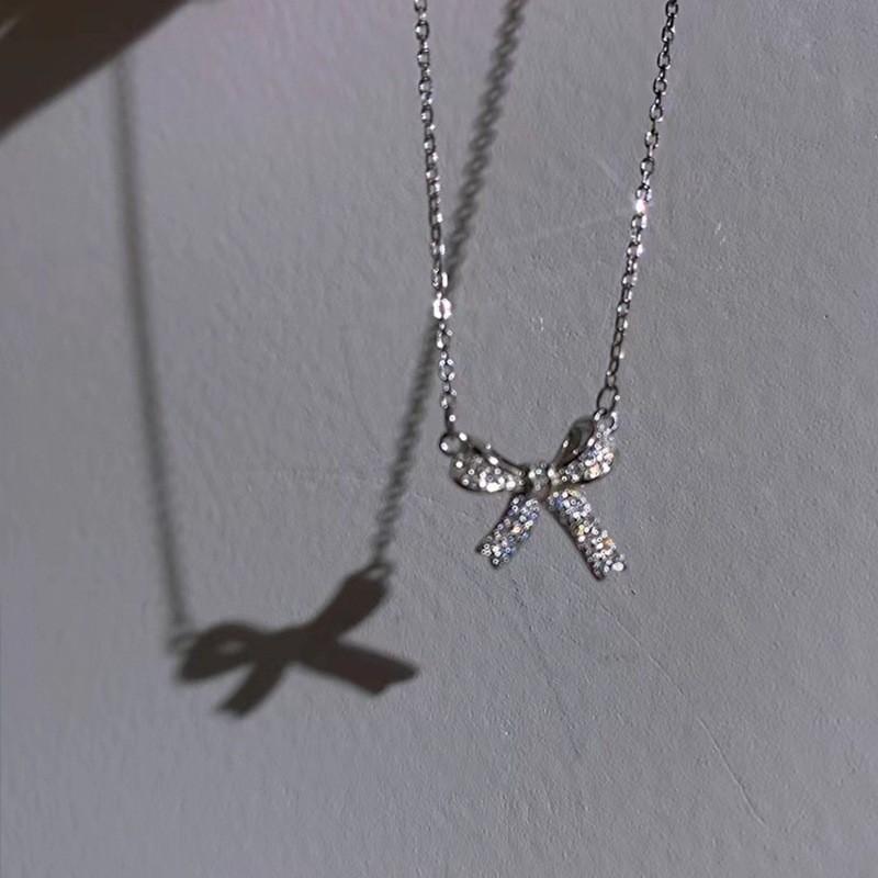 Collar de diamantes con lazo superbrillante para mujer, diseño de nicho, ligero, lujoso, estilo frío, cadena de clavícula, elegante y a la moda que combina con todo.