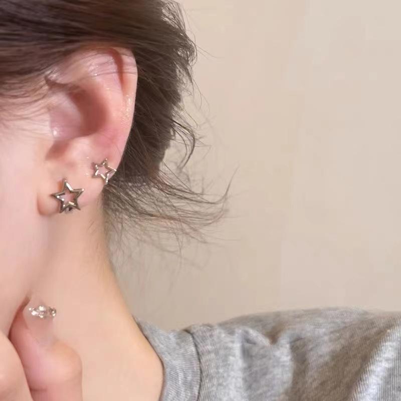 Pendientes sencillos con hebilla de estrella para mujer, elegantes pendientes de alta gama con diseño de nicho, pendientes de clip para oreja, nuevos pendientes 2023
