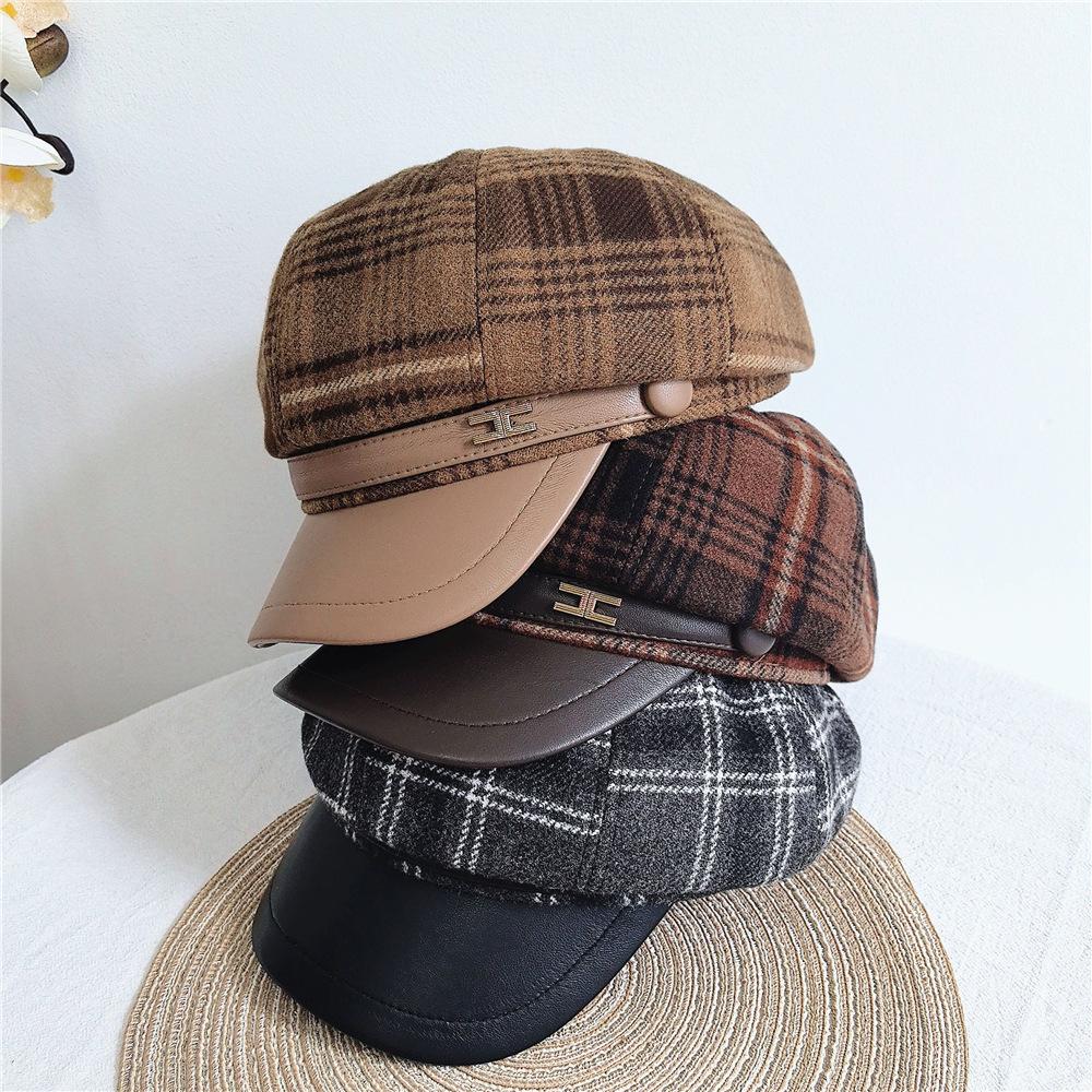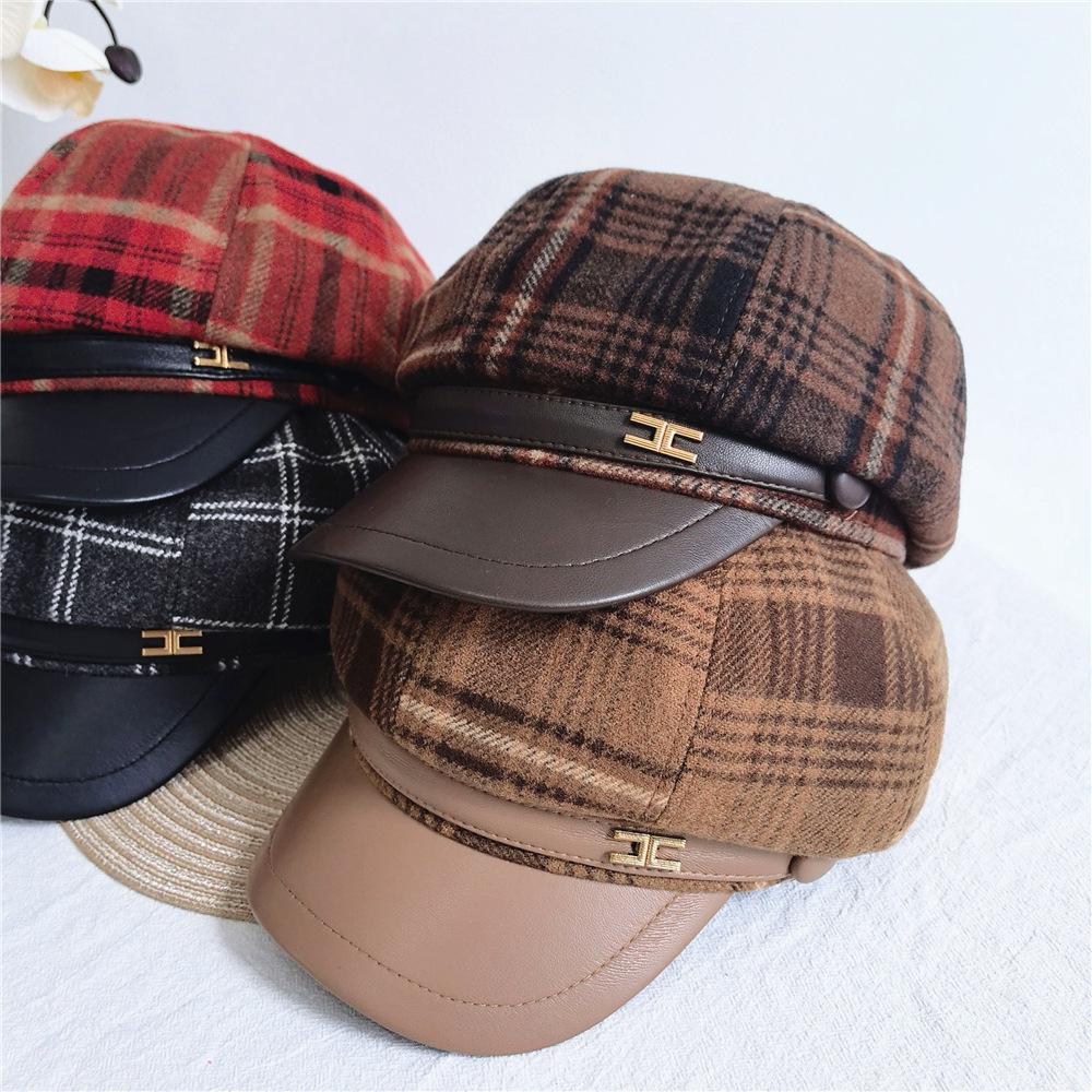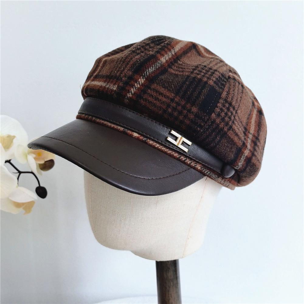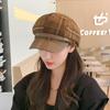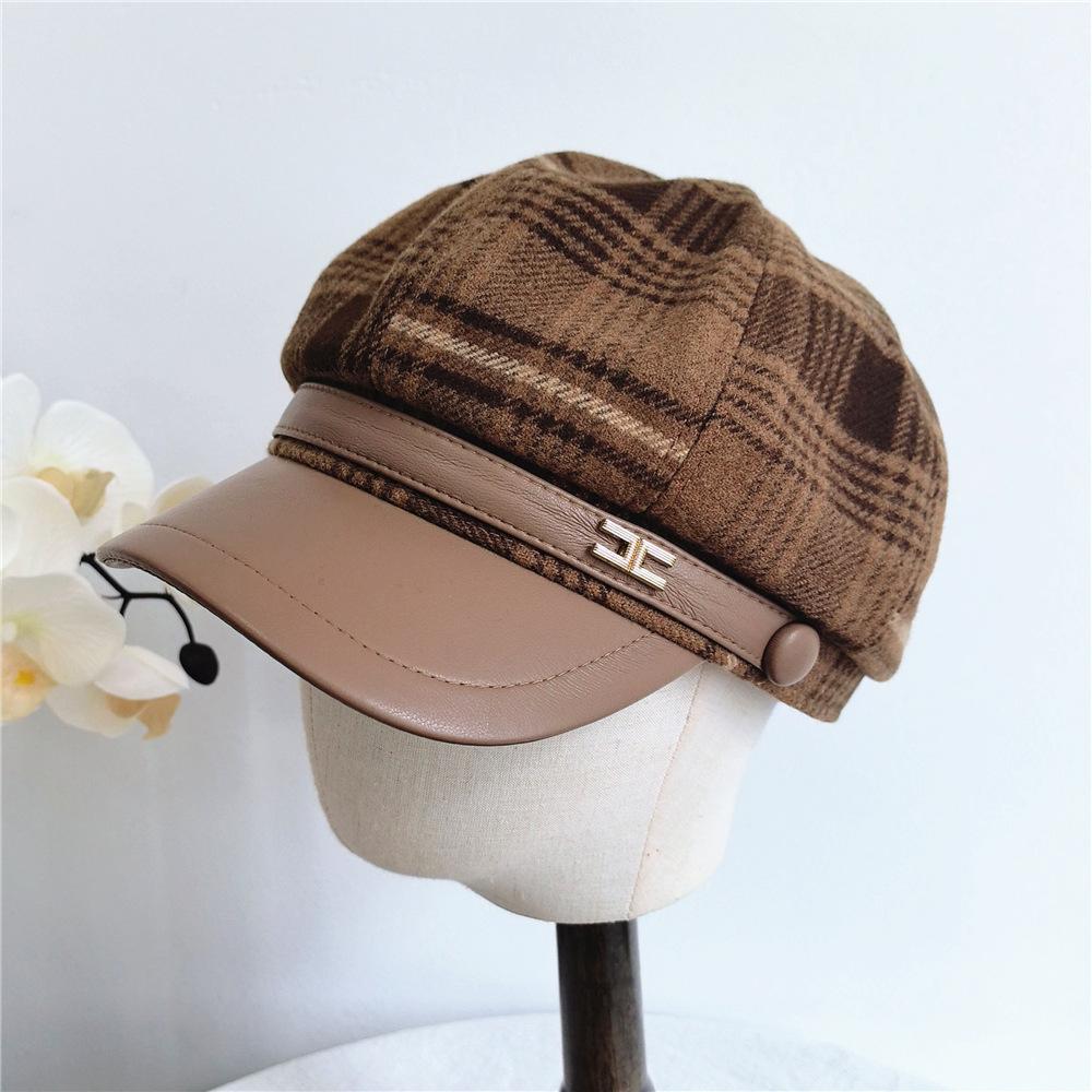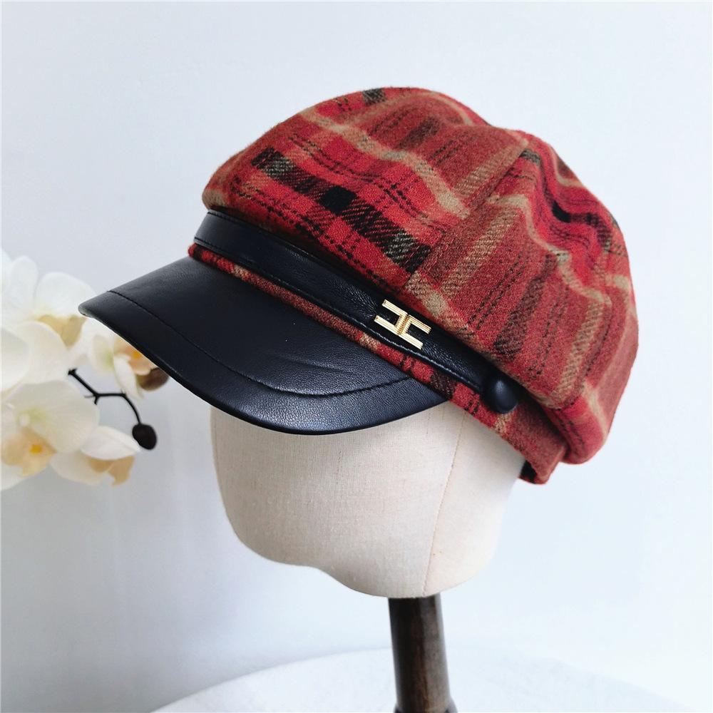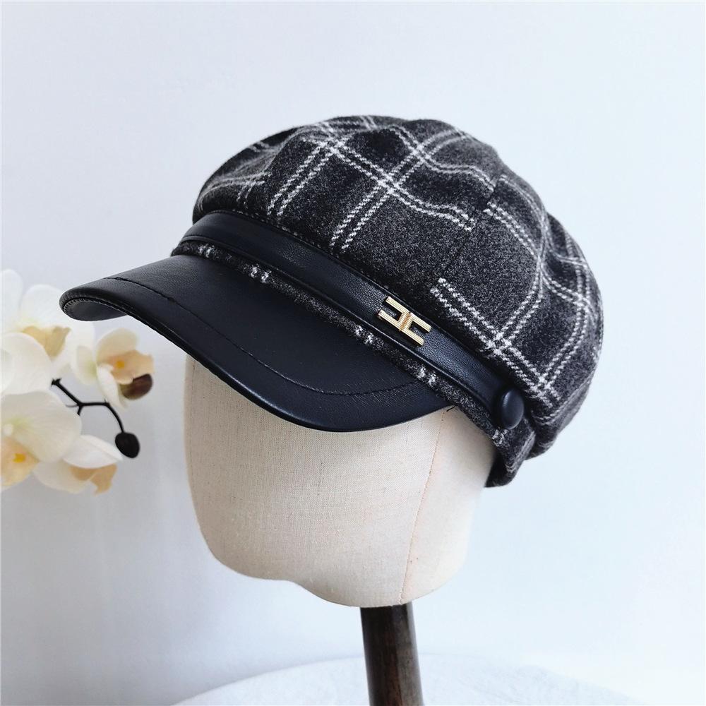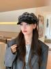 Boina cálida de cuero sintético estilo celebridad para mujer, gorro octogonal con aleros curvos, estilo británico, estilo retro, informal, color azul marino, para otoño e invierno.