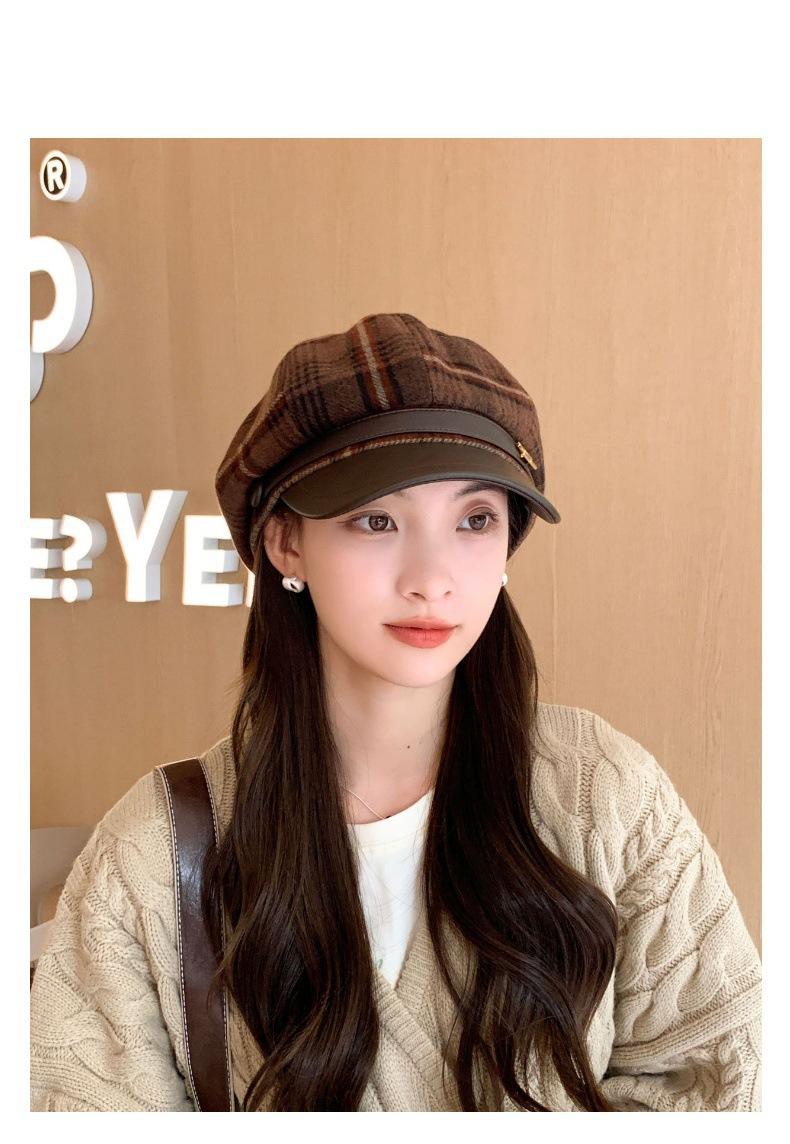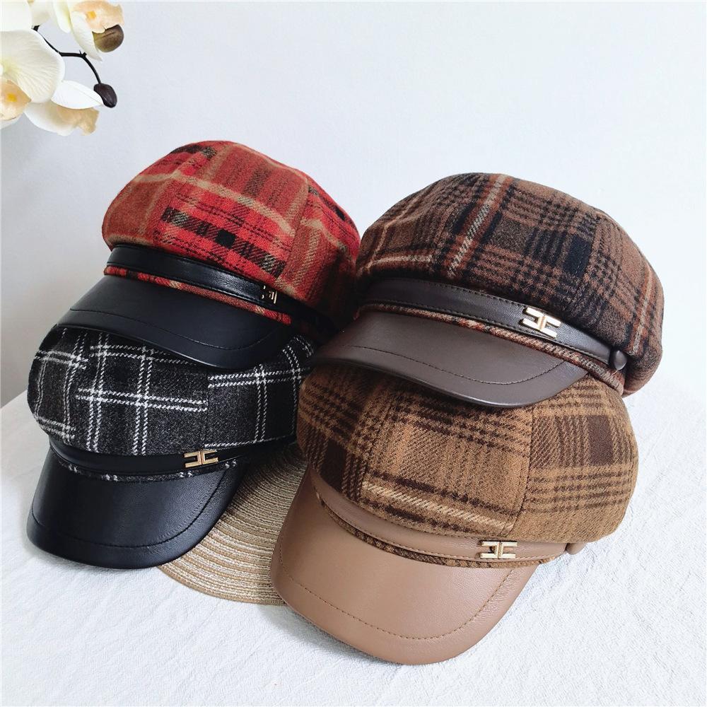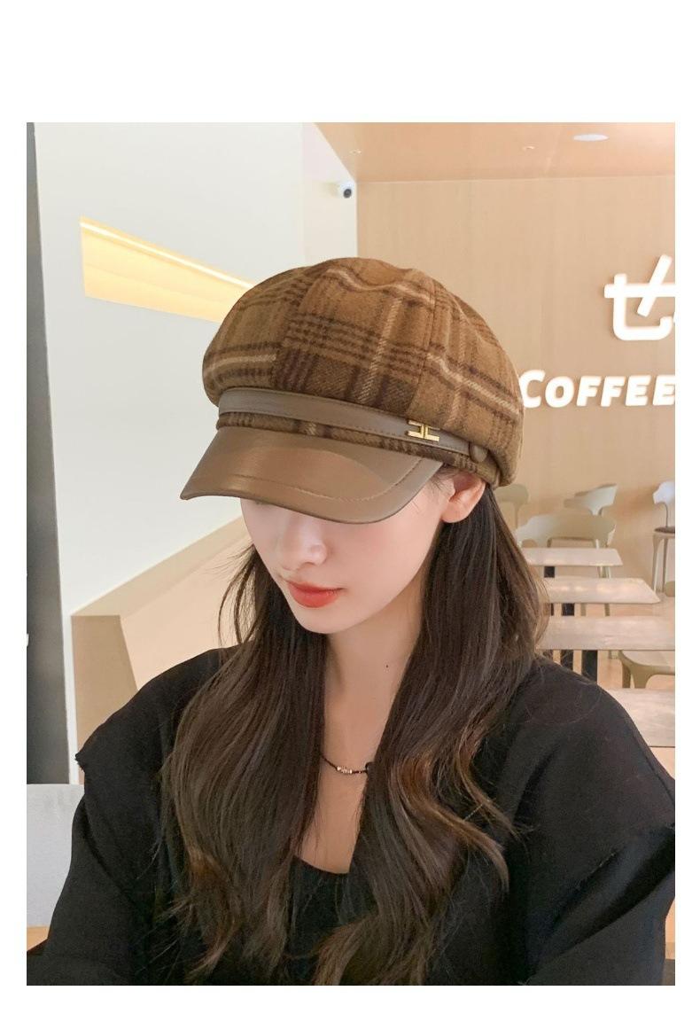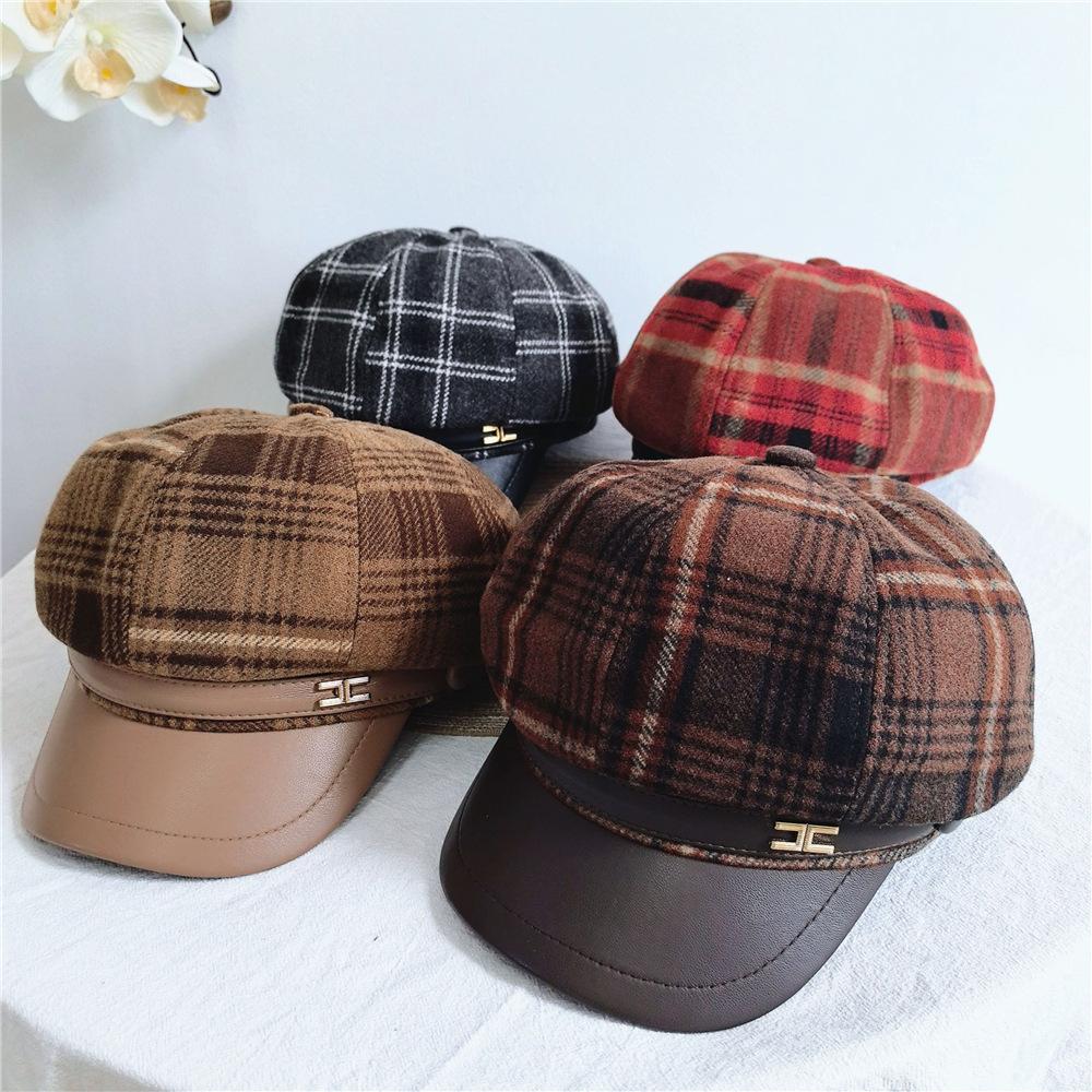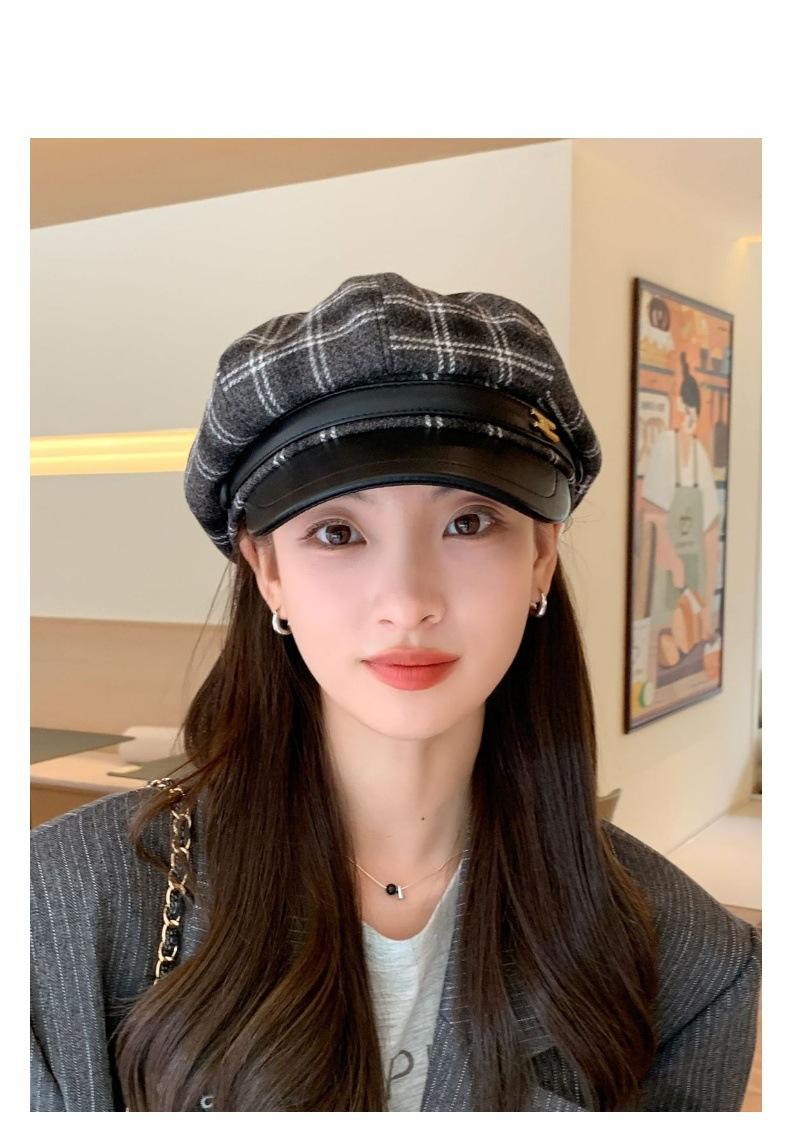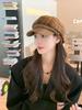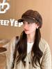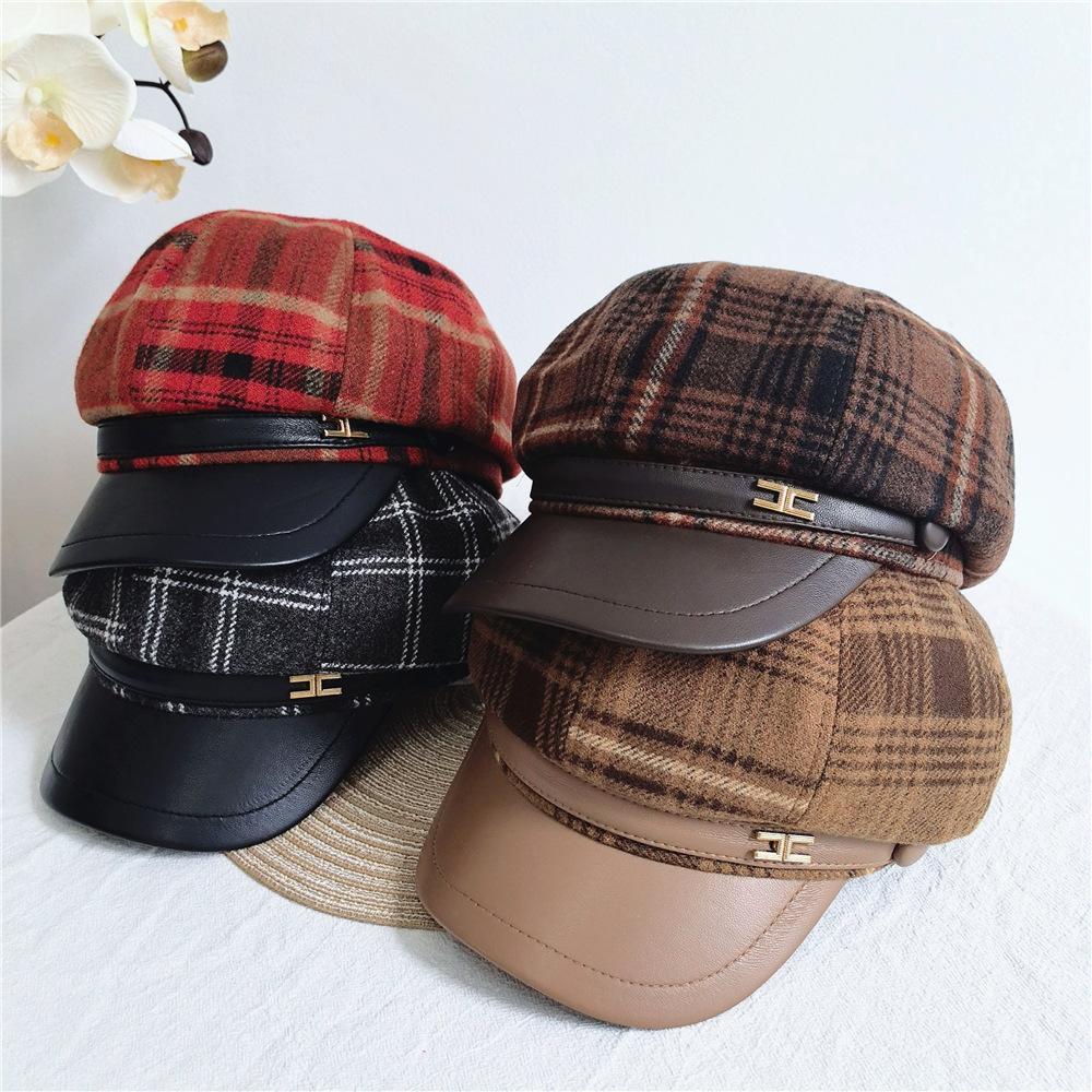 Boina cálida de cuero sintético estilo celebridad para mujer, gorro octogonal con aleros curvos, estilo británico, estilo retro, informal, color azul marino, para otoño e invierno.