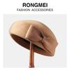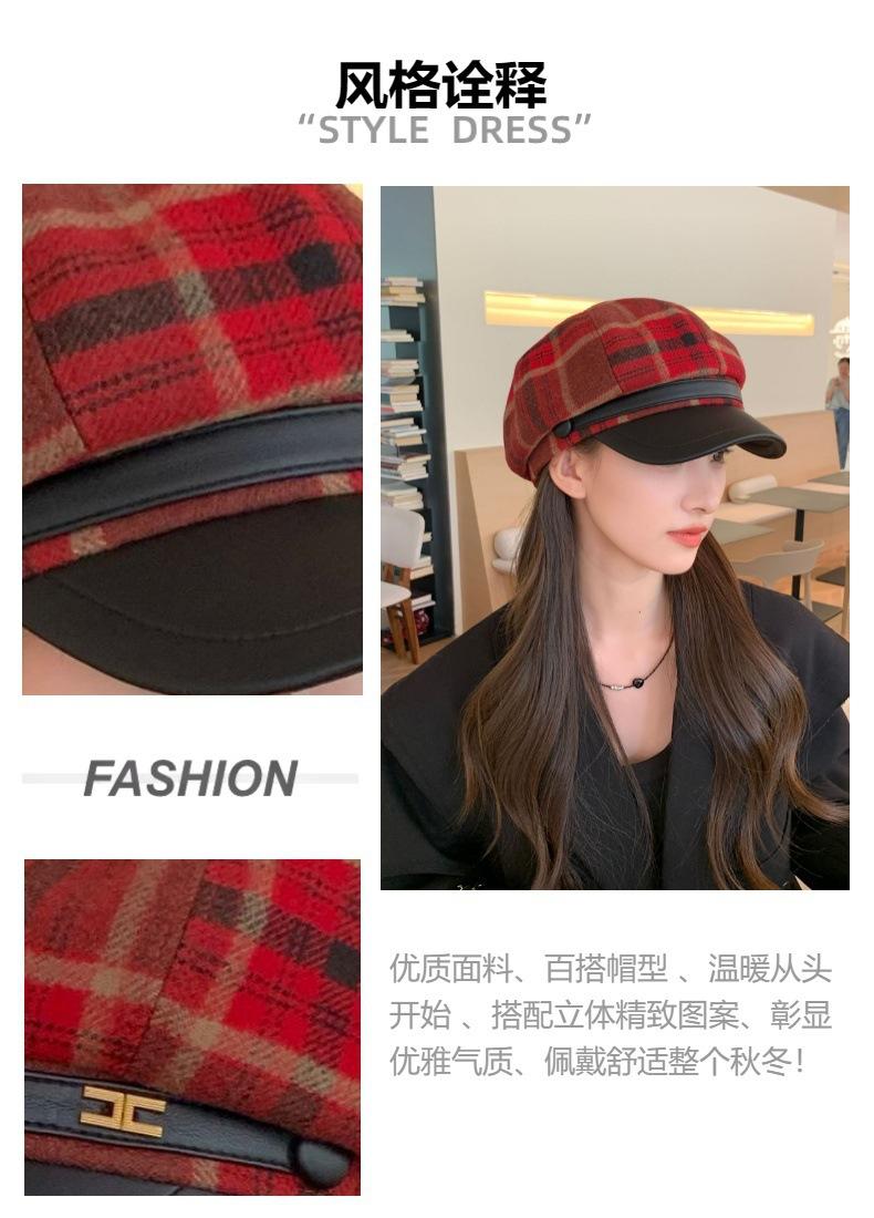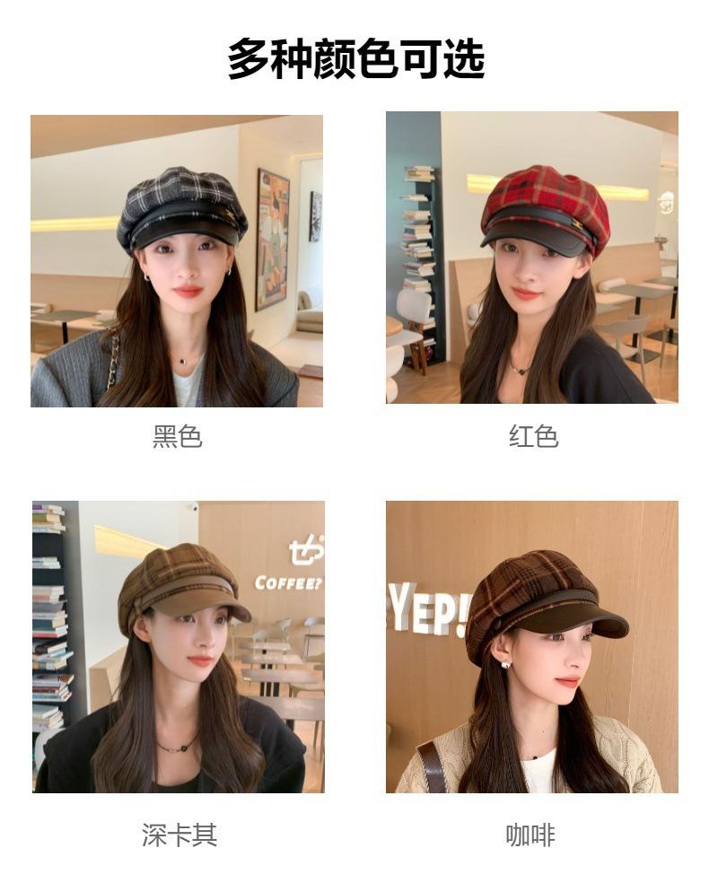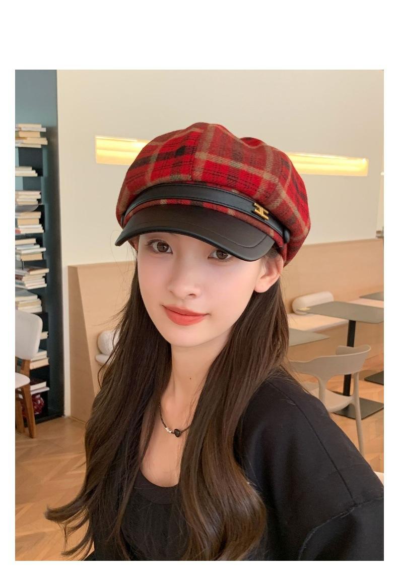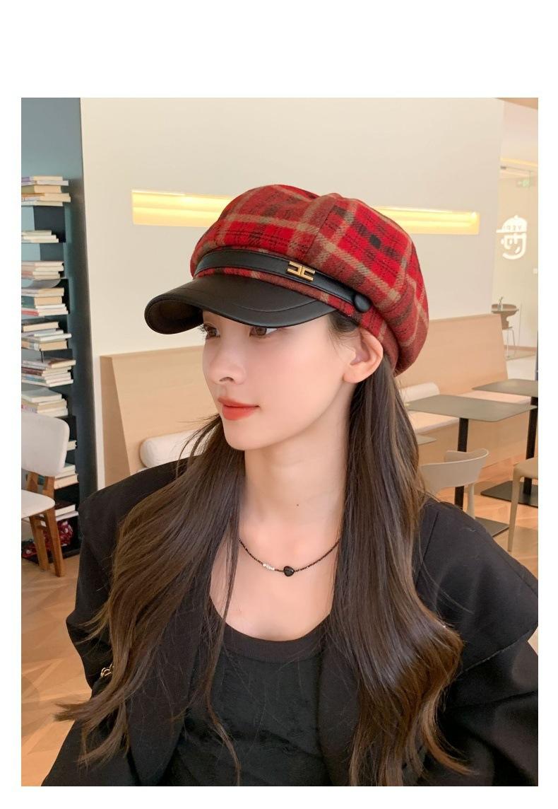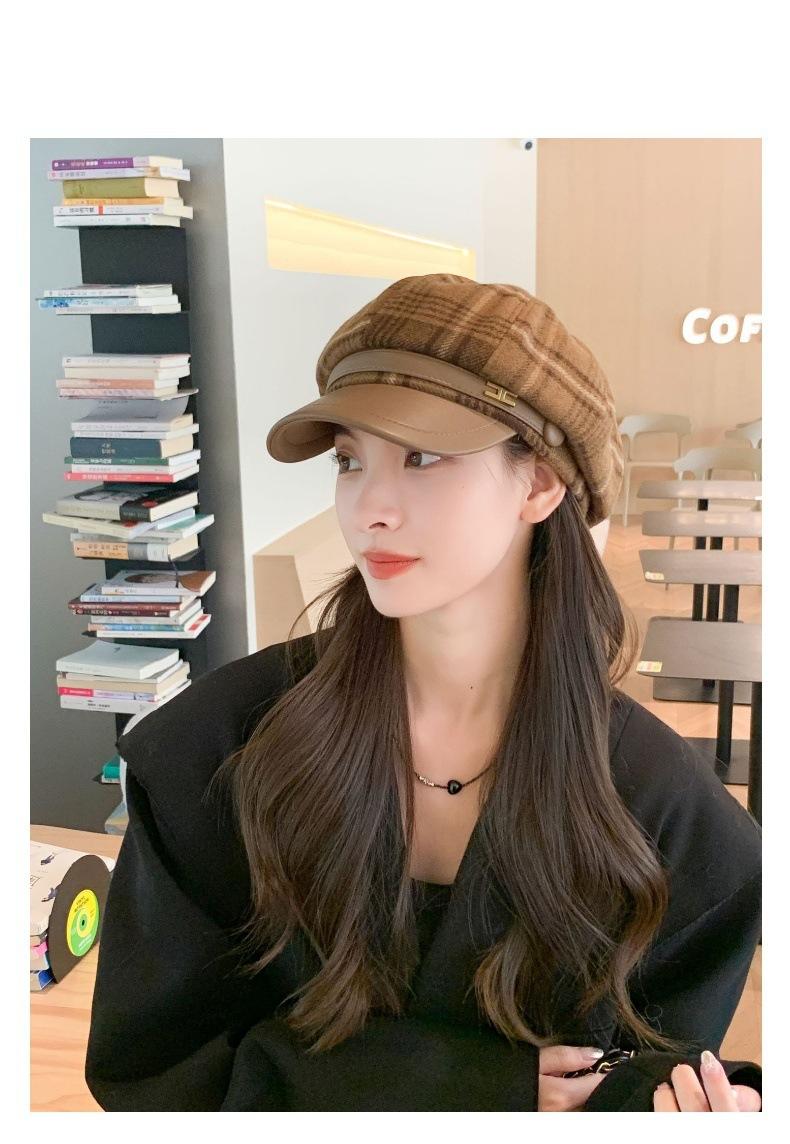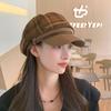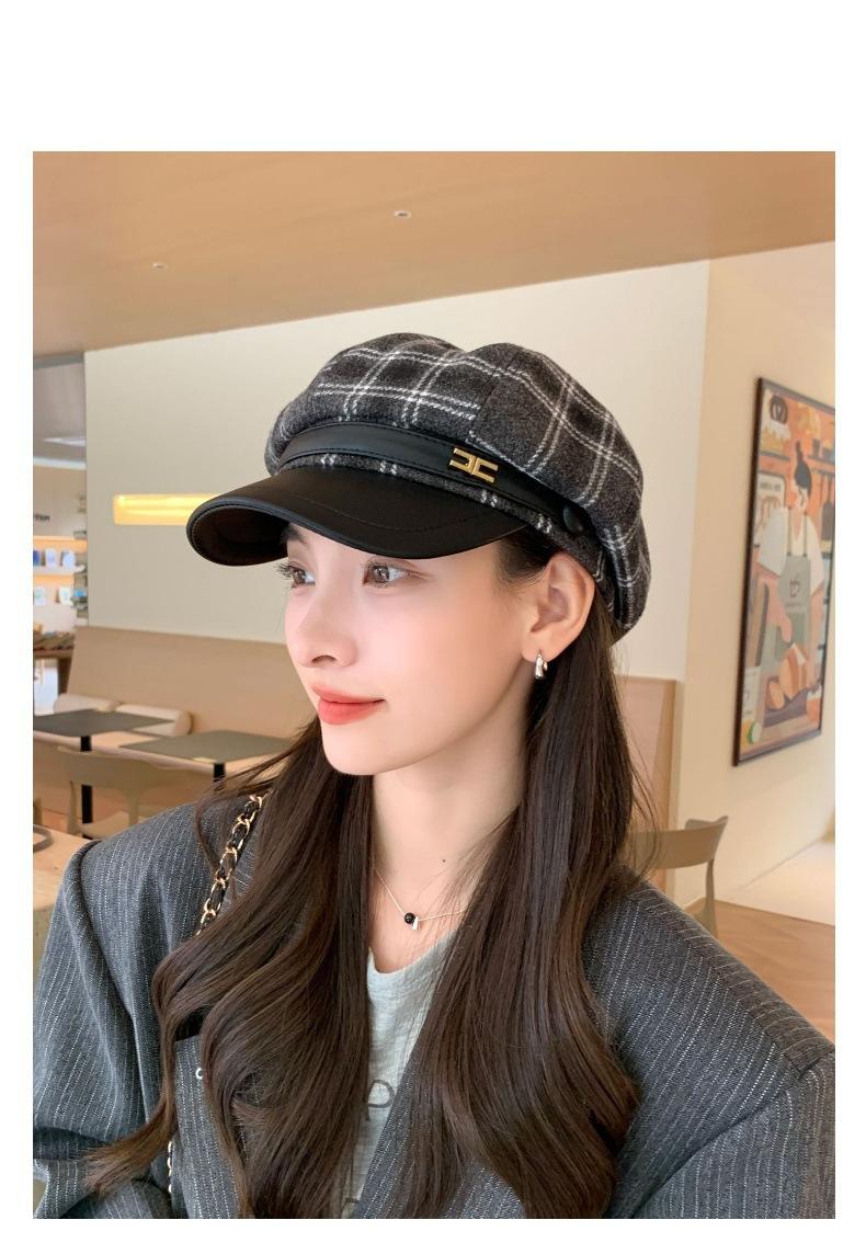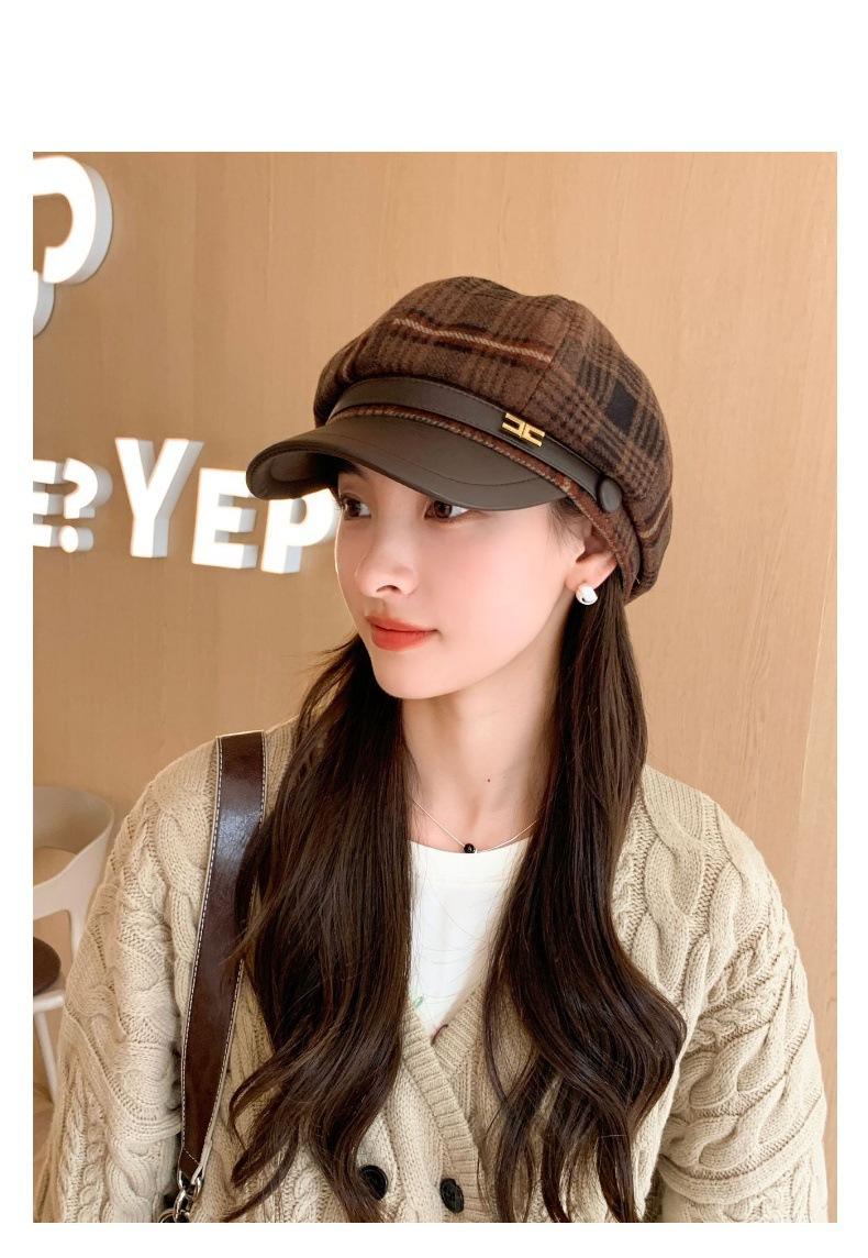 Boina cálida de cuero sintético estilo celebridad para mujer, gorro octogonal con aleros curvos, estilo británico, estilo retro, informal, color azul marino, para otoño e invierno.